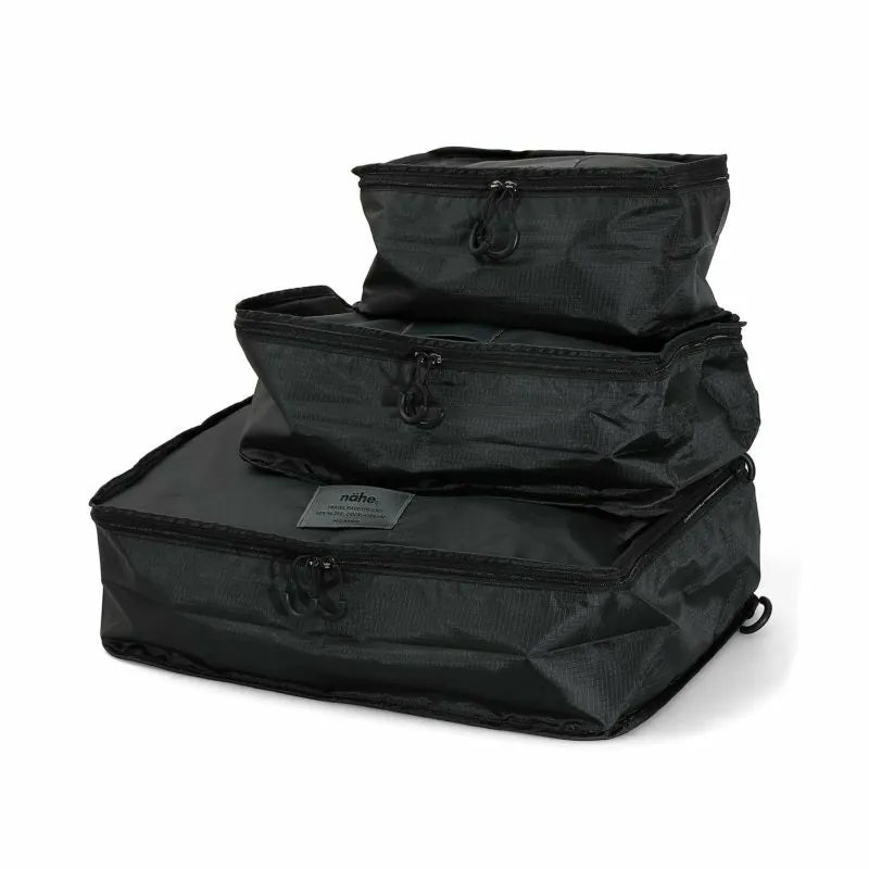 Nähe's Travel Packing Bag is a convenient pouch that allows you to pack your luggage efficiently. It features a zipper pocket on the back for easy access to your essentials. Inside there is a mesh bag attached, to store worn clothes before washing.