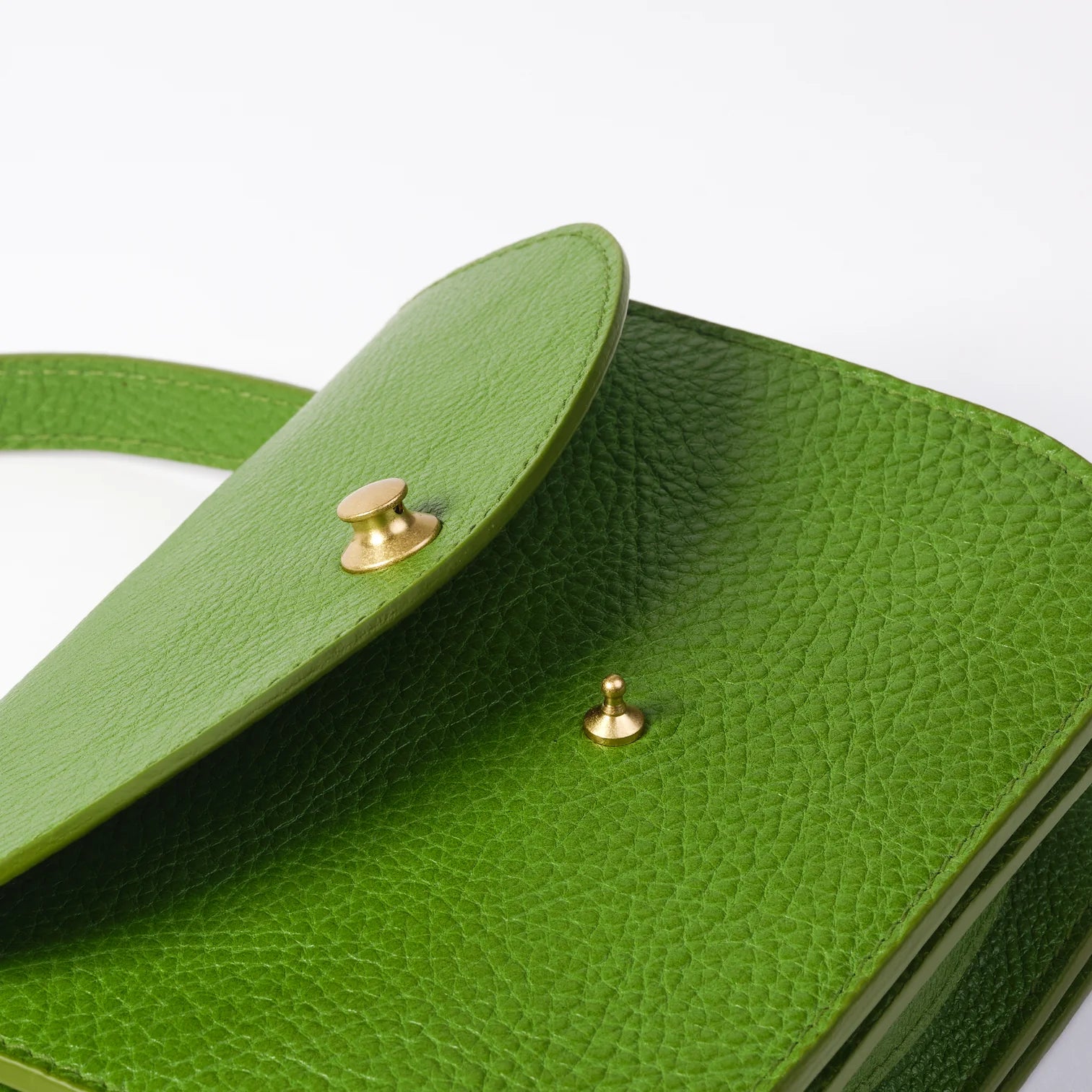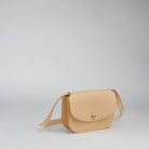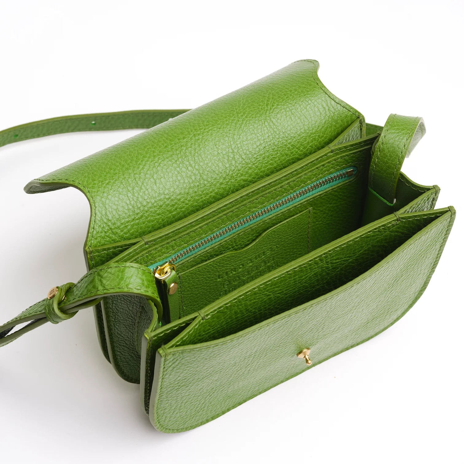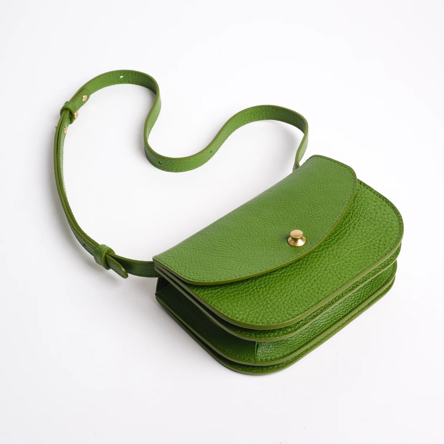 The Po features a brass pull release closure, and has three separate interior compartments, five credit card pockets and a zipper pocket. Organized and compact and versatile, with an adjustable strap that allows for wear high across the chest, over the shoulder or lower on the hip as a traditional crossbody.