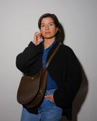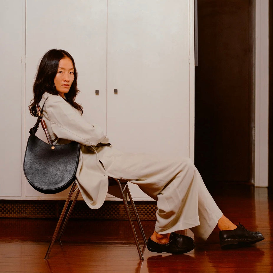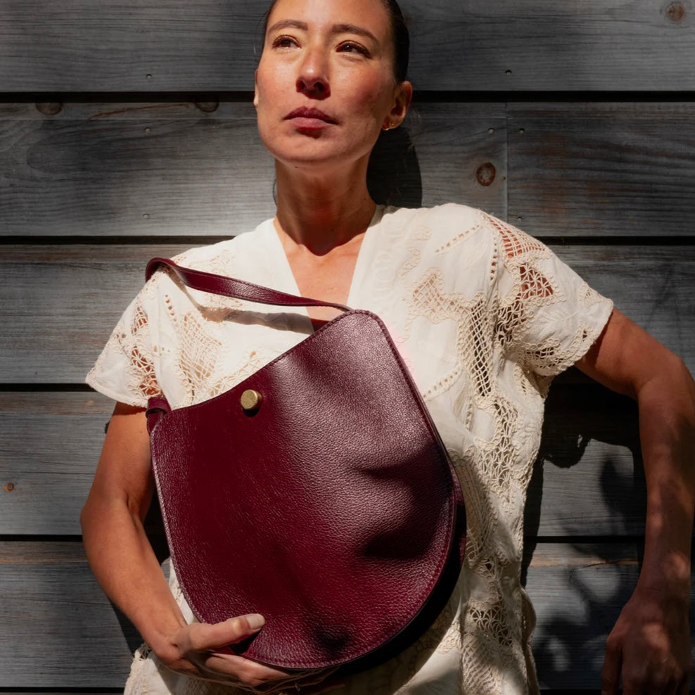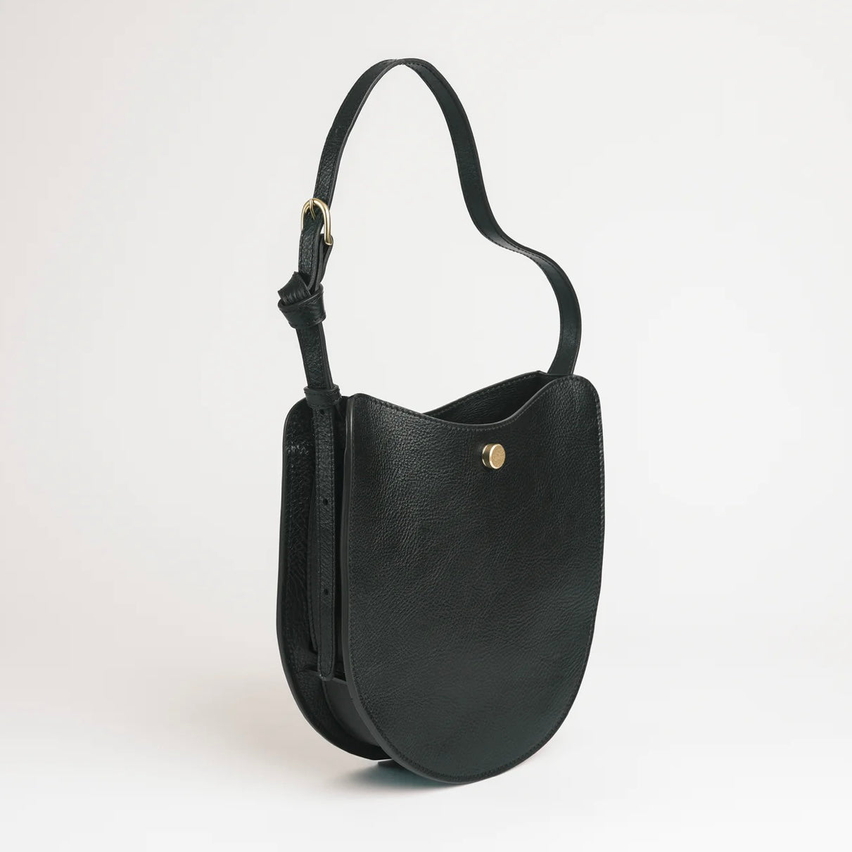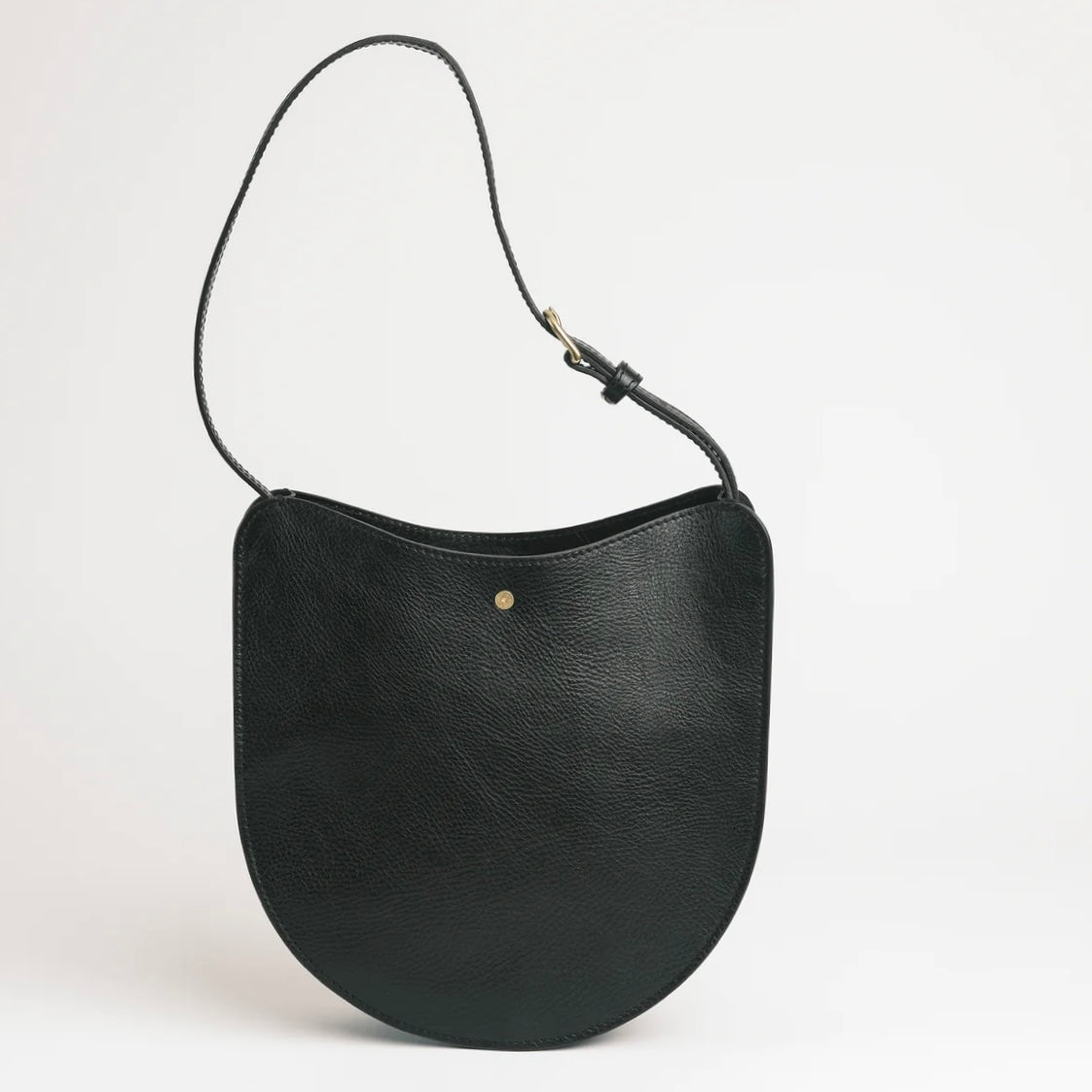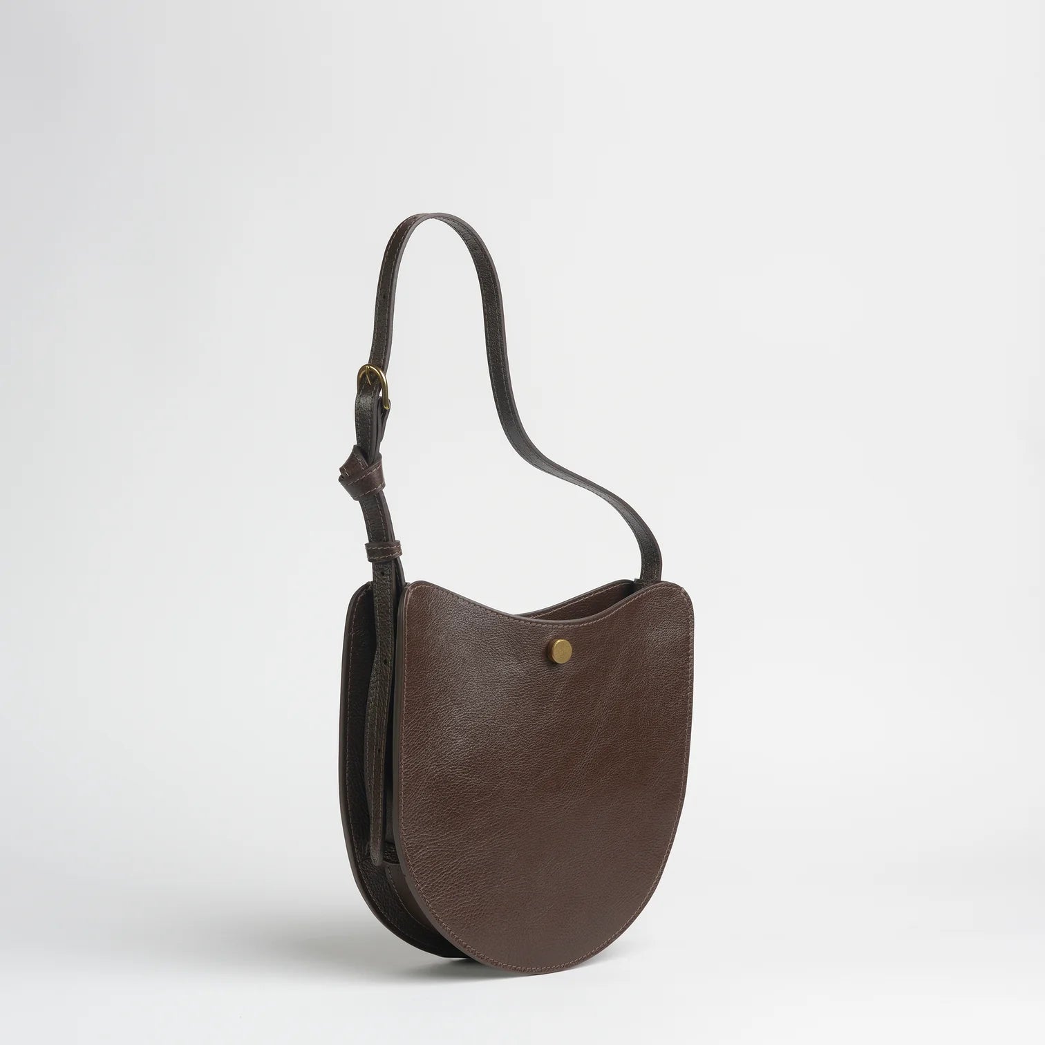 Featuring custom brass hardware and a graduated single gusset divided into three interior compartments, with five credit card pockets and a zipper pocket. Savoie is elegant and spacious, with an adjustable strap that allows for flexible wear as a traditional crossbody or over the shoulder.