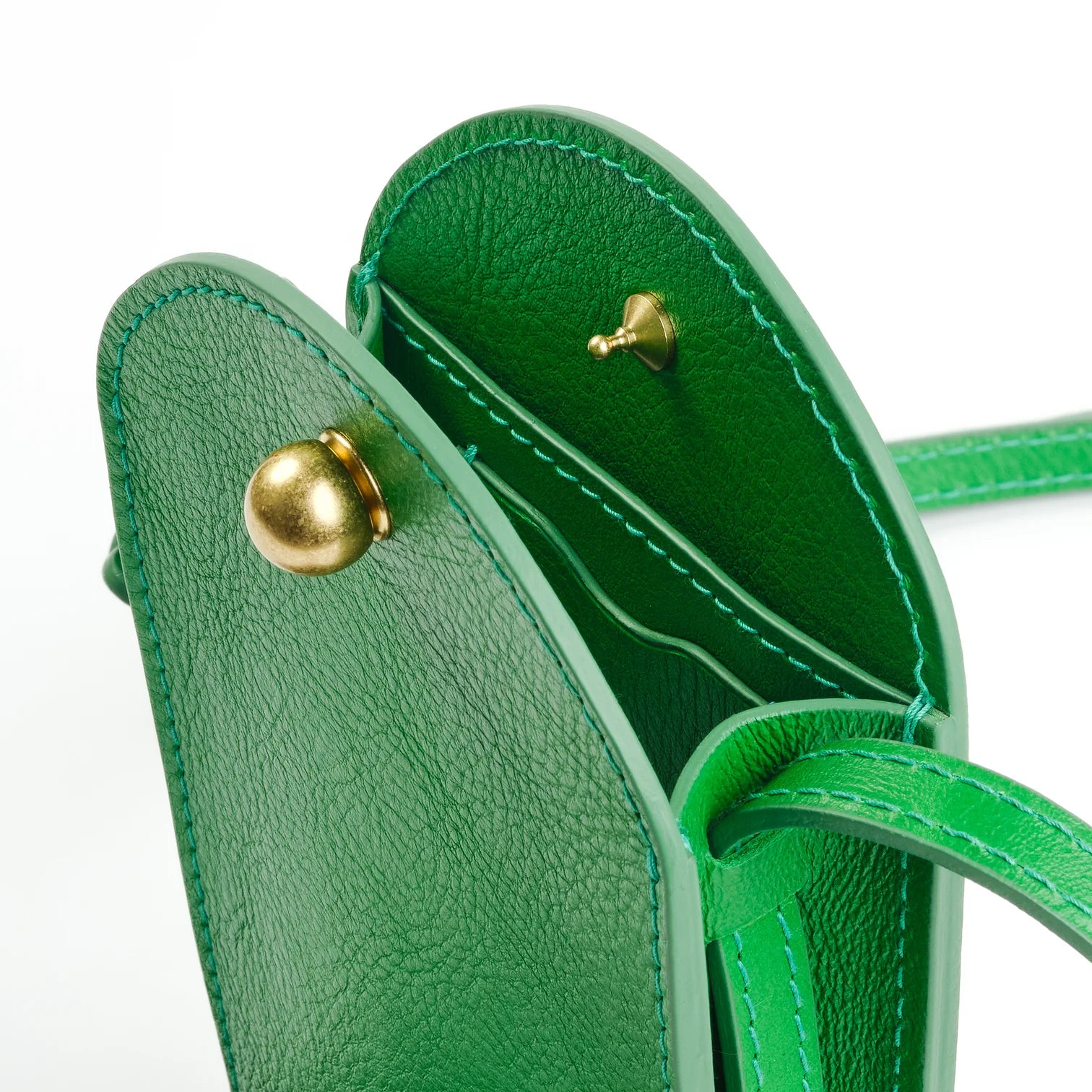 Segui features an interior partition and credit card pocket, and locks closed with our custom solid brass hardware.