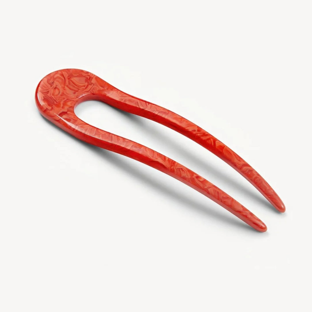Uncomplicated, simple, and elegant. Our french pin is the perfect accessory for an effortless updo that holds your hair in place while still being gentle on the strands. Pin a low bun in place, sweep your hair into a french twist, or create a twisted half-up bun. The possibilities for creative hairdos are endless. The french pin measures at 5 inches, so it is just big enough to handle all of your hair while still small enough to fit in a handbag on-the-go. Hand-sculpted in Italian acetate, the french pin is made to last.