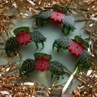 Poinsettia Claw The Poinsettia symbolizes good will and is often associated with Christmas because of its bright green and red color. This claw with its subtle sparkle, hand painted gold detailing, and twinkling stones brings just the right amount of festivity to any look. -approximately 3.75" -made from cellulose acetate -sold as a single claw *Please note that due to the nature of the material, each hair accessory will have differences in color and pattern. Each hair accessory is made from individually cut pieces of cellulose acetate. Each one is unique!