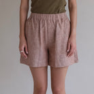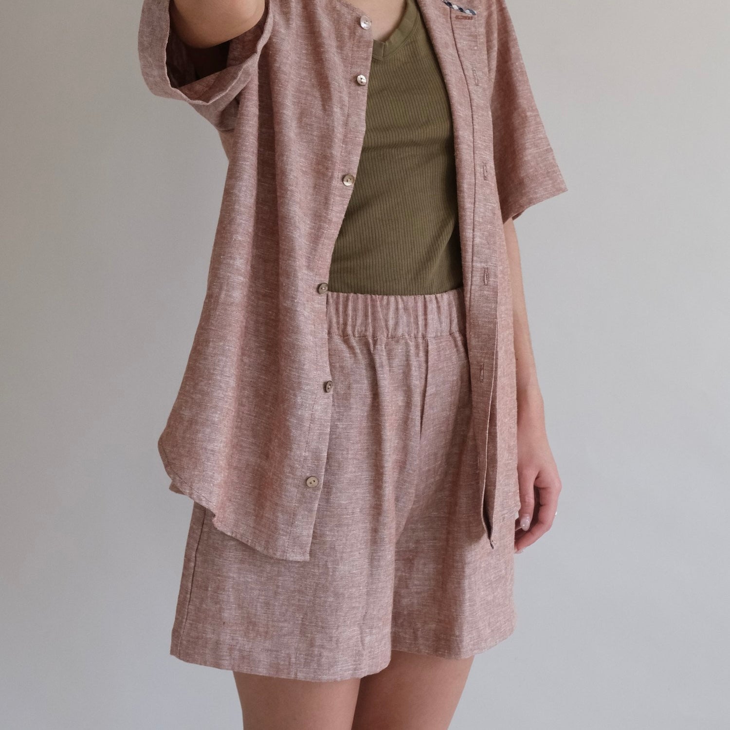 this unisex casual short will quickly become essential to your summer wardrobe. featuring an elastic pull-on waistband, relaxed fit, 5” inseam, side-seam pockets with one large back pocket. pair with a matching HONOR shirt in some fabrics for a “summer suit” look. easy, easy, easy