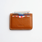 Milled leather exterior, fully vachetta lined 5-card wallet.