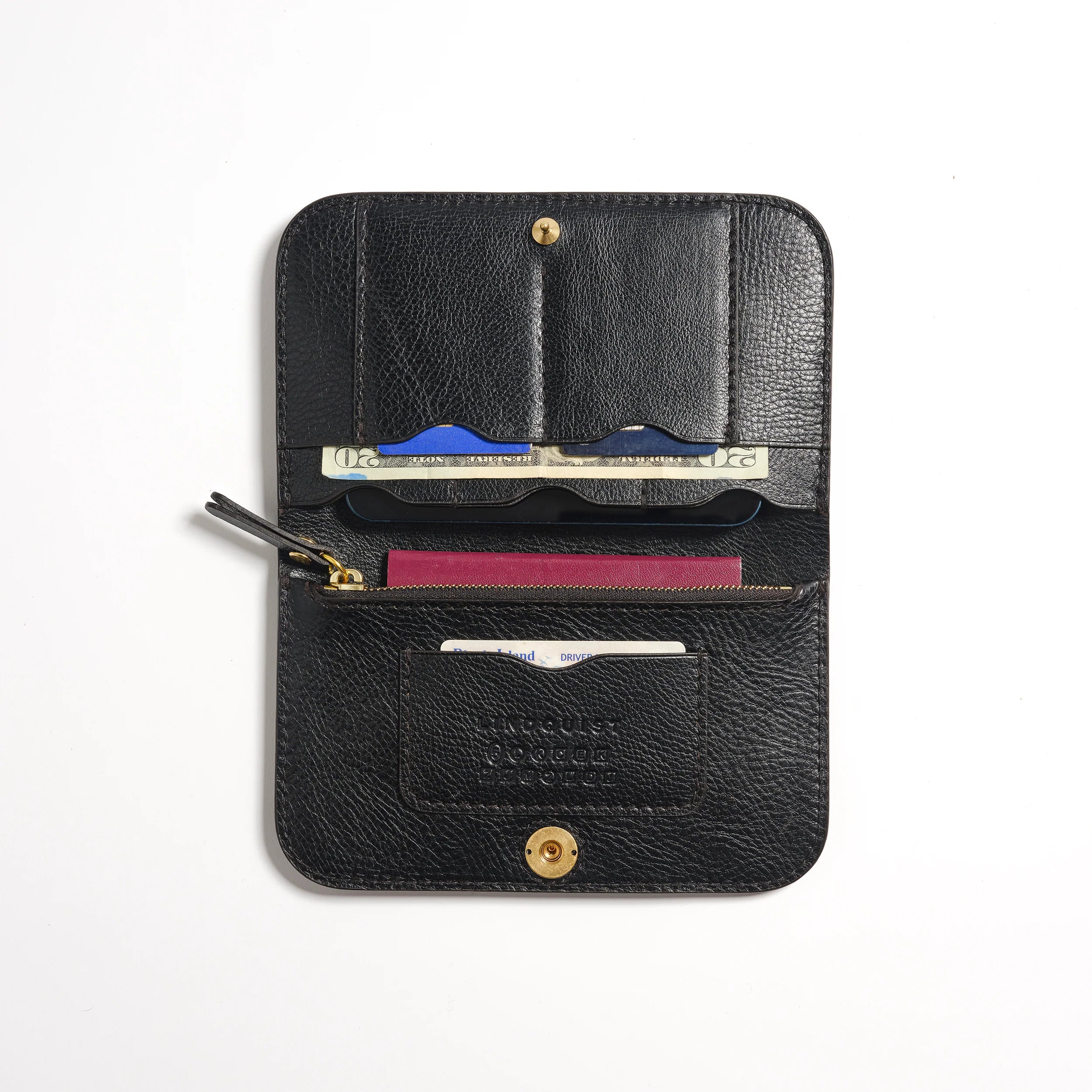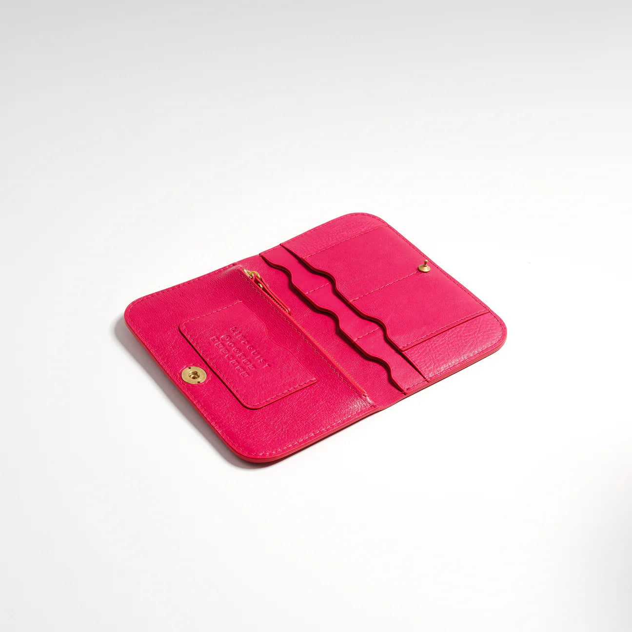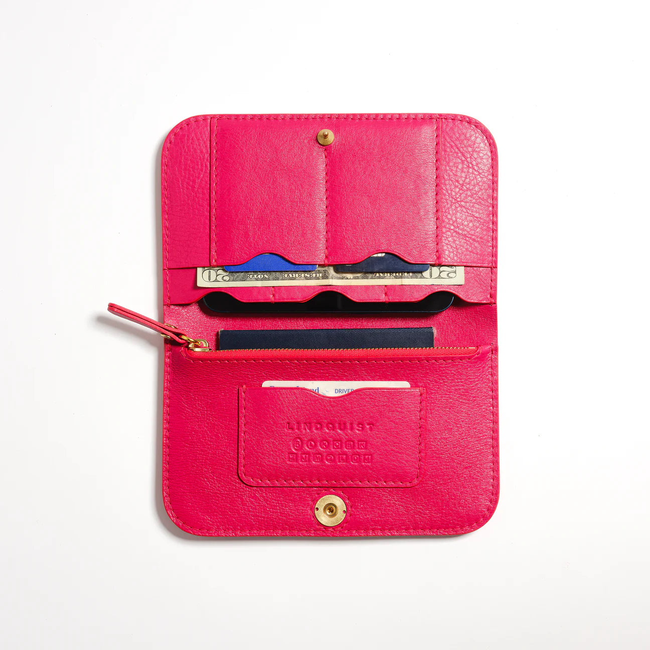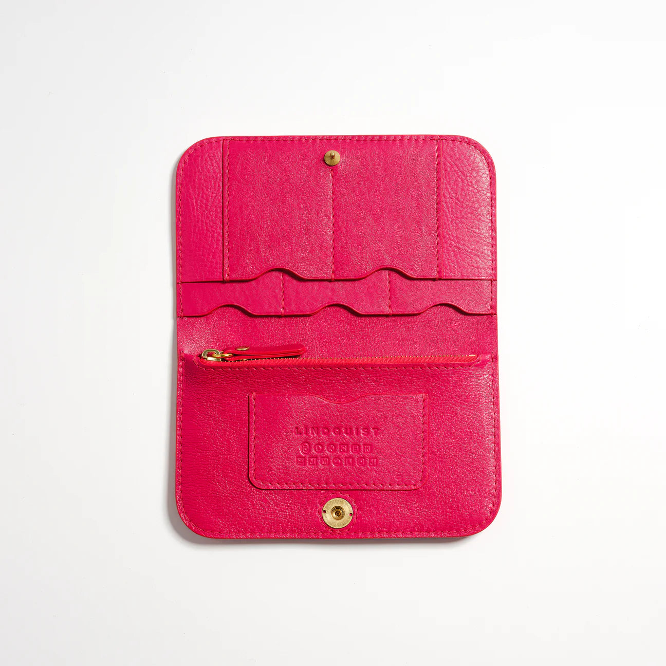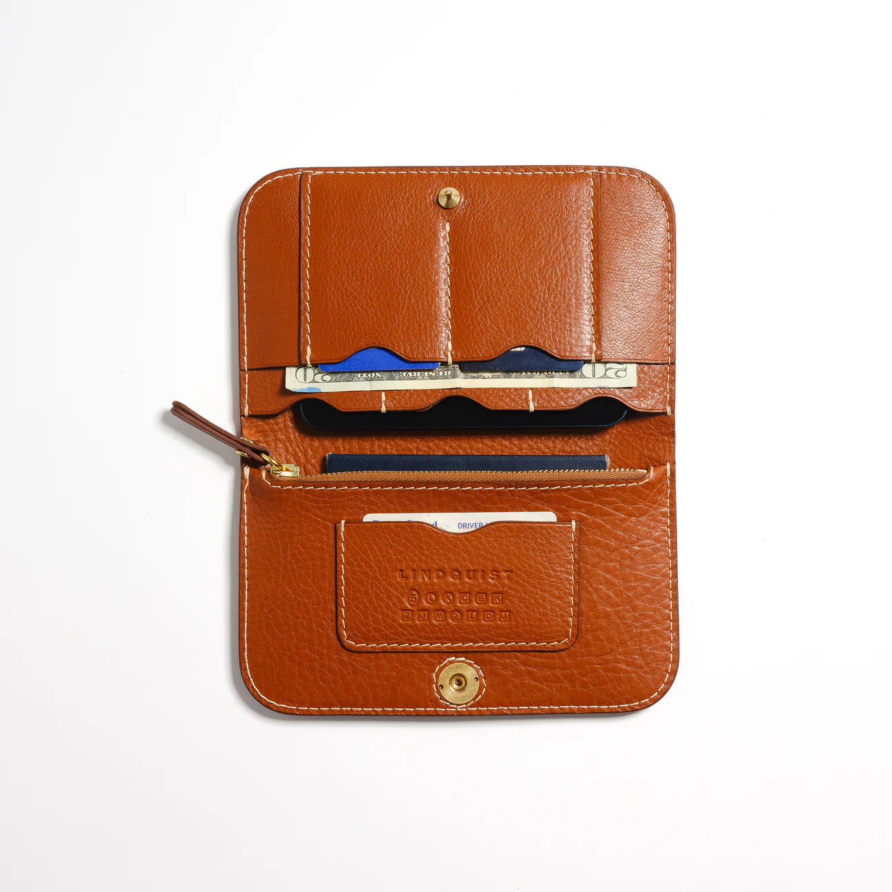 Lina is a sleek and versatile wallet and clutch, with 6 credit card pockets, interior 6" zipper pocket and two separate compartments to organize essentials. Lina is fully leather lined, features our custom brass hardware and is finished with a hand burnished edge.