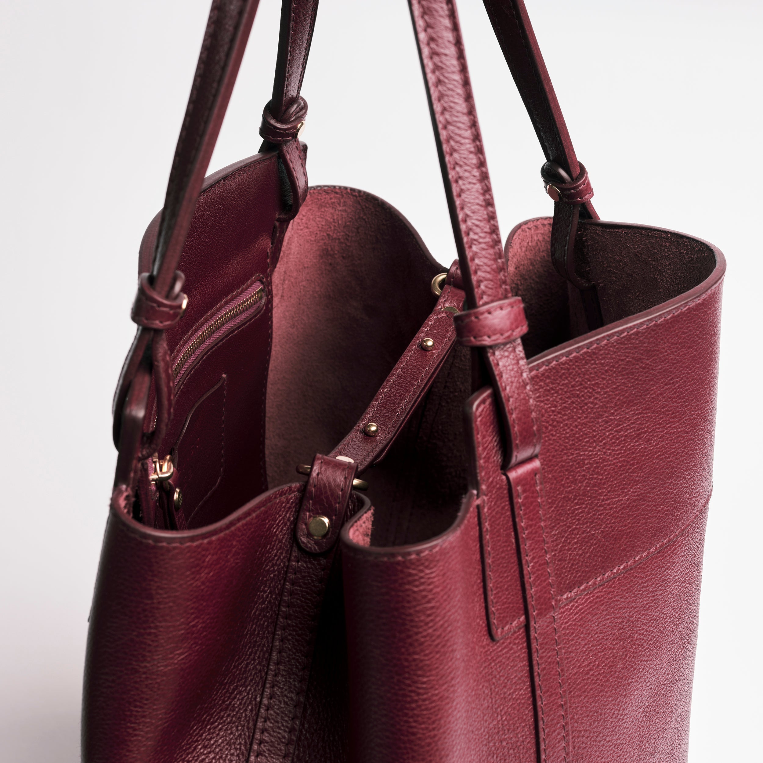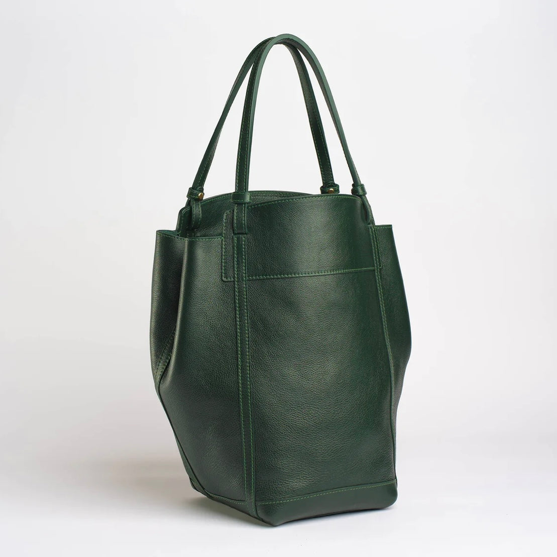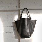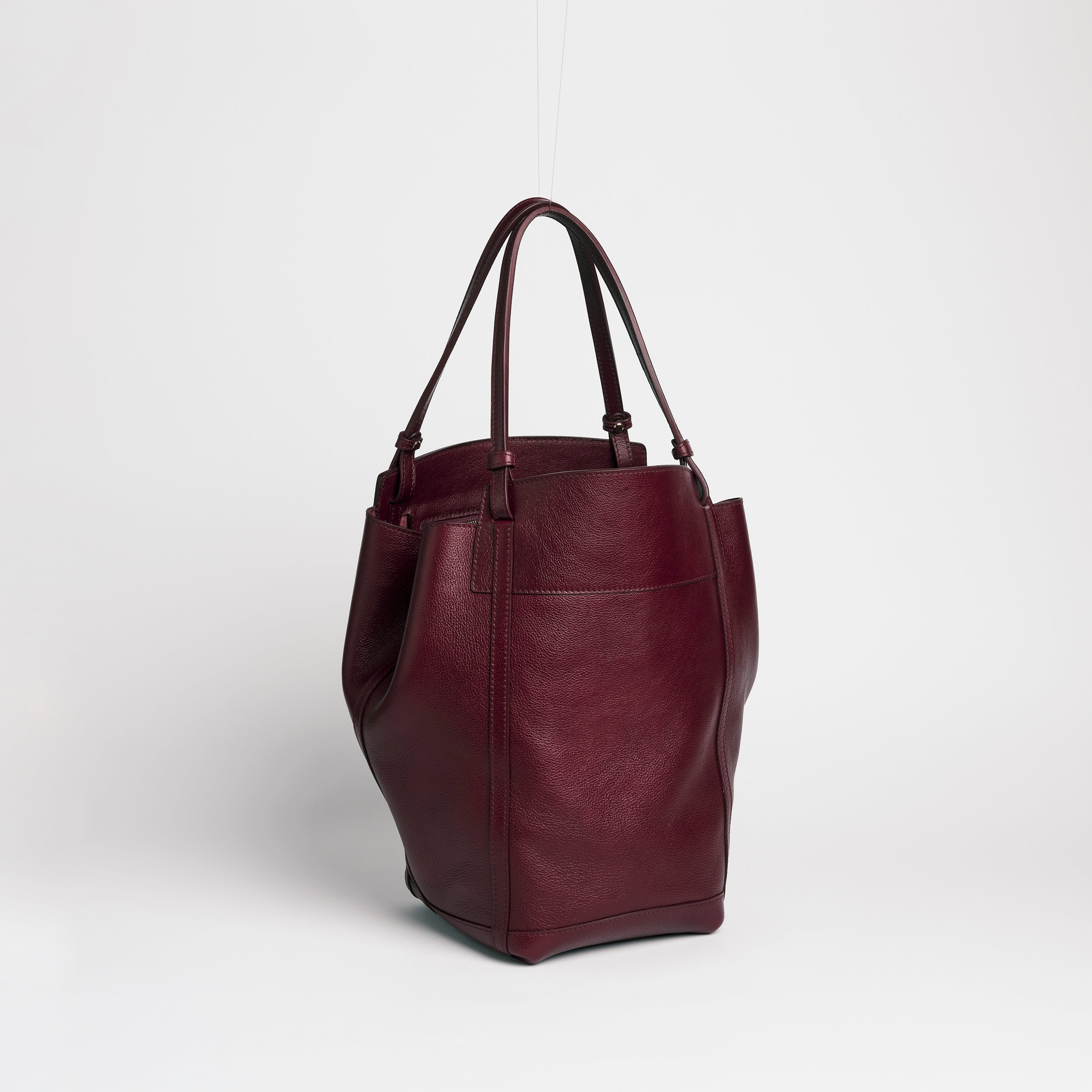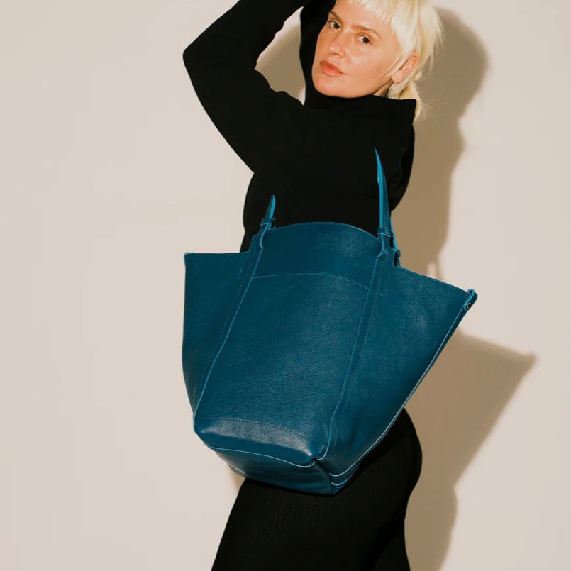 Graceful and slyly unpredictable (a nod to powerhouse namesake, L. Lopez), Linda is a meditation on mutability. Our oversized shoulder bag features sturdy stand-up handles, a square base and a triangular tapered silhouette that gathers into an ovoid shape when the interior closure belt is cinched.
