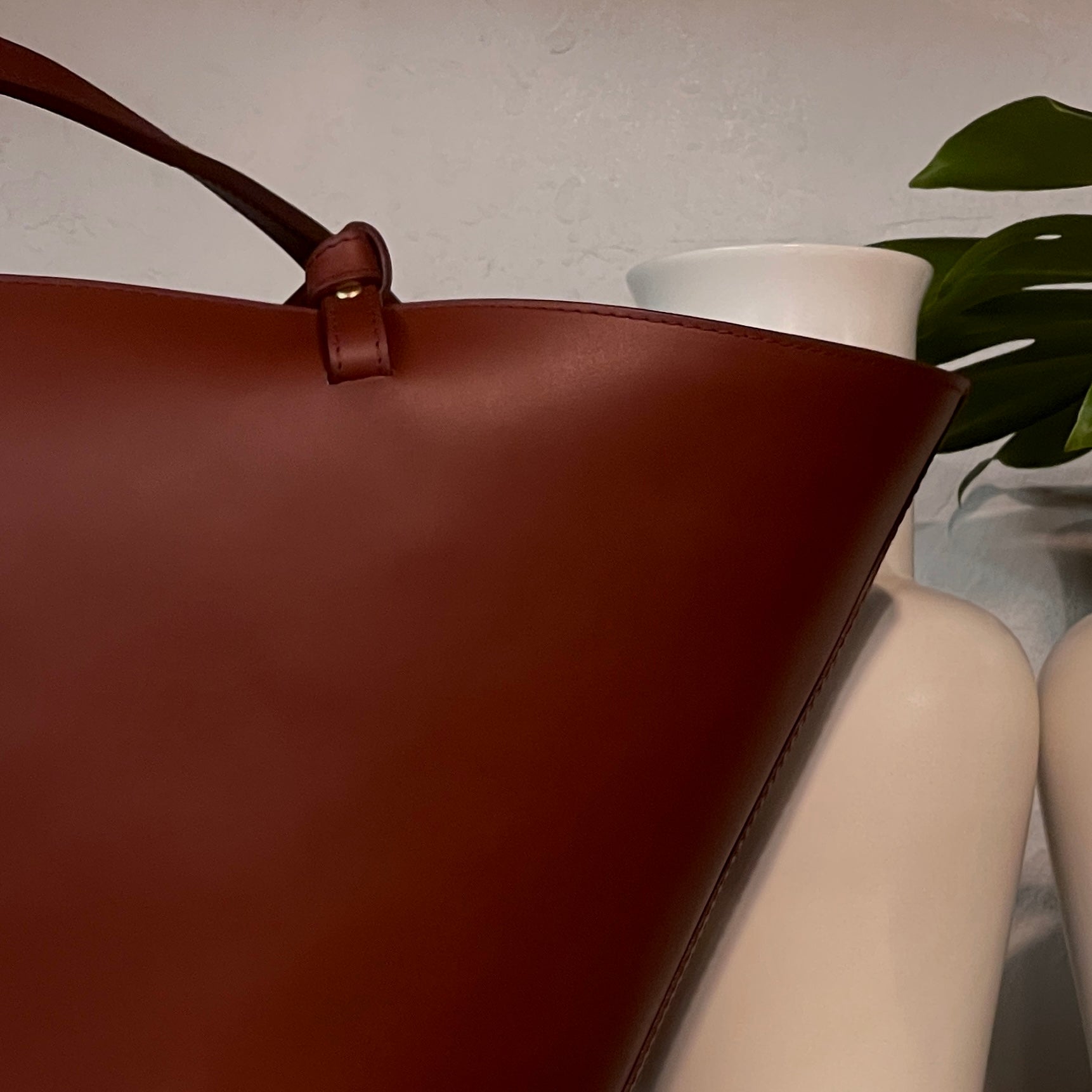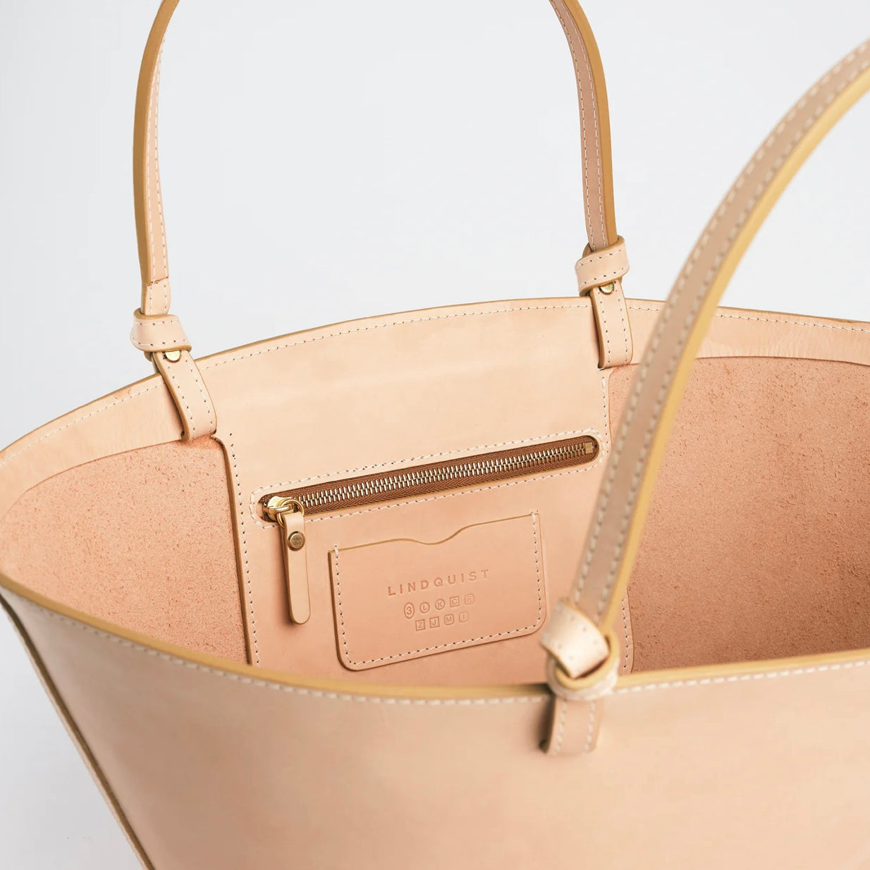 **Vachetta leather is a full grain, naturally processed leather distinguished by its smooth appearance. Because it is not treated with preservatives or chemicals, the leather holds a beautiful transformative quality — it will patina, darkening and growing more lustrous over time through contact with your hands and exposure to the elements.