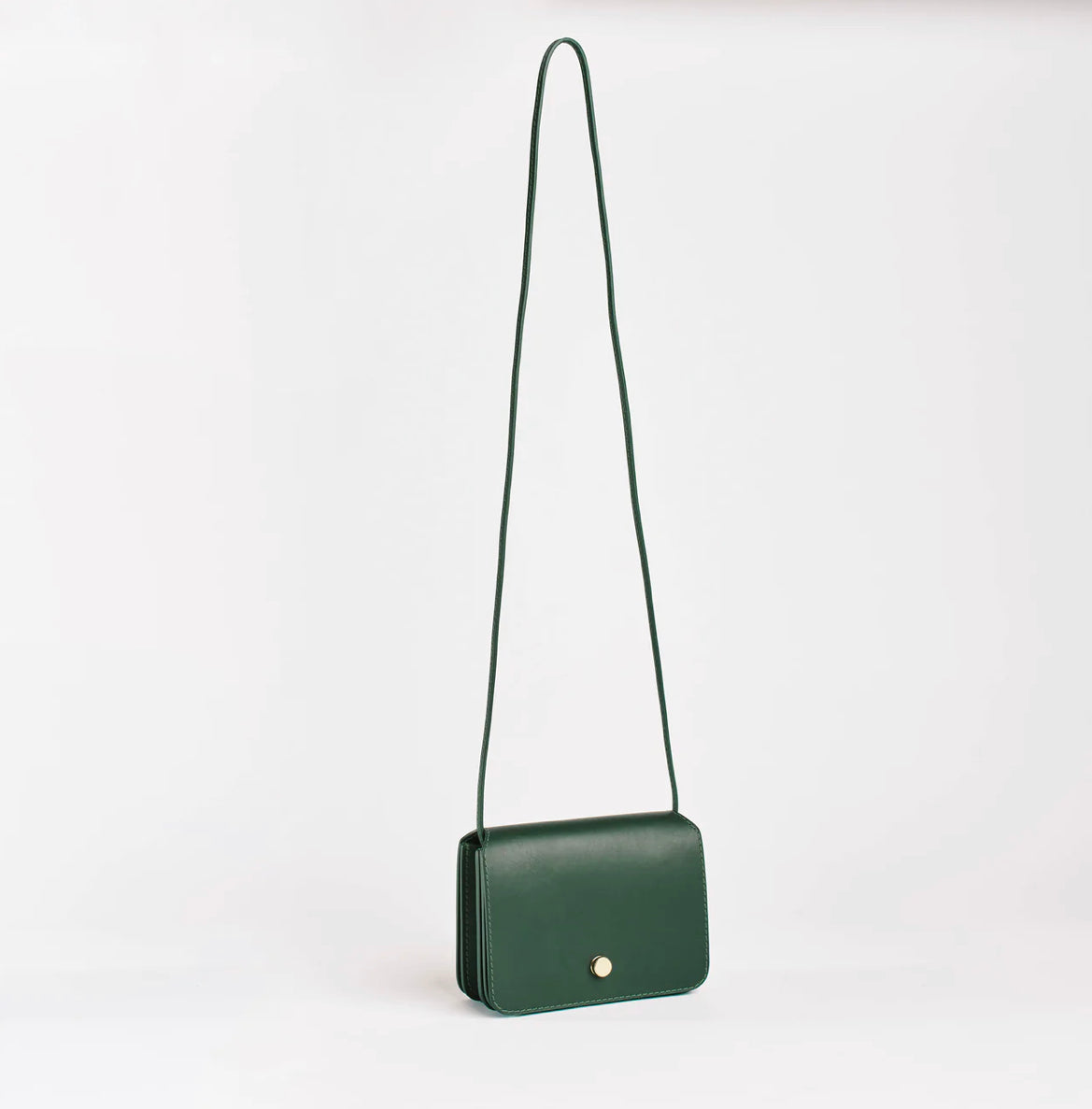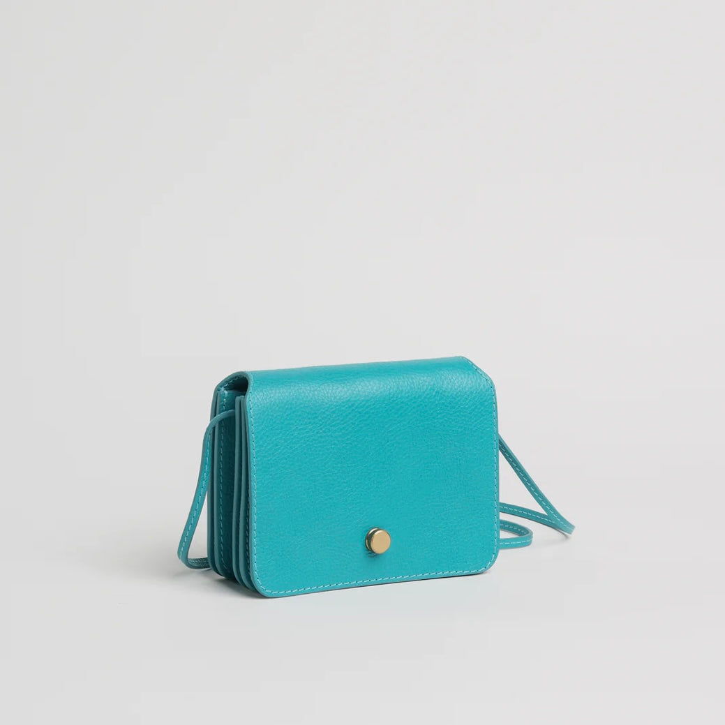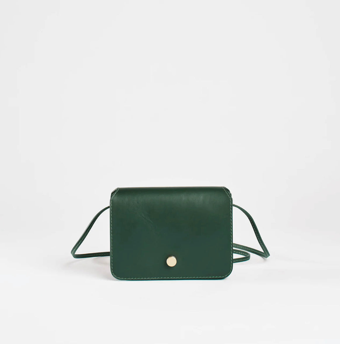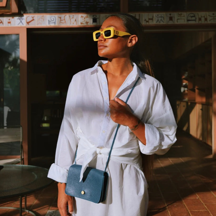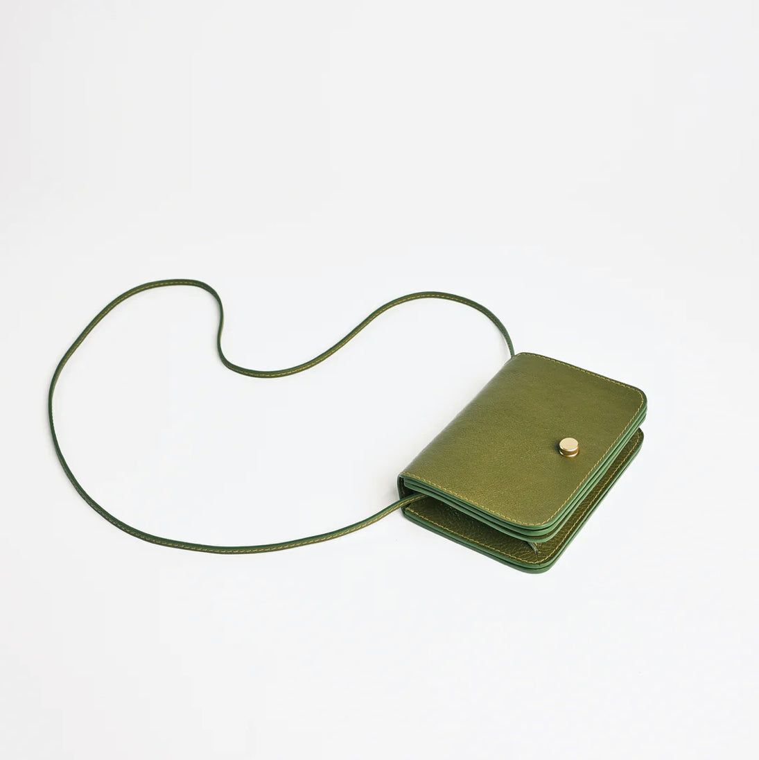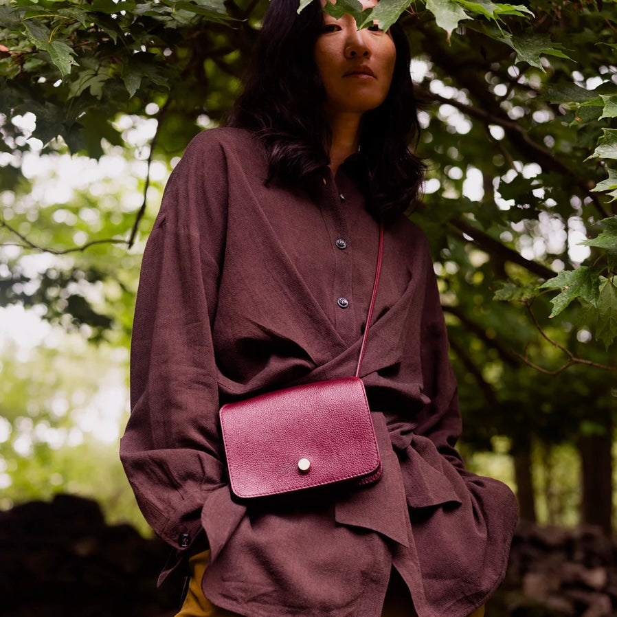 The Ray features a custom brass pull release closure, and unfolds to three interior compartments and credit card pocket with our signature curve to organize your essentials. Fully lined leather construction, with a wraparound featherweight strap ideal for layering and ease of wear over the shoulder or across the body.