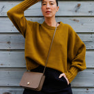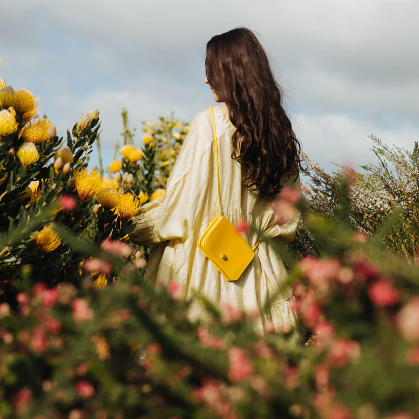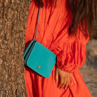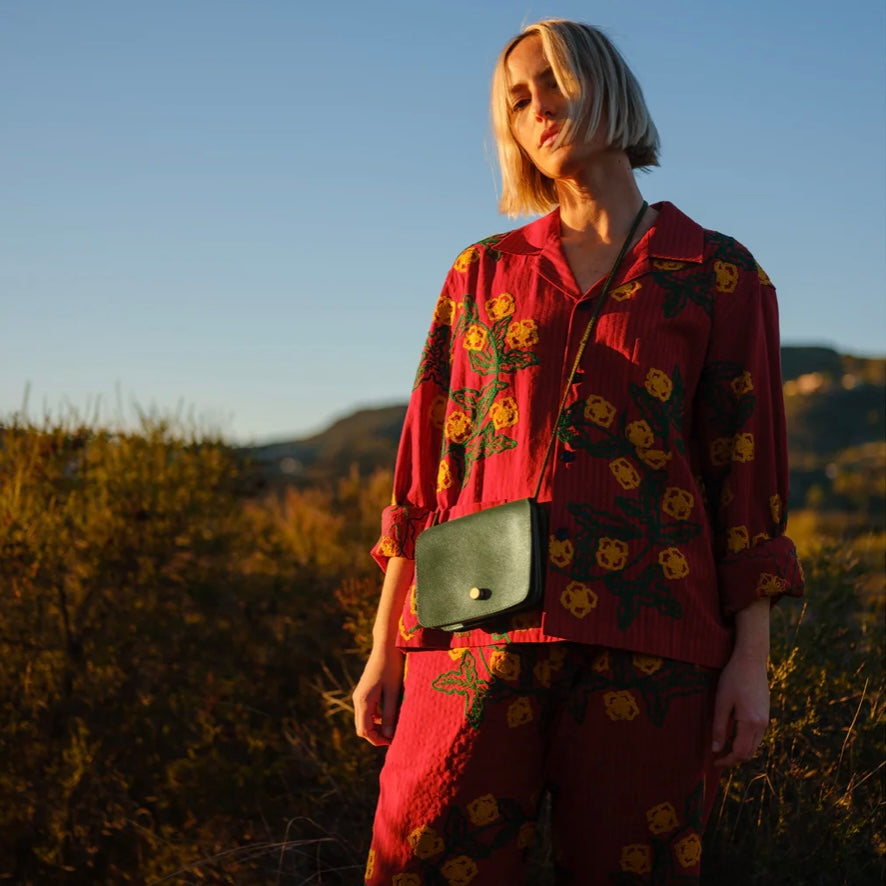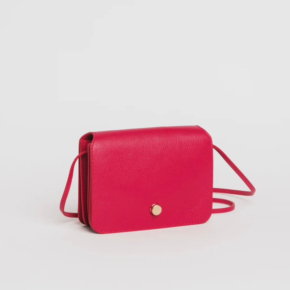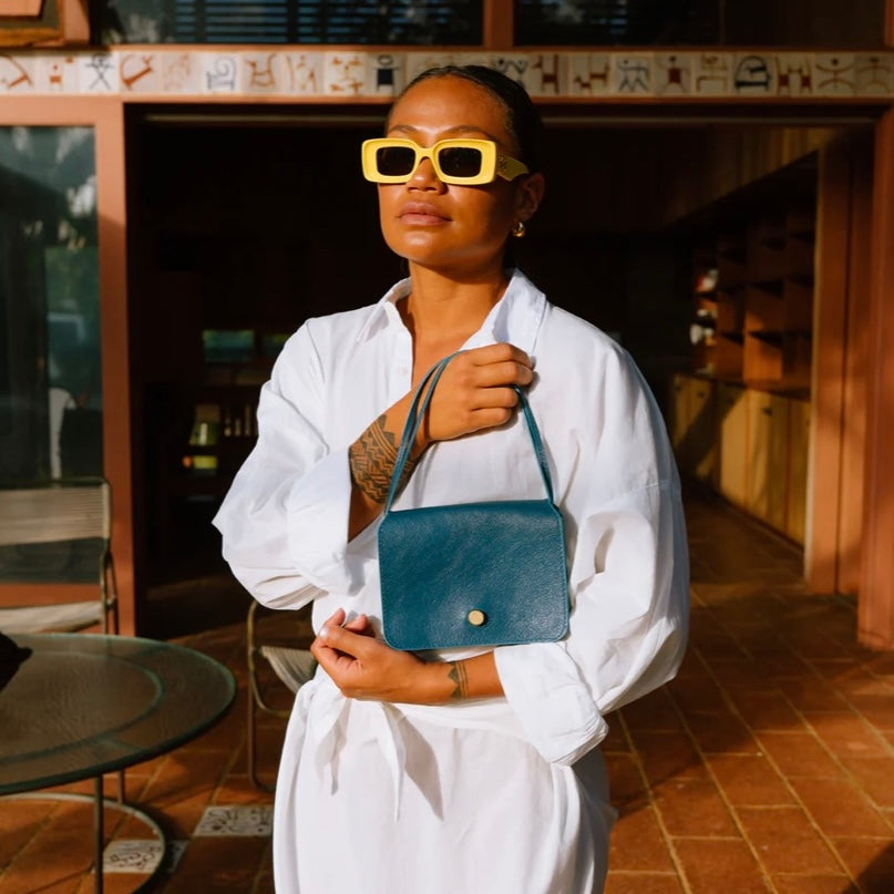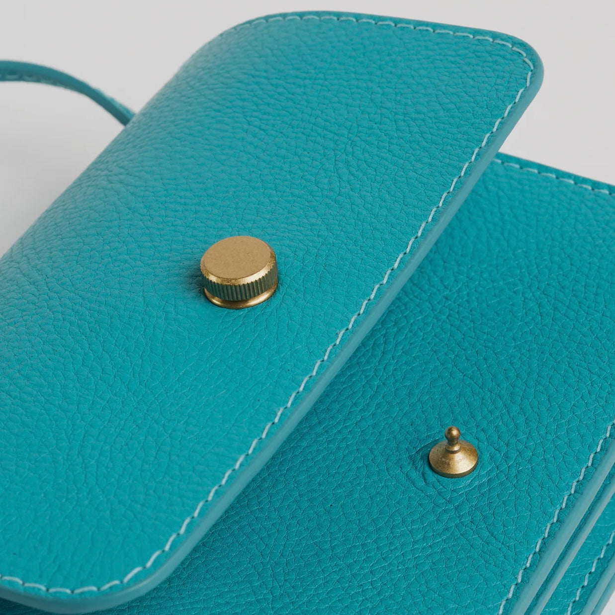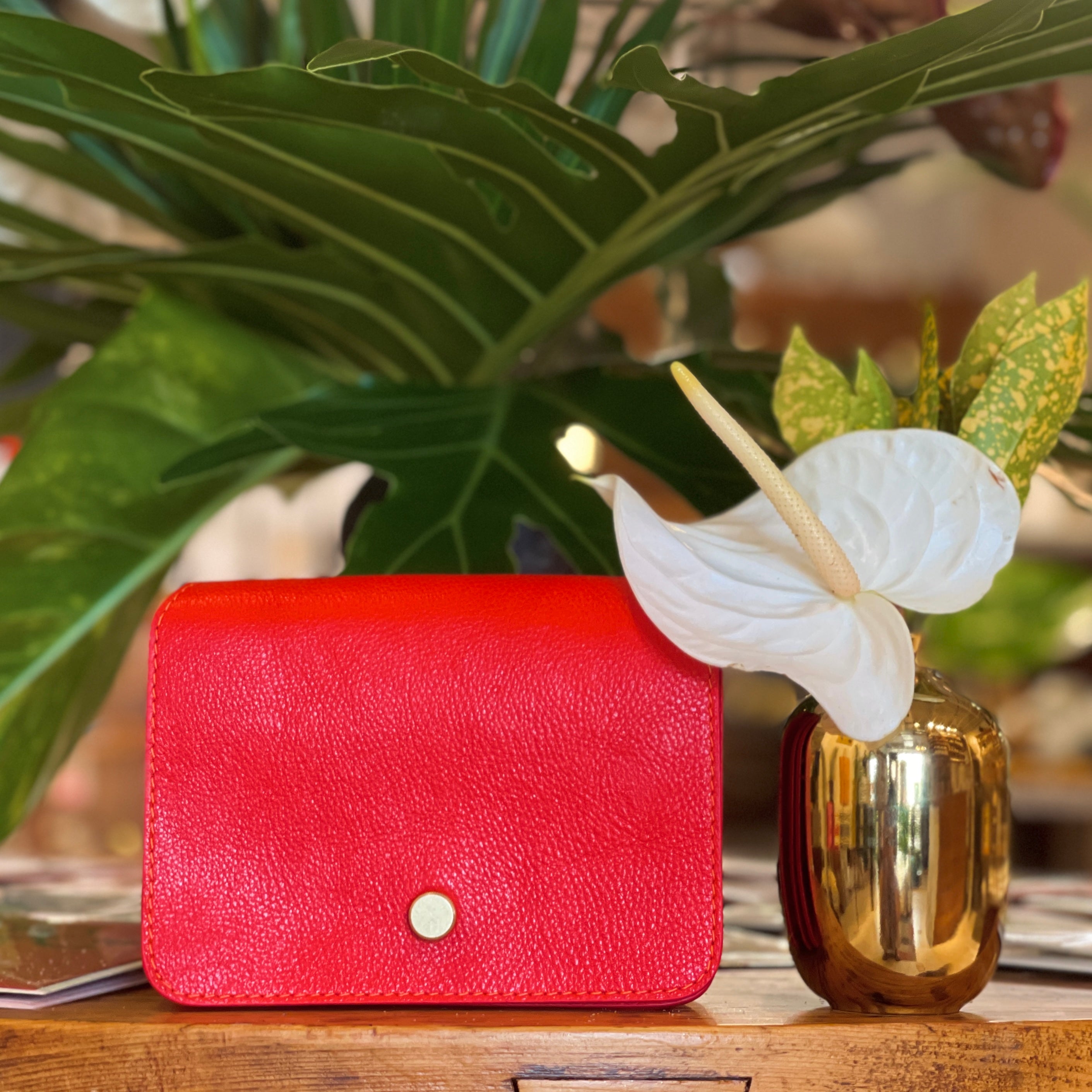 The Ray features a custom brass pull release closure, and unfolds to three interior compartments and credit card pocket with our signature curve to organize your essentials. Fully lined leather construction, with a wraparound featherweight strap ideal for layering and ease of wear over the shoulder or across the body.