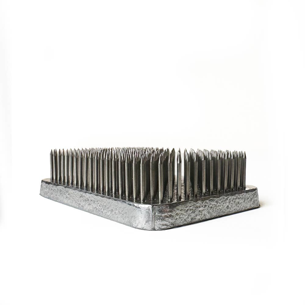 Also known as Floral Kenzans, Floral Frogs are stainless steel pin cushions most notably used in traditional Japanese Ikebana floral arranging. The stems of the flower are cut to your desired height, then impaled onto a prick of the pin. Because the water shoots up the stem of the flower, frogs help extend the life of your flower. We have no idea why they were given the name Frog.