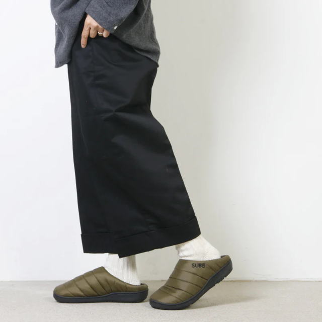 Thoughtfully designed in Japan, SUBU's innovative indoor/outdoor slippers boast durable, textured rubber soles, warm polyester down fill, and a cushioning four-layer insole - for home use, a quick trip to the market, or a longer outdoor adventure.
