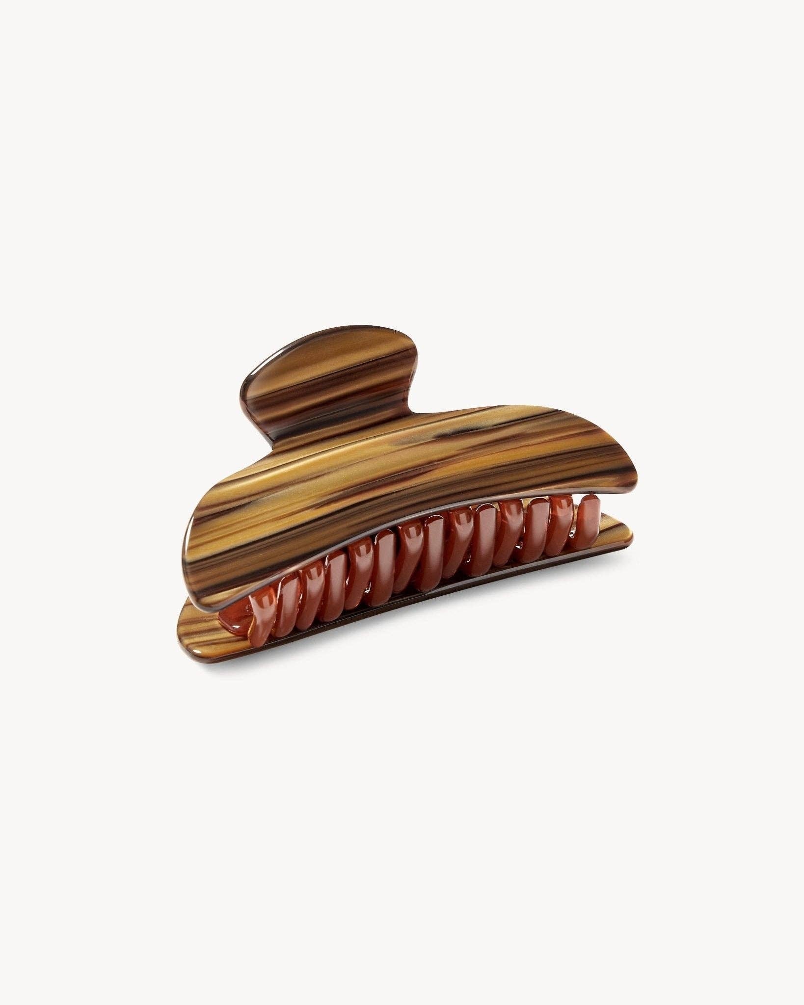 Smallest of the three larger-sized Machete Hair claws. It’s got that double-row claw we love for a no-slip grip. The difference between the Midi and Grande is the depth, shown in the side-view photo comparison.