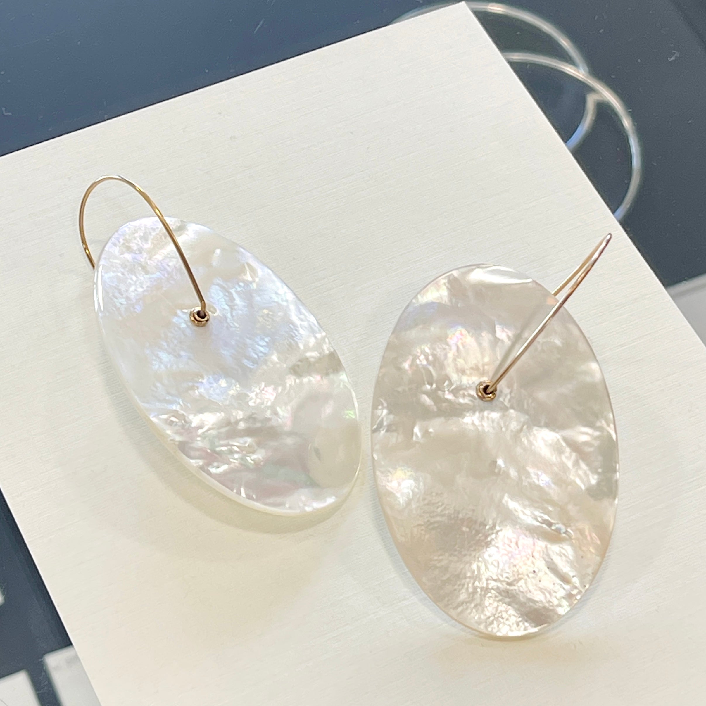Beautifully unique in design. The Mother of Pearl Balance Earrings move on an axis point on that perfect balance point. Each Mother of Pearl Piece is one-of-a-kind.
