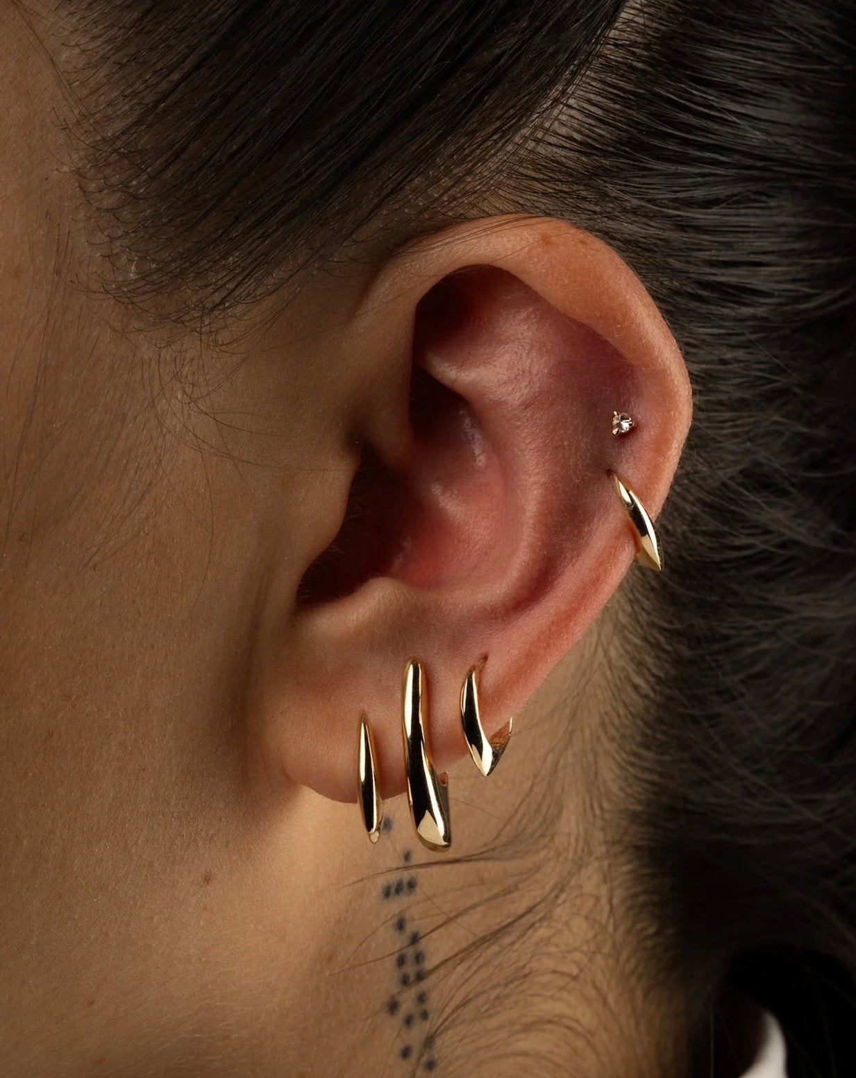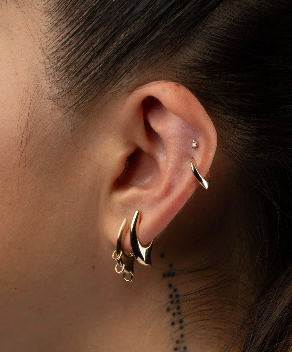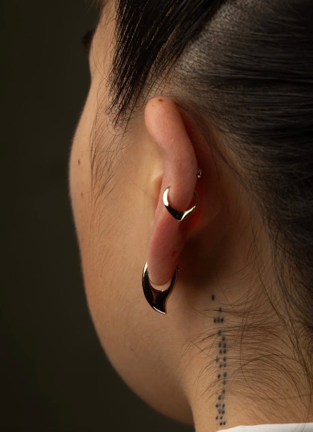 YŪMONO| The Sheena Hoop, Fluid is polished to a mirror-like shine, giving it a futuristic, sci-fi feel. When stacked, each shape flows into the next like liquid metal.