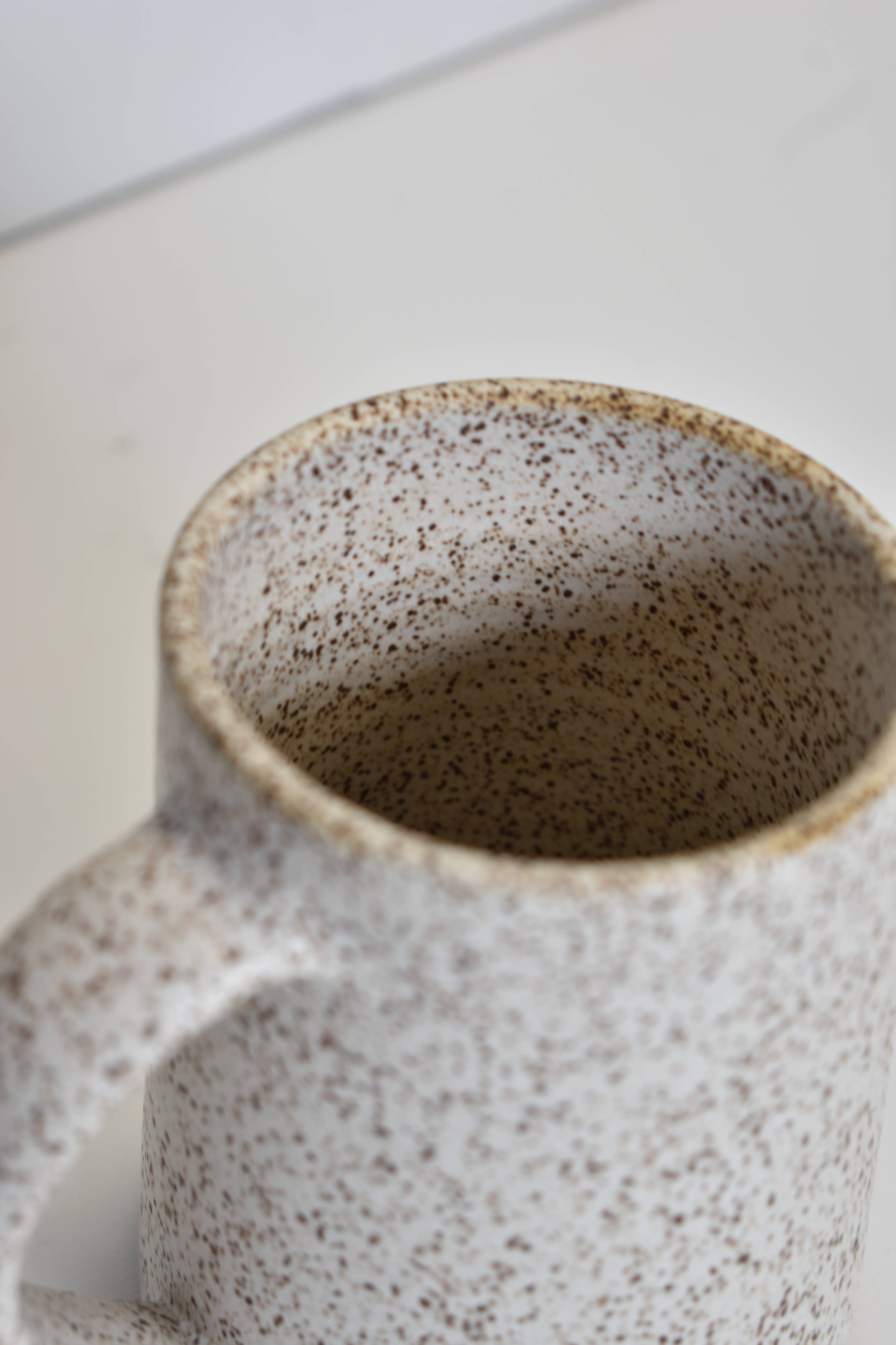 Hand thrown mug, holds around 12oz comfortably. Tapered from bottom to top. Dishwasher and Microwave Safe W: ≈3in H: ≈4.25in