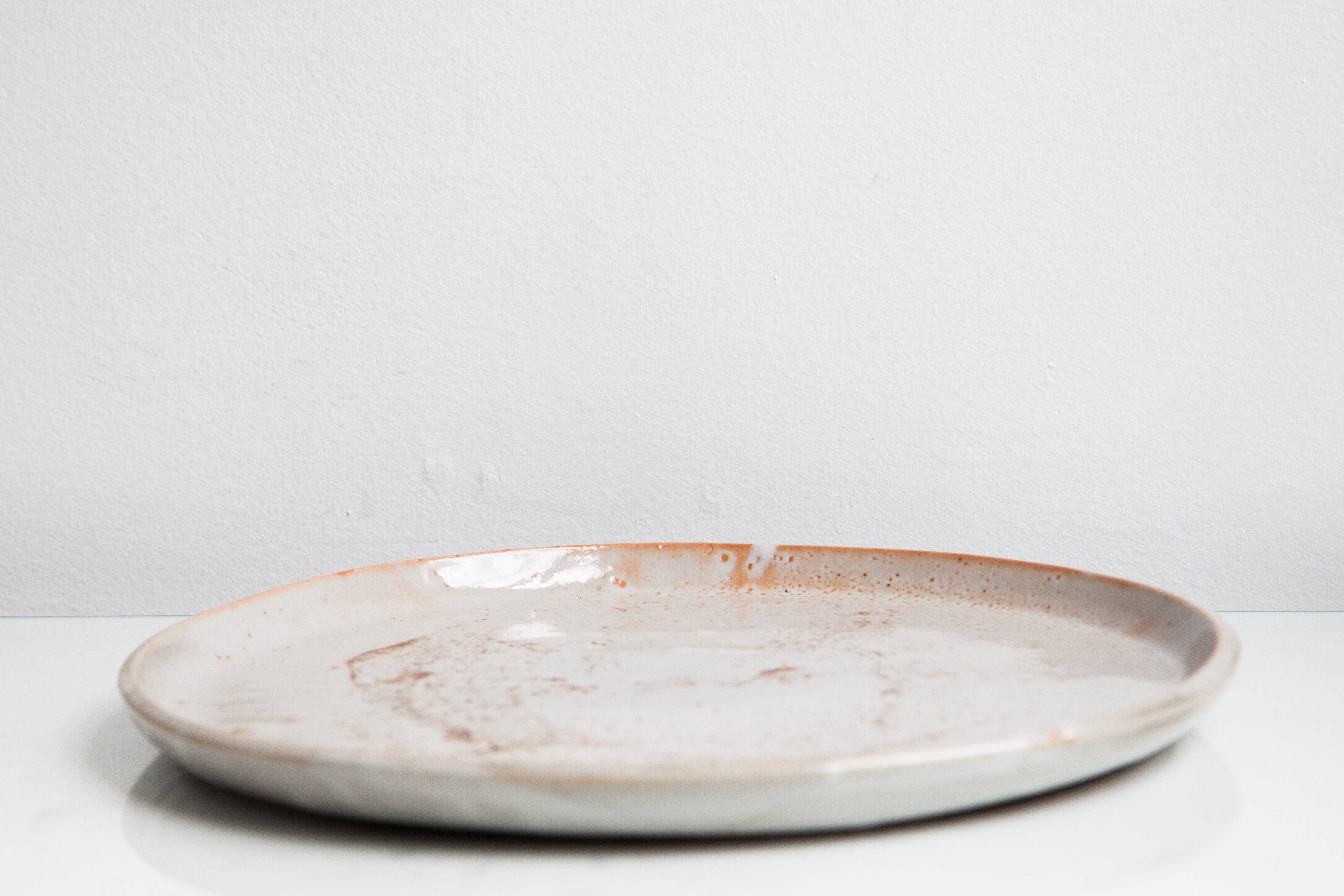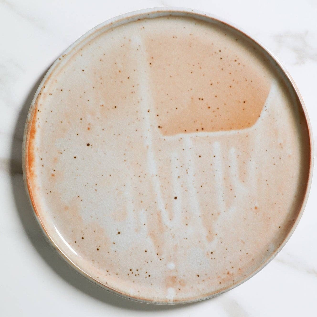 Glaze: Shino, Our modified take on the Japanese Shino glaze, with traditional crazing (small crackles in glaze). Finishes range from bright white with coppery crystals and bronze speckling to orange flashes with swirls of smoky carbon.