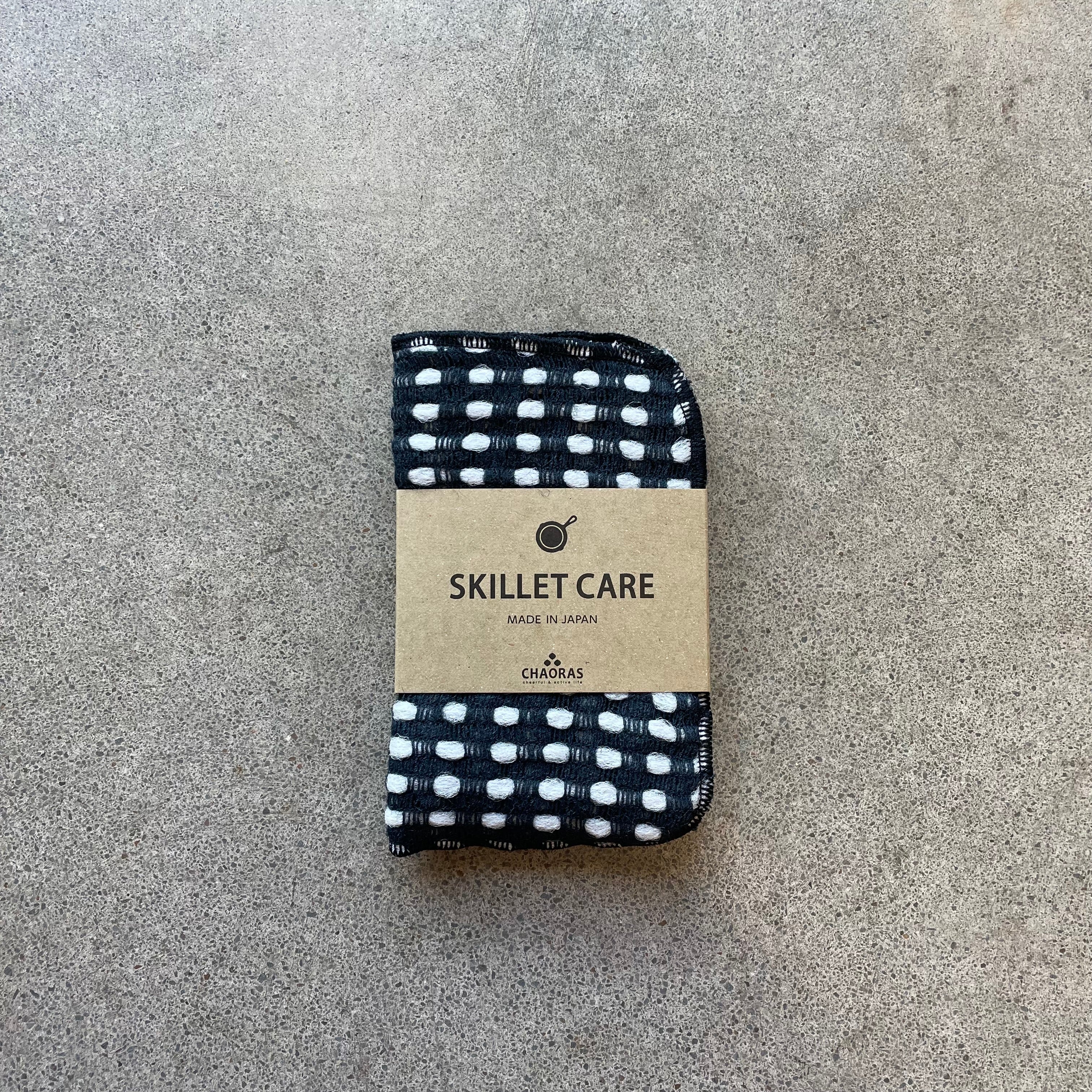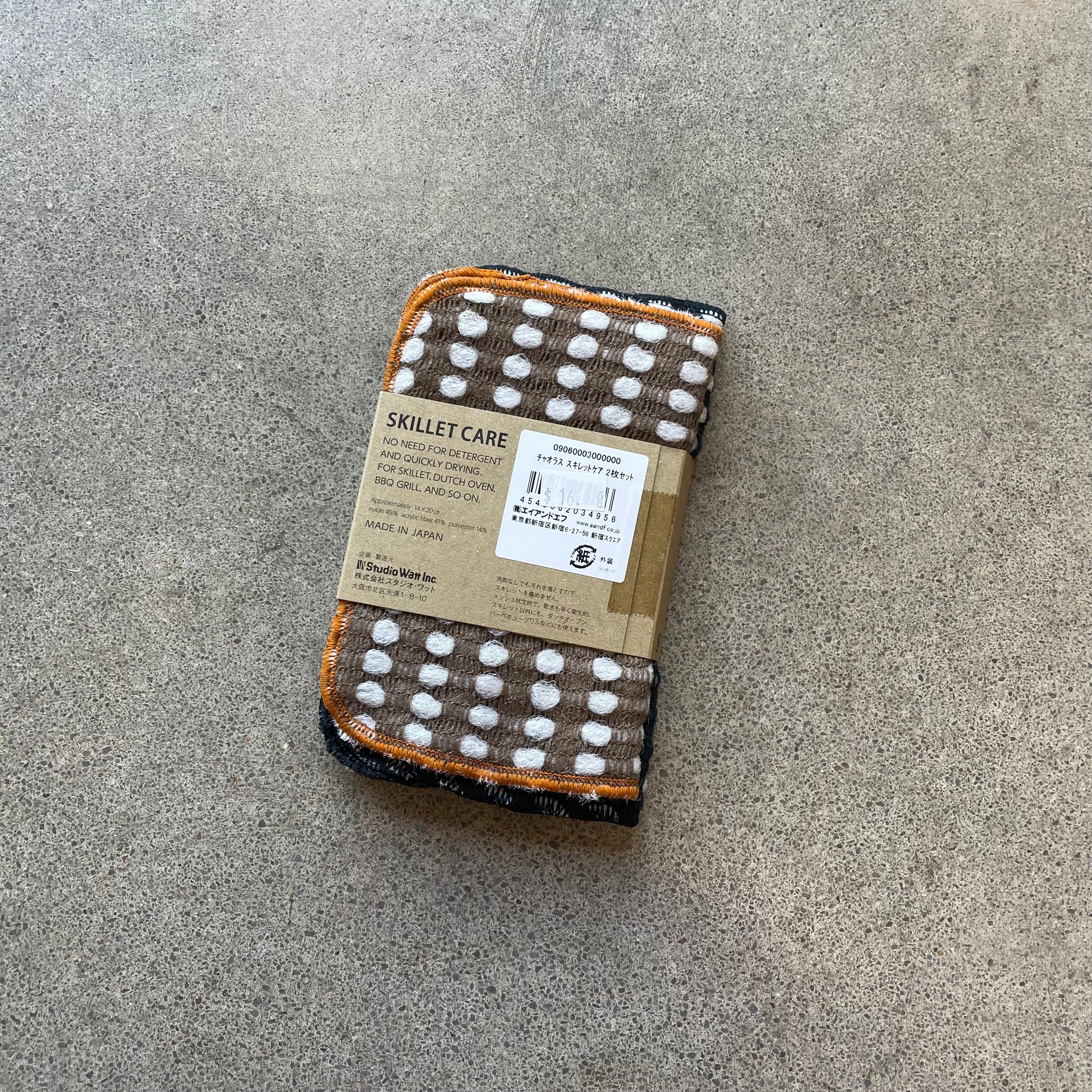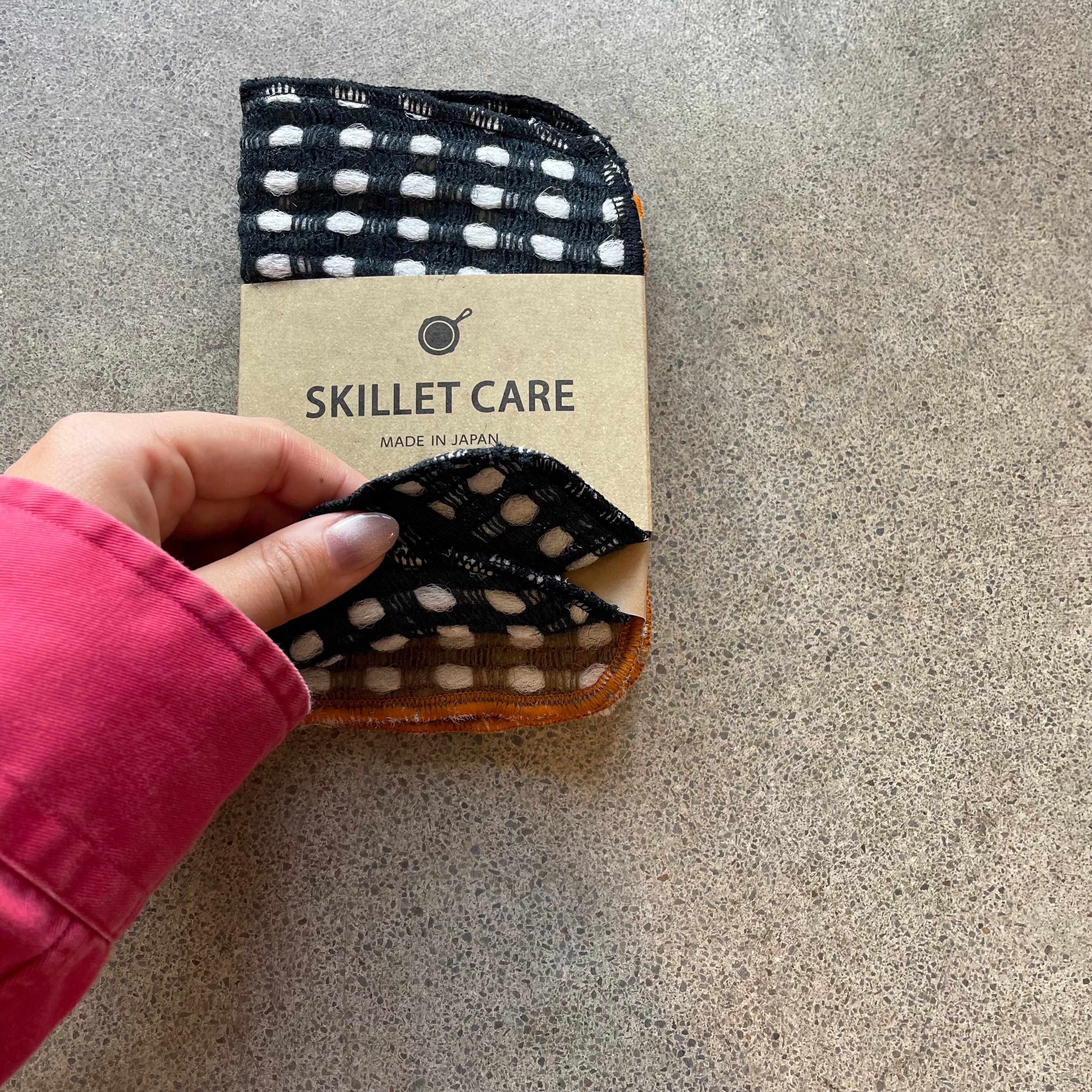 Quick drying care sponge for skillets, Dutch ovens, and BBQ grills.