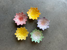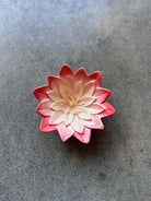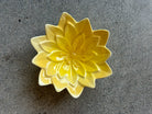 Flower Catch-all dish in the style of Mid-Century Tiki. These dainty lotus flower ceramic dishes are works of art. Each one is slipcast, hand painted and glazed in Kailua, Oahu. No two are alike, and it is tough to find a “pair” that match. These are sold individually and randomly selected "dealer's choice" colors. You can make your color request using the dropdown menu. If the color you want is not available, I will substitute the next most similar color.