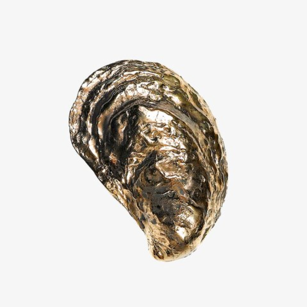 Molded from an actual oyster shell and modified by hand. Each lost-wax cast solid bronze bottle opener is designed to discreetly hide its functionality. Whether you use it to pop your favorite beer or as a decorative paper weight, it makes a great gift. Verdigris and patina to be expected. They are uncoated bronze pieces.