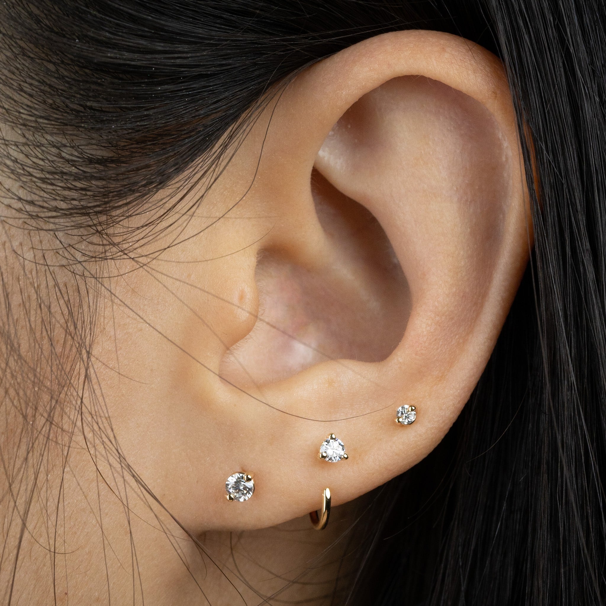 Pinch Flat Back Stud Earring, 2mm Diamond (Single Earring)