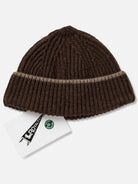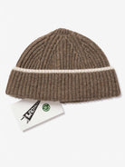 This hat is made in France from a blend of recycled wool from upcycling. It is knitted in ribs and decreases, which allows for no seams but pretty exterior finishing details.