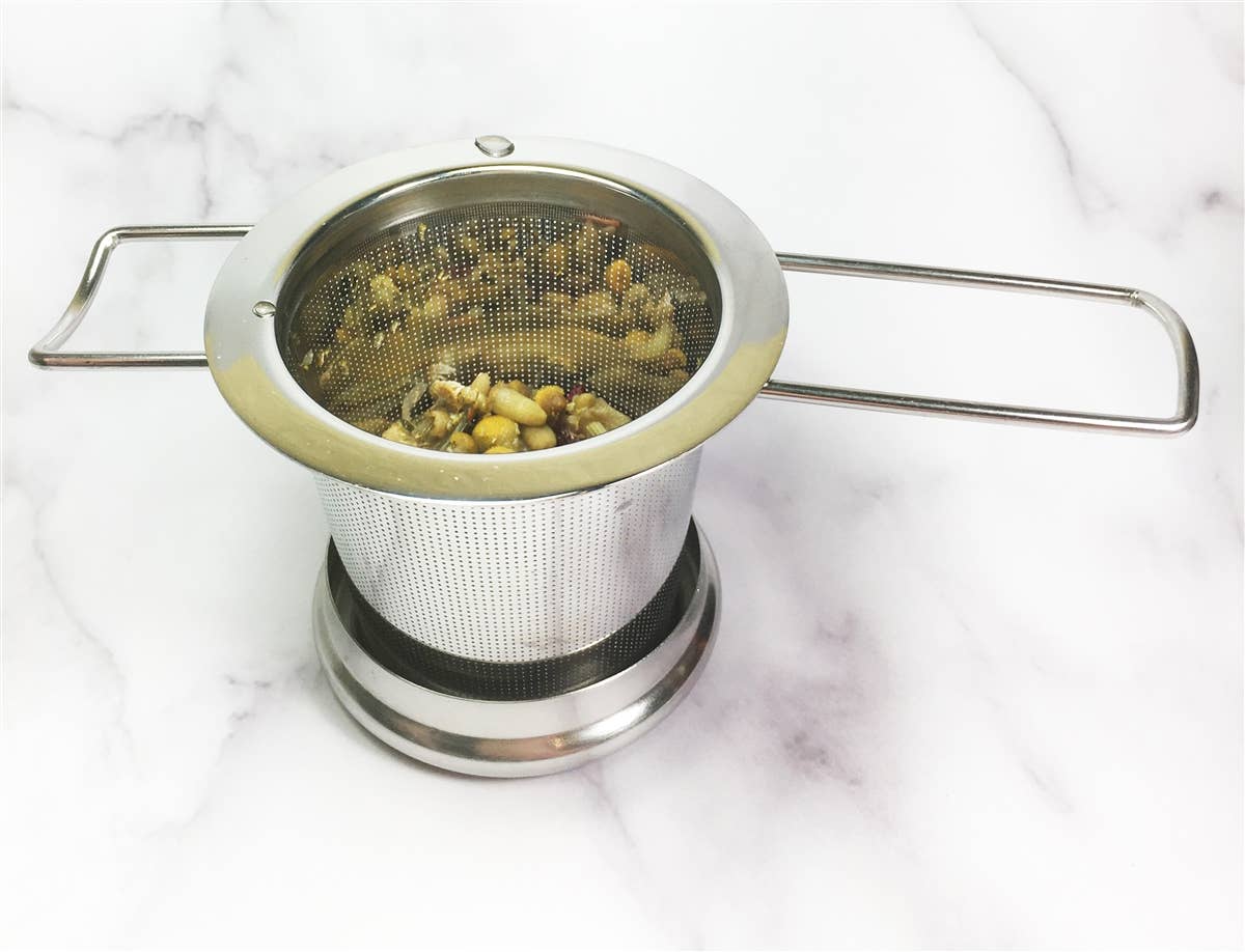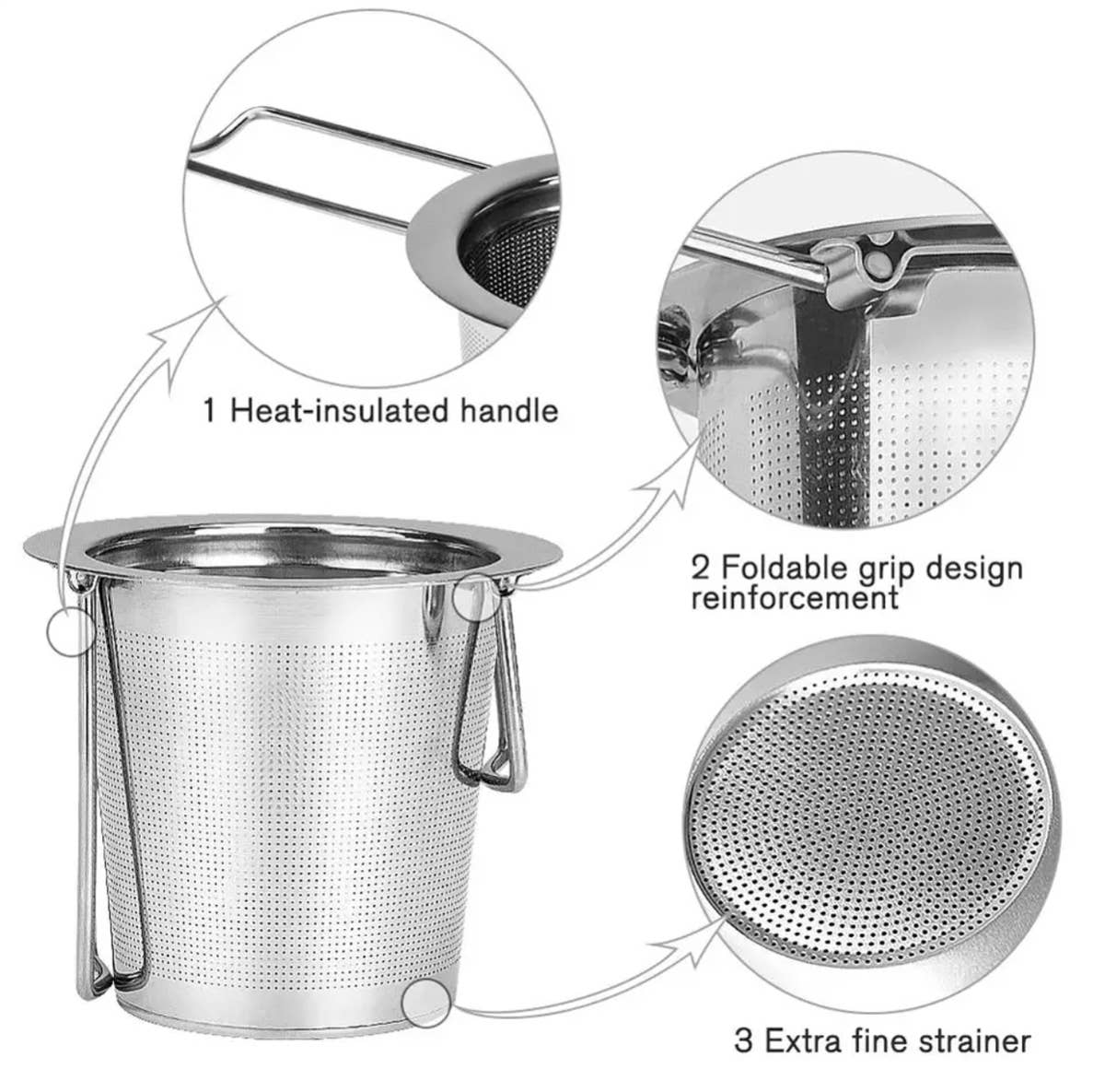 This infuser will fit a wide variety of teacups and teapots! It's extra-fine stainless steel design allows you to steep all varieties of loose-leaf tea in almost any size teacup or teapot. The handles are collapsible to save space.