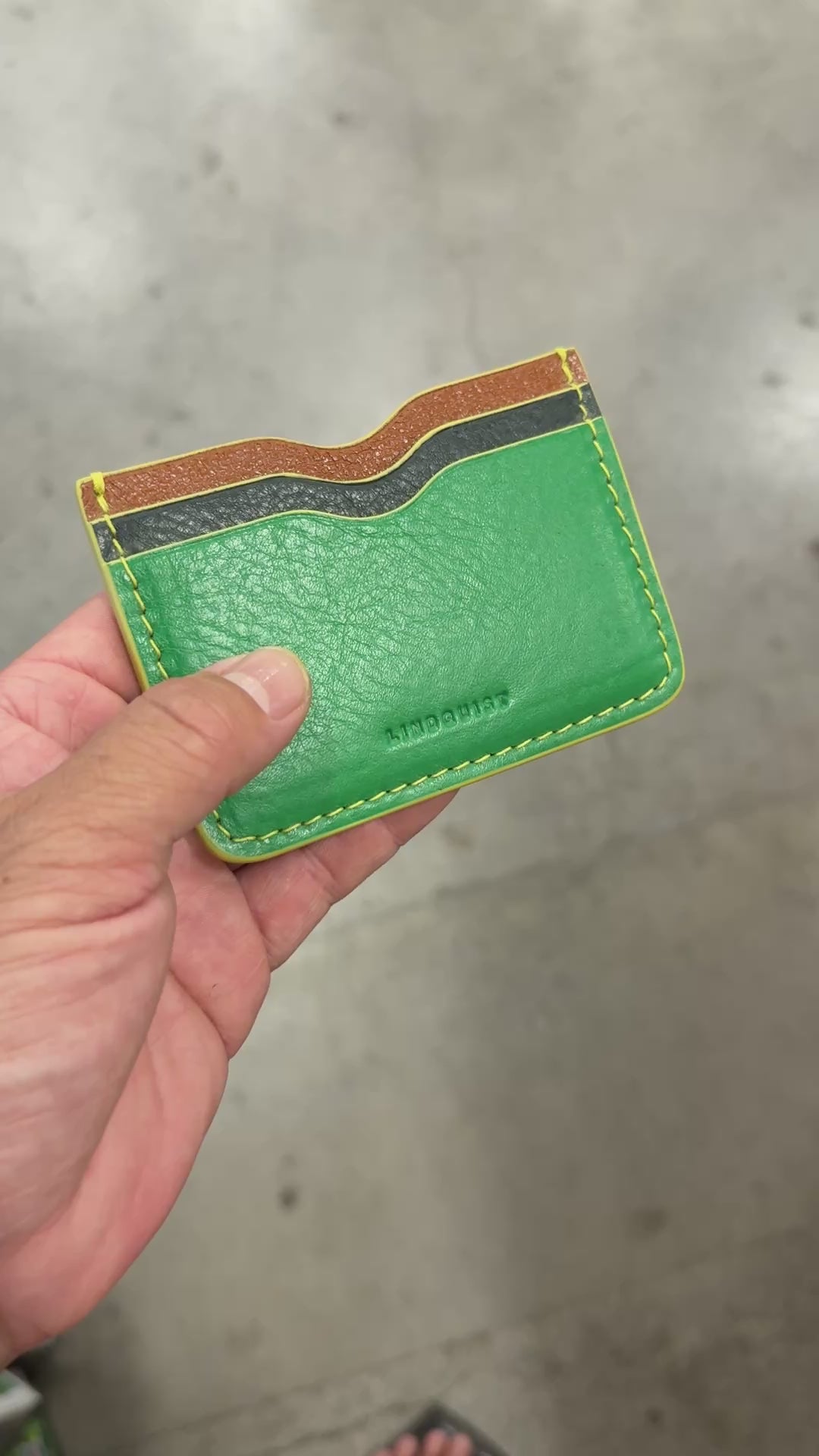 Milled leather exterior, fully vachetta lined 5-card wallet.