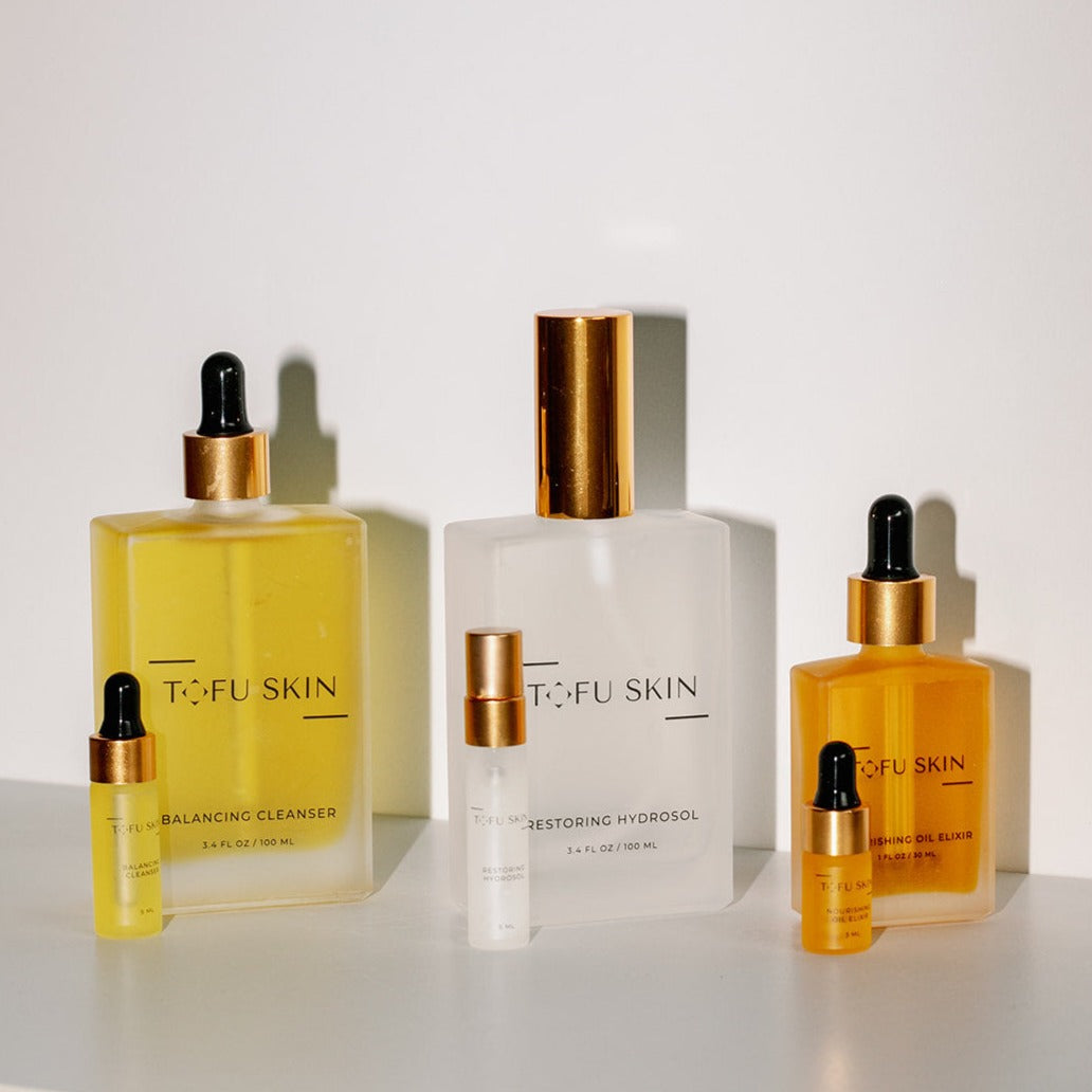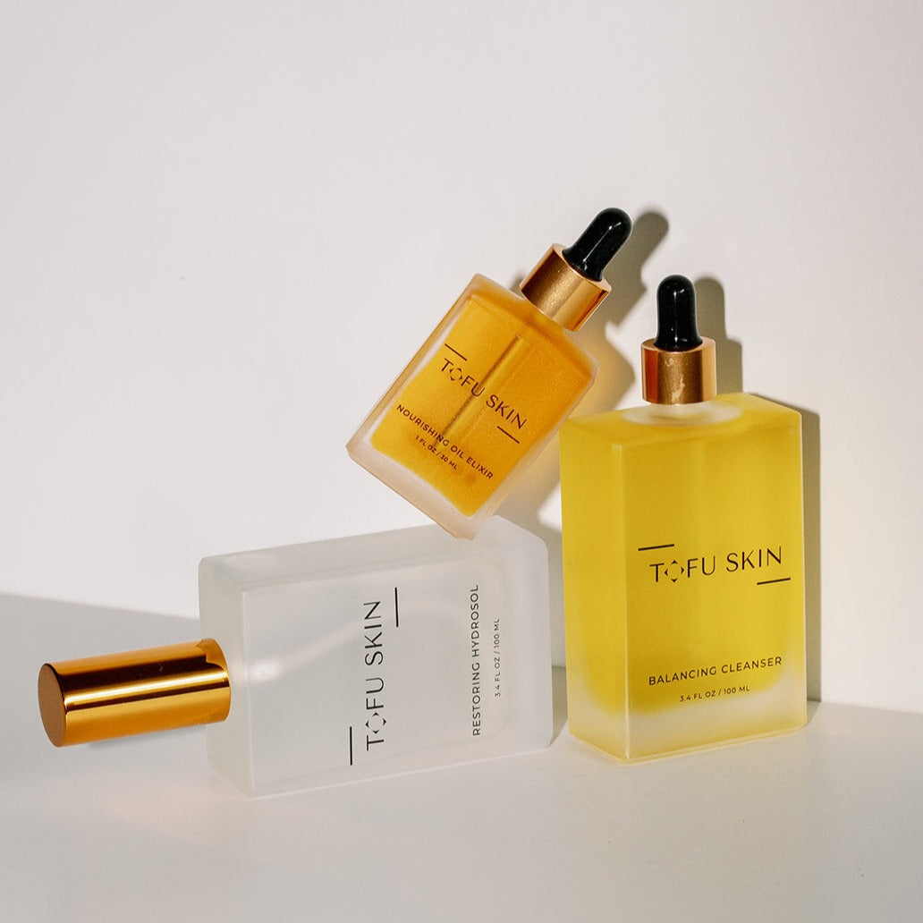 The METHOD SET includes the fundamental products to facilitate your journey through the TOFU SKIN METHOD. Prepare, hydrate, nourish and protect your skin day and night.