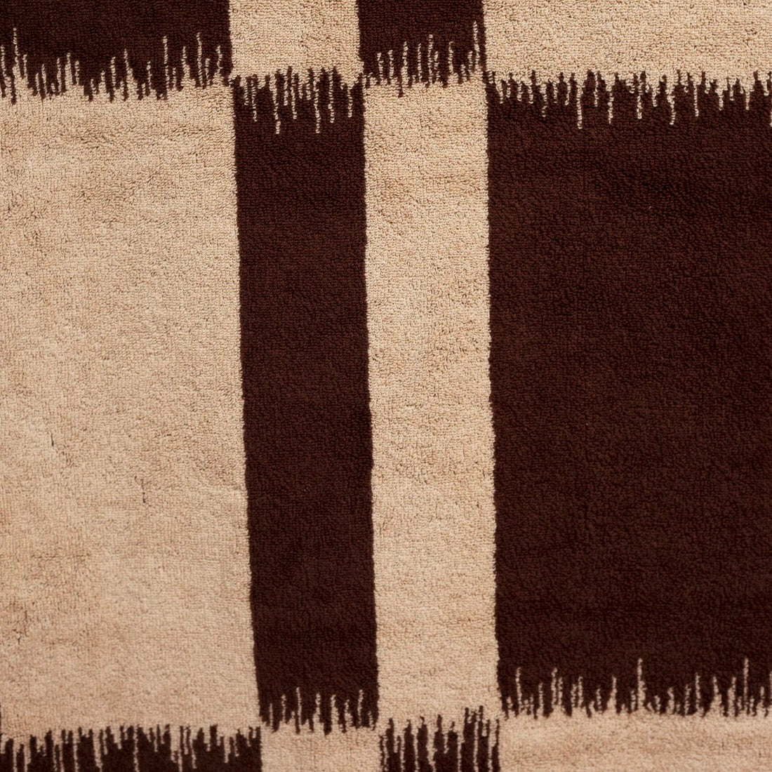 Karin (Walnut & Ecru) — Inspired by traditional Ikat weaving techniques, this ultra-sophisticated bath mat is fully reversible. The artisanal pattern is comprised of two tones in a low-key landscape of walnut and ecru.