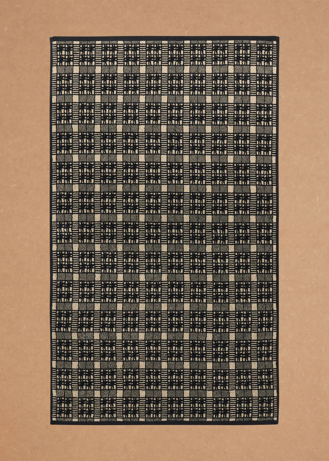 Alma (Black & Ecru) — This two-tone checkered design is inspired by traditional Katazome stencil practices. This fully reversible pattern in black and cream embraces the unpredictable rhythm of daily use — maintaining appeal whatever the fold or drape.