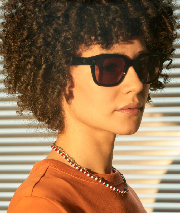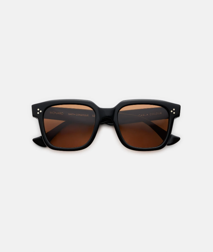 Monaro is Carla Colour’s cool square frame, muscle car shape. These sunglasses come on a square frame made from transparent Italian acetate. The beveled brow smooths out the oversized frame, and thea, lens offers 100% UVA and UVB protection.