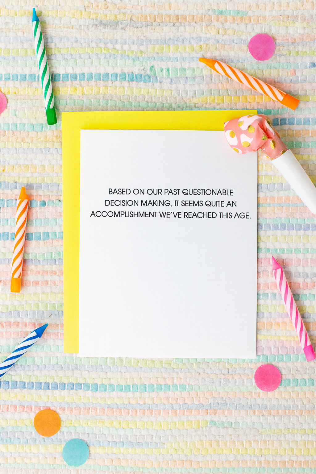 Chez Gagné - Questionable Decision Making, Quite An Accomplishment We Reached This Age - Funny Birthday Card