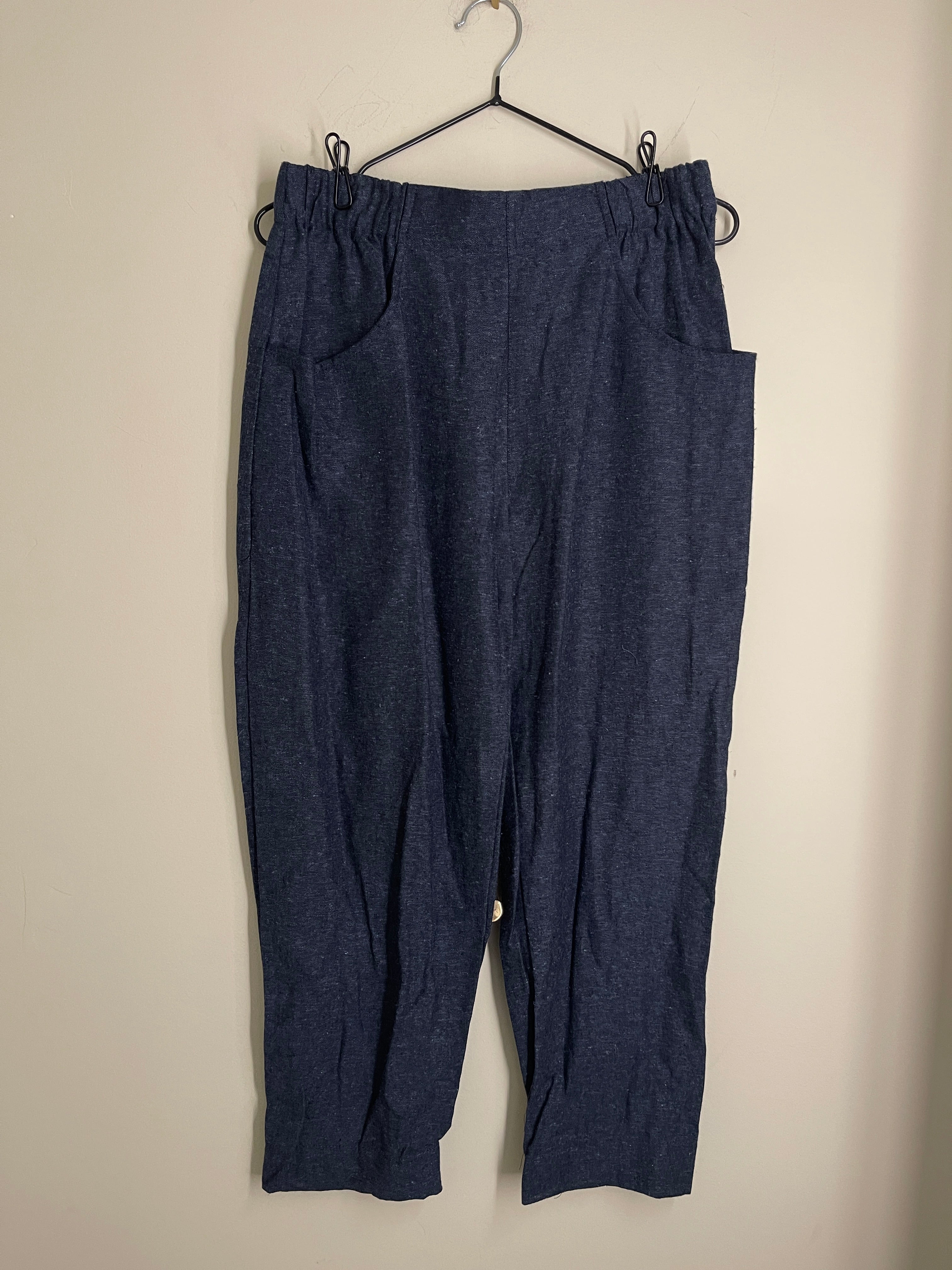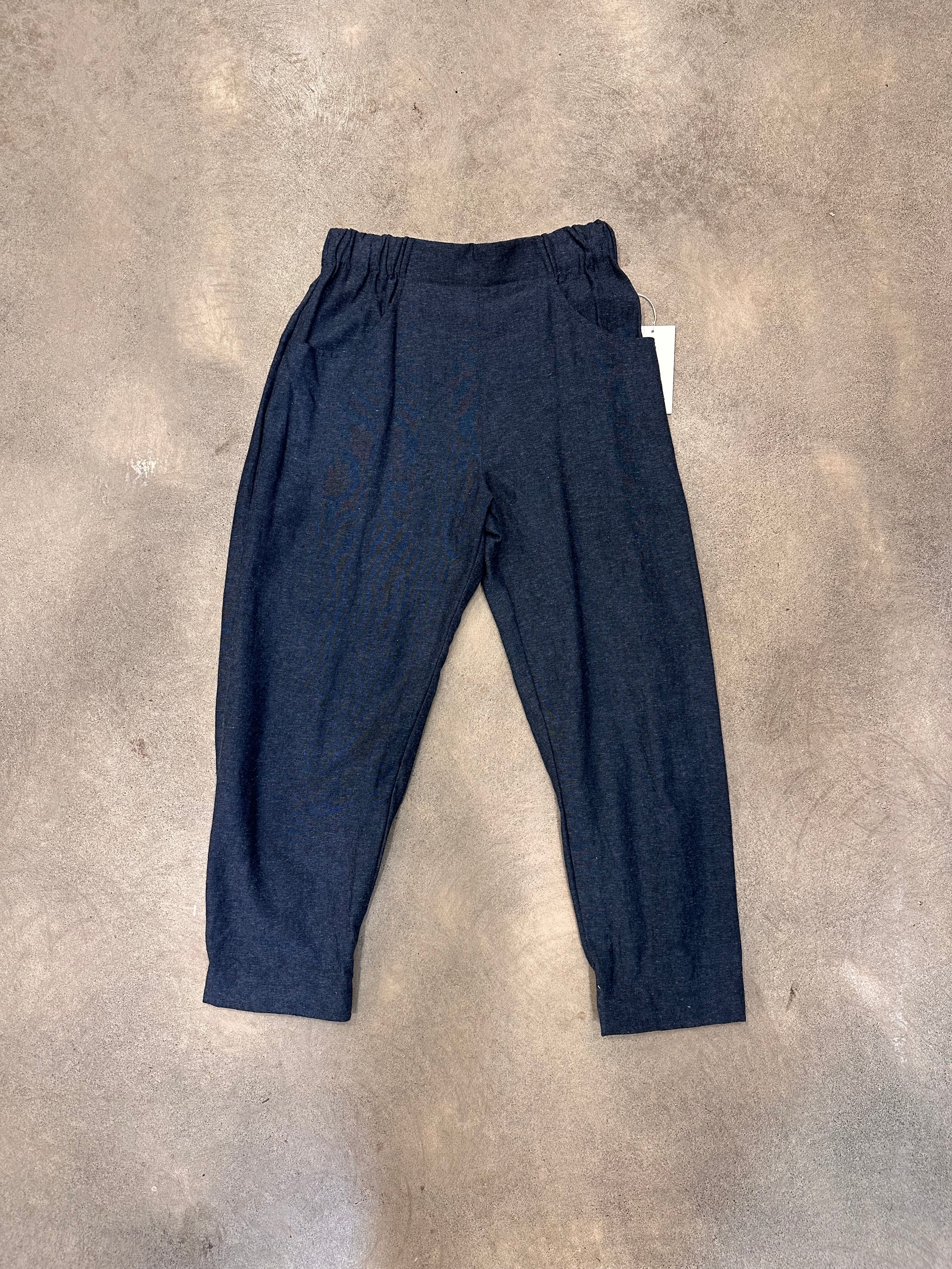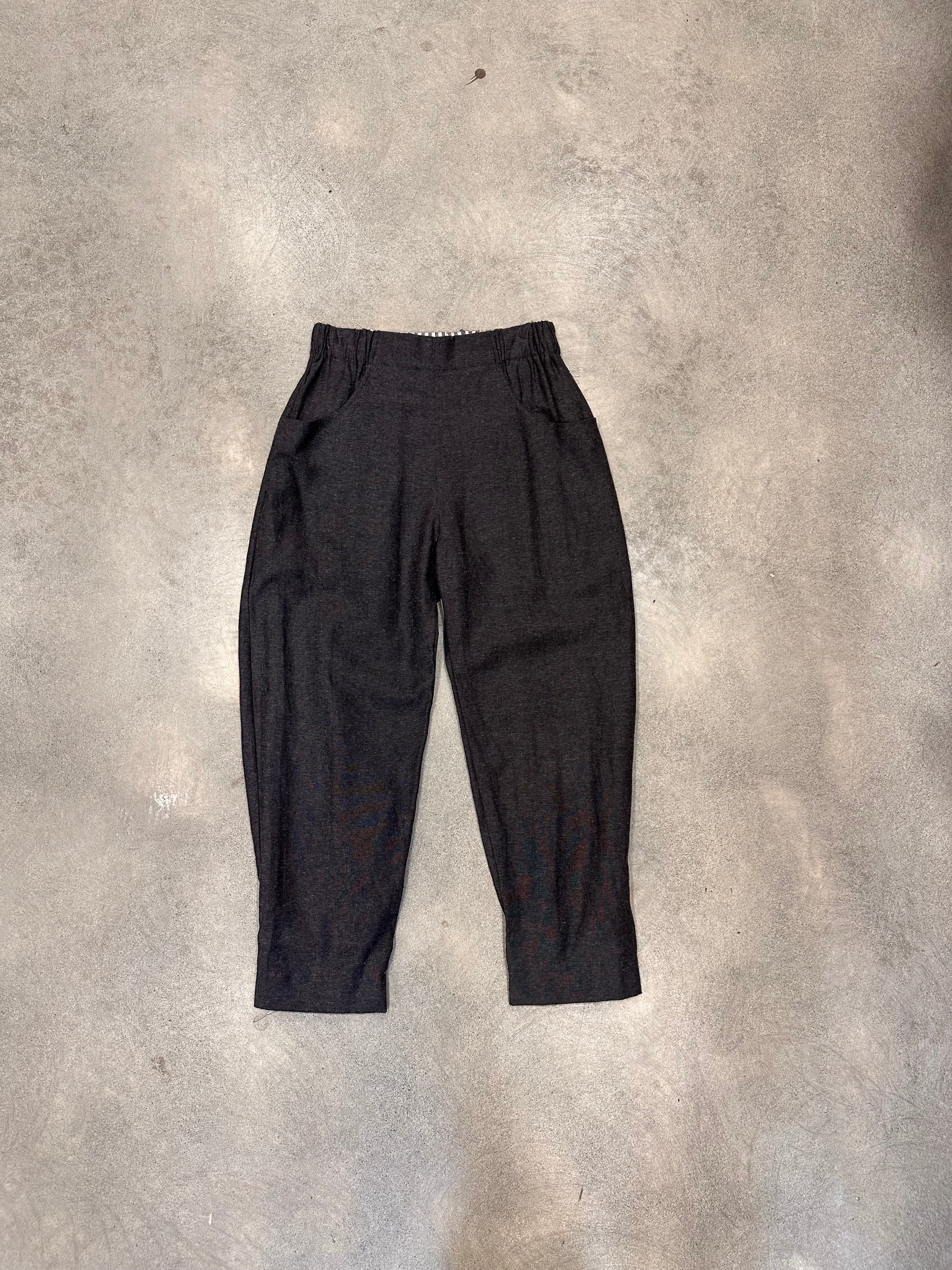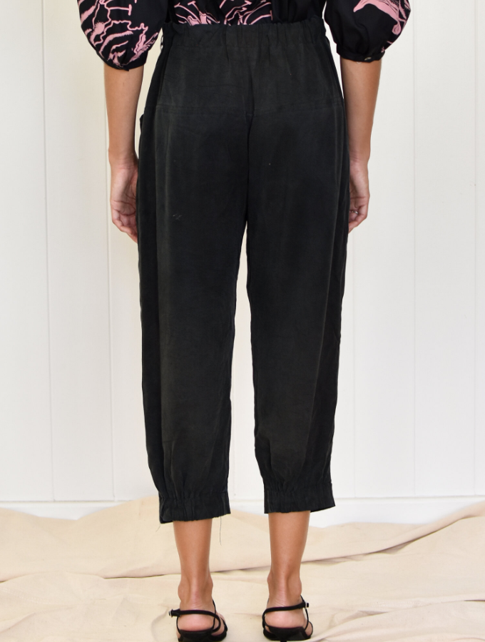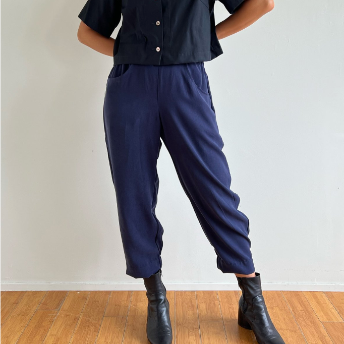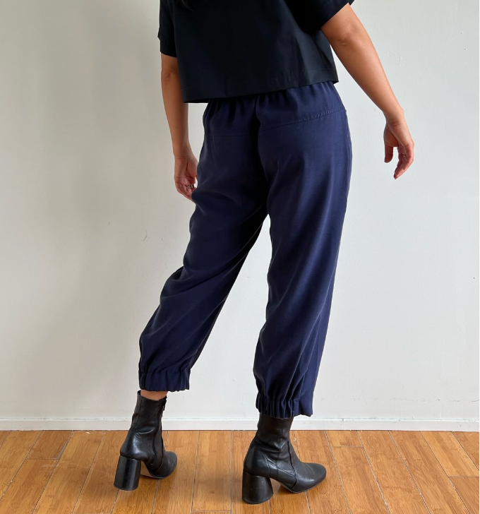 The MAURA is a RM classic that we also call ‘magic pants’. designed for comfort, ease, and functionality. MAURA features an elastic waist, flat front, large scoop front pockets, elastic back hem detail, cropped above ankle length. this style feels like wearing sweat pants yet remains office-appropriate, made to dress up or down.