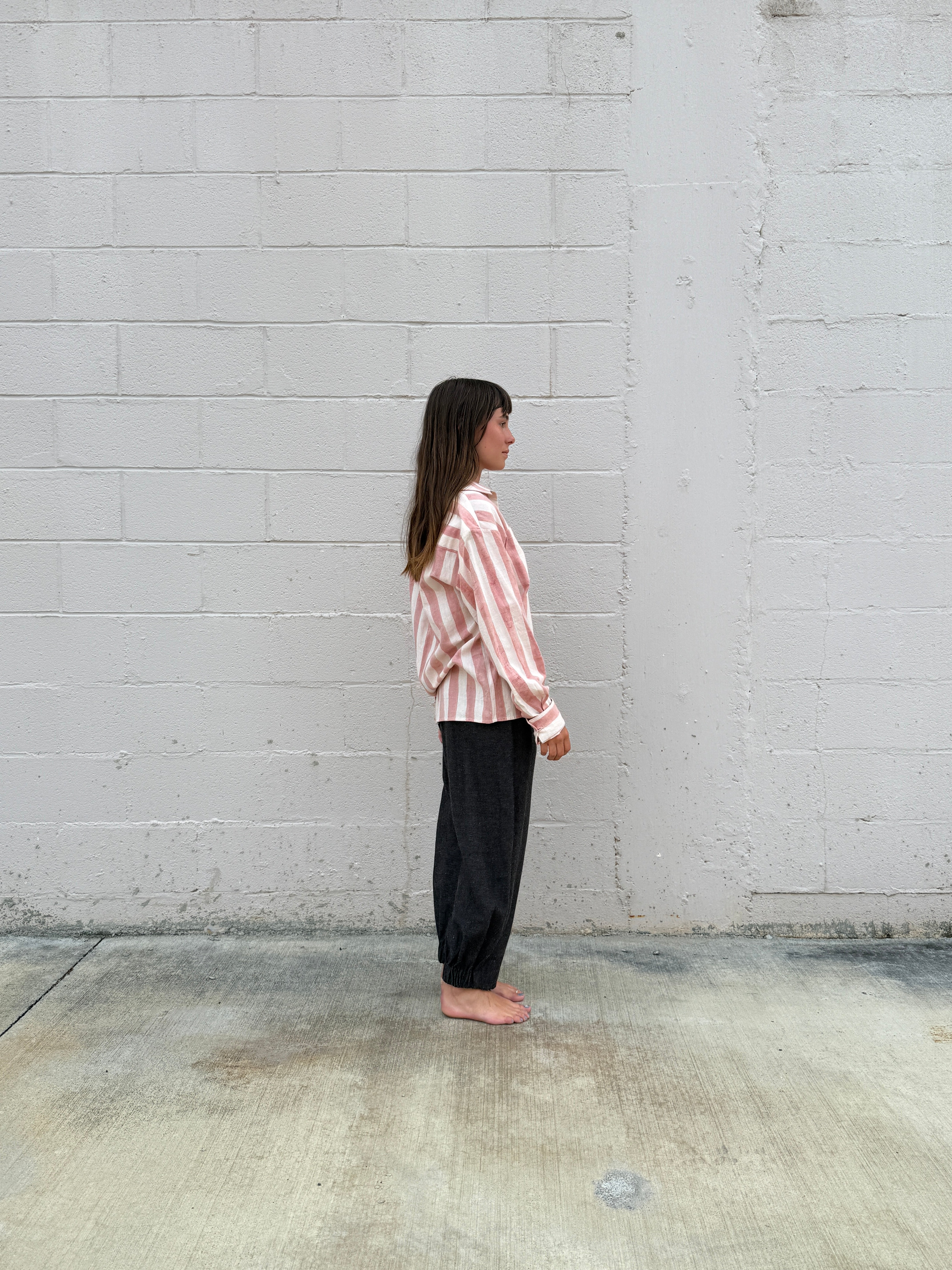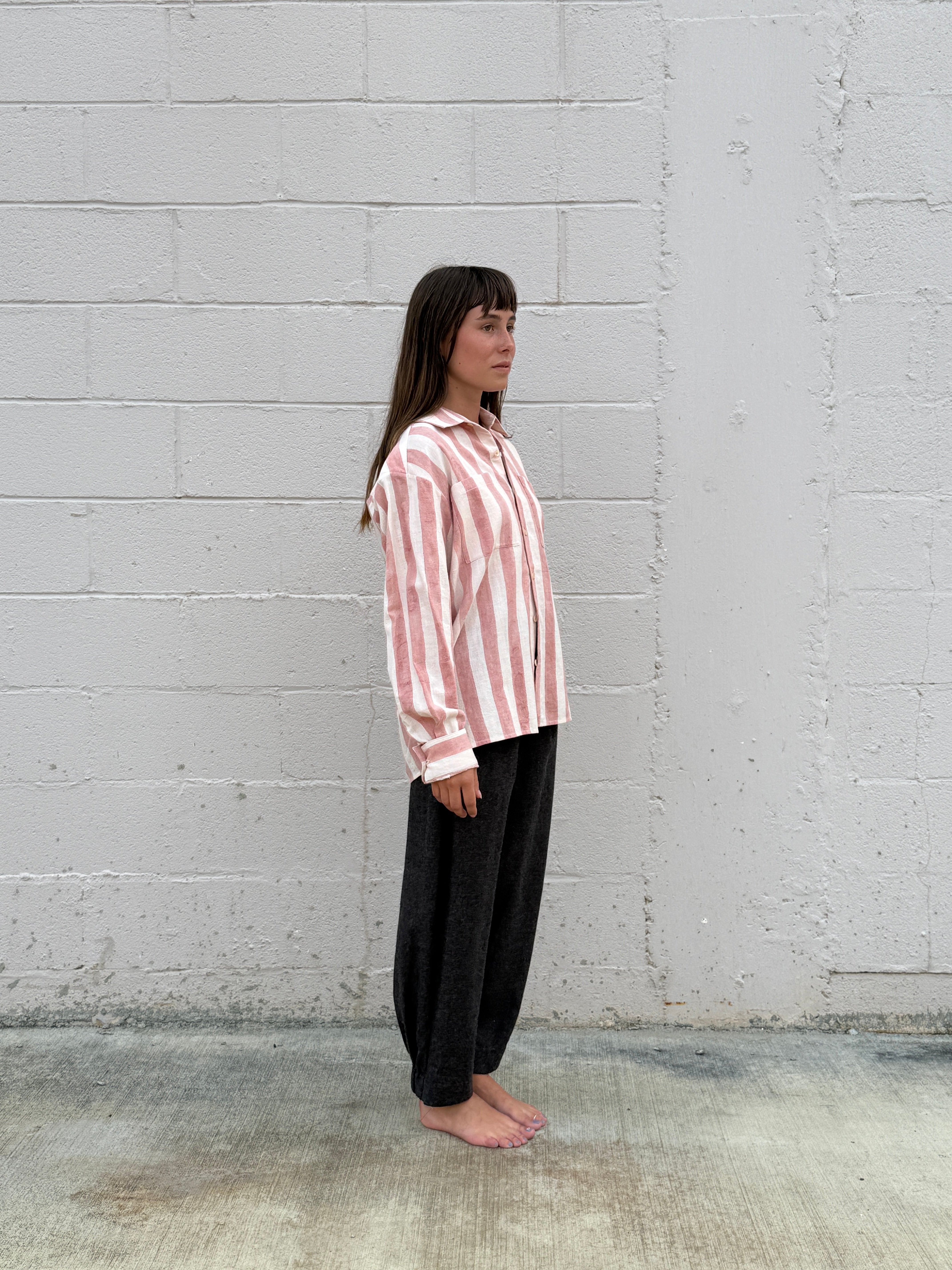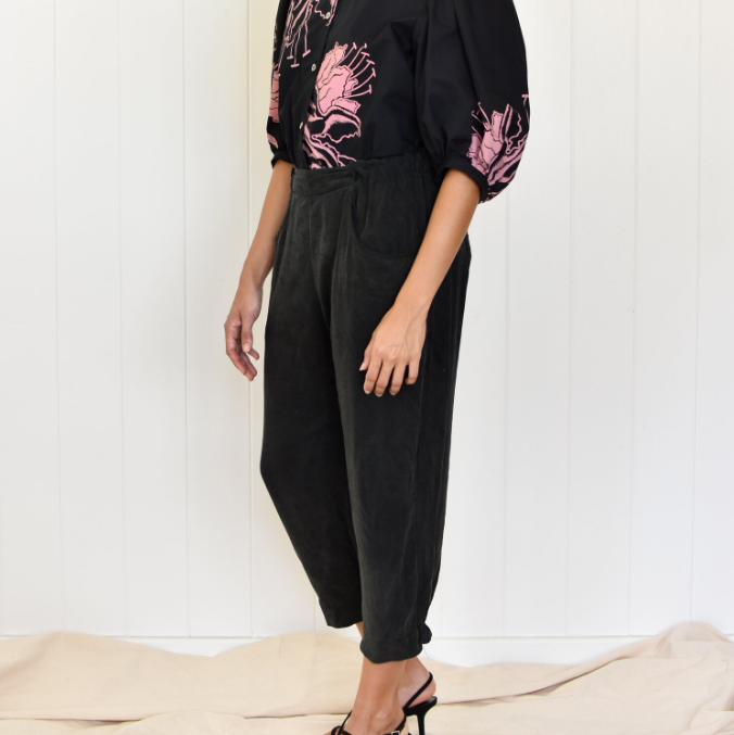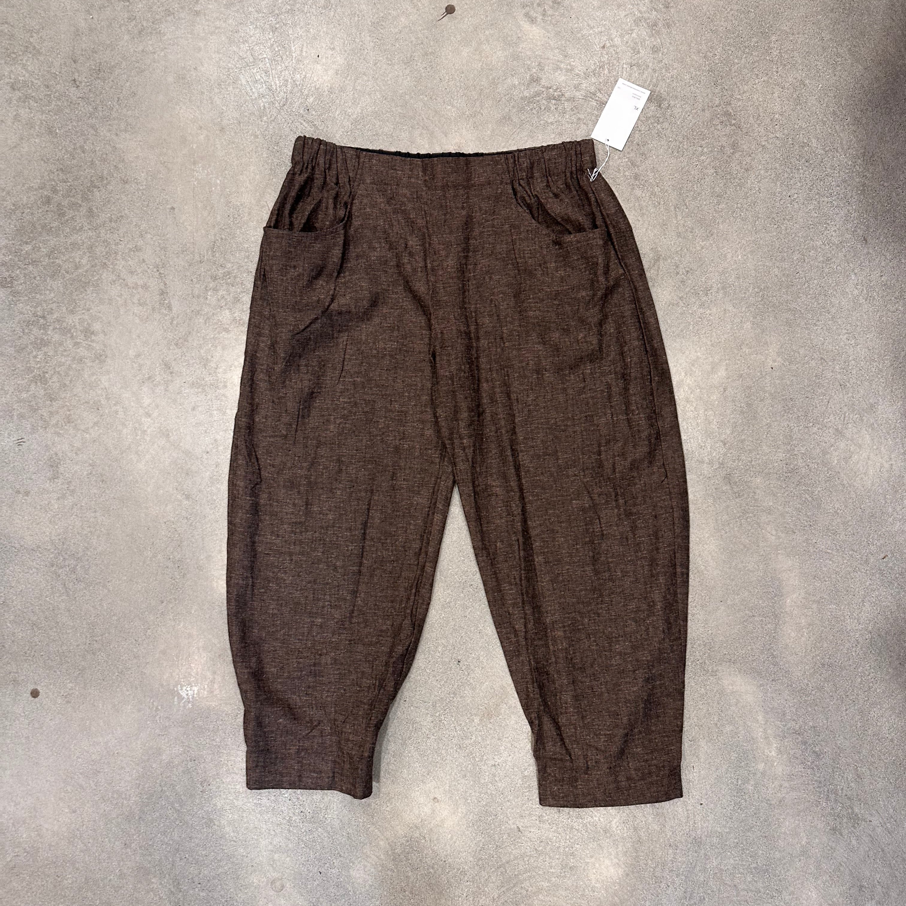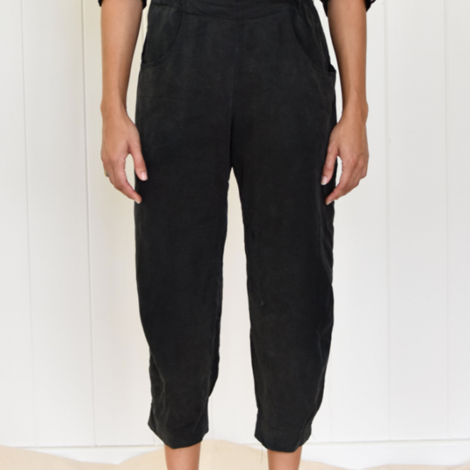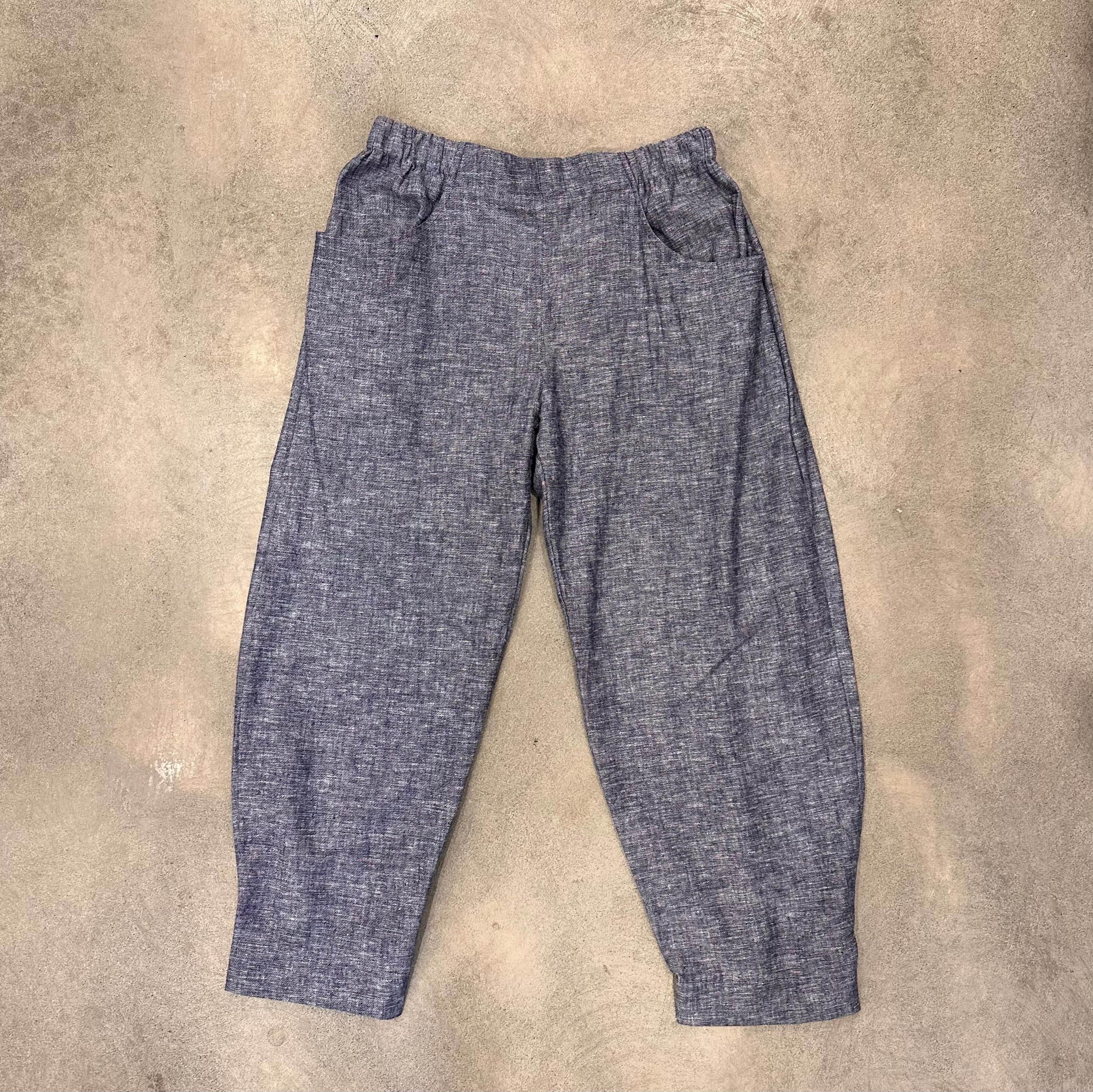 The MAURA is a RM classic that we also call ‘magic pants’. designed for comfort, ease, and functionality. MAURA features an elastic waist, flat front, large scoop front pockets, elastic back hem detail, cropped above ankle length. this style feels like wearing sweat pants yet remains office-appropriate, made to dress up or down.
