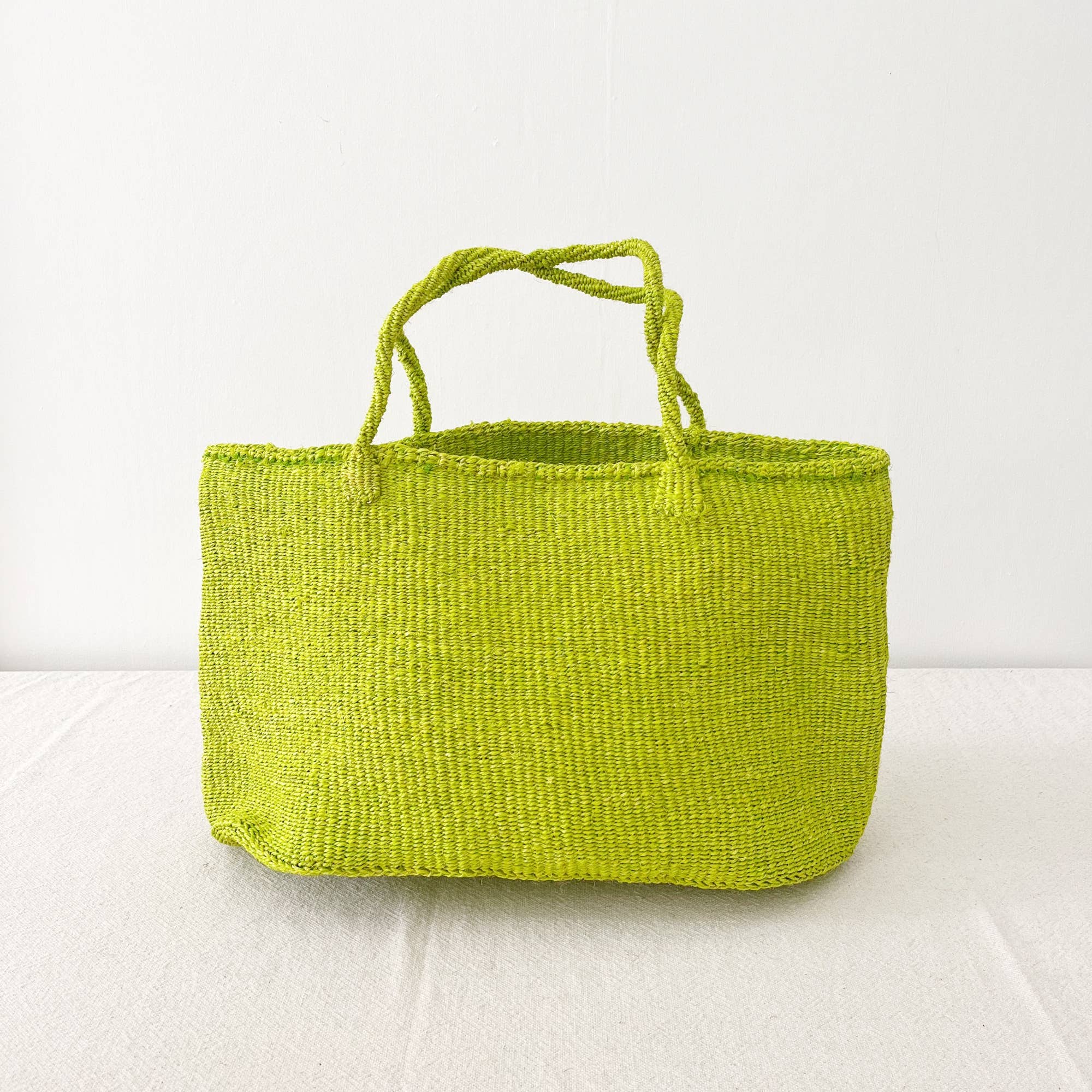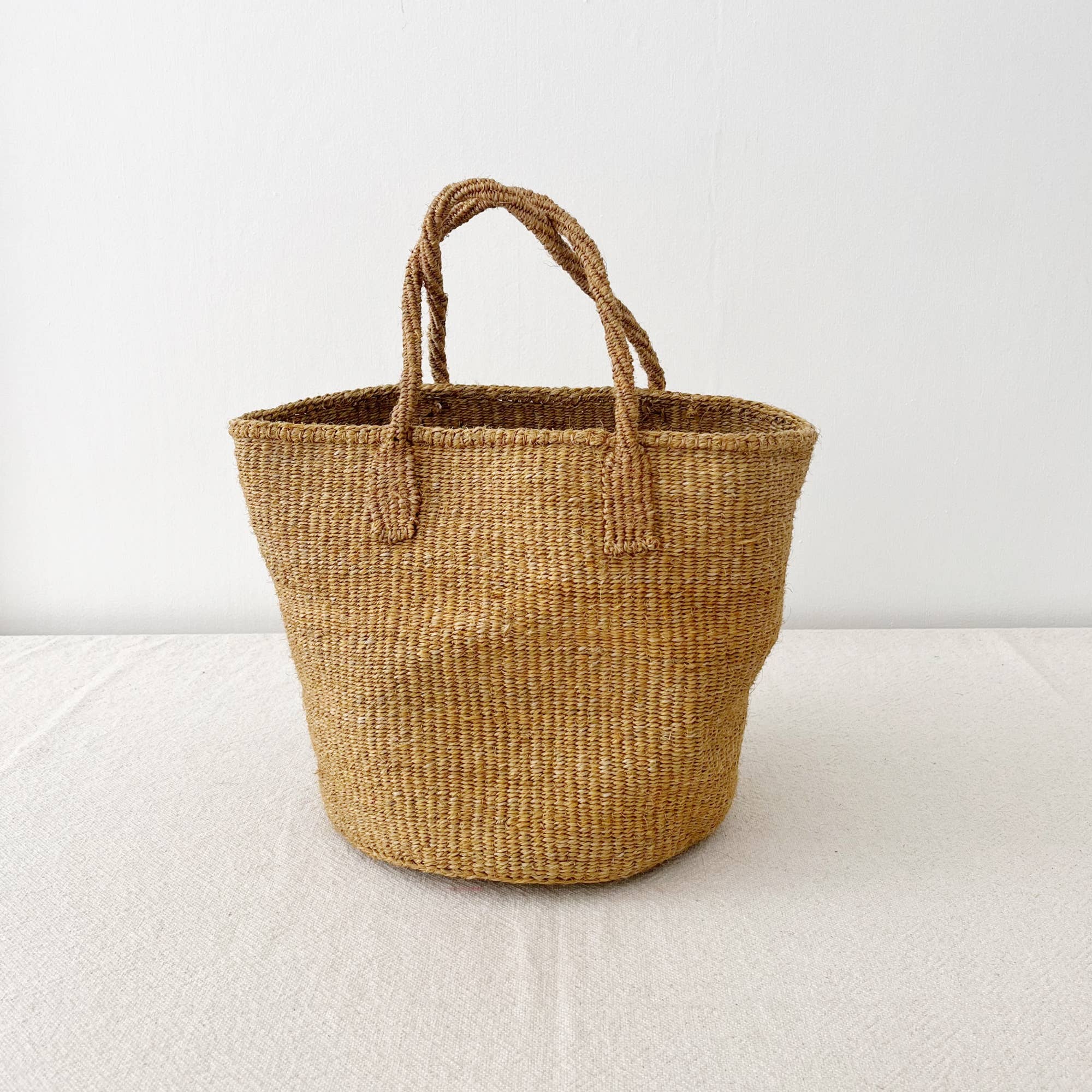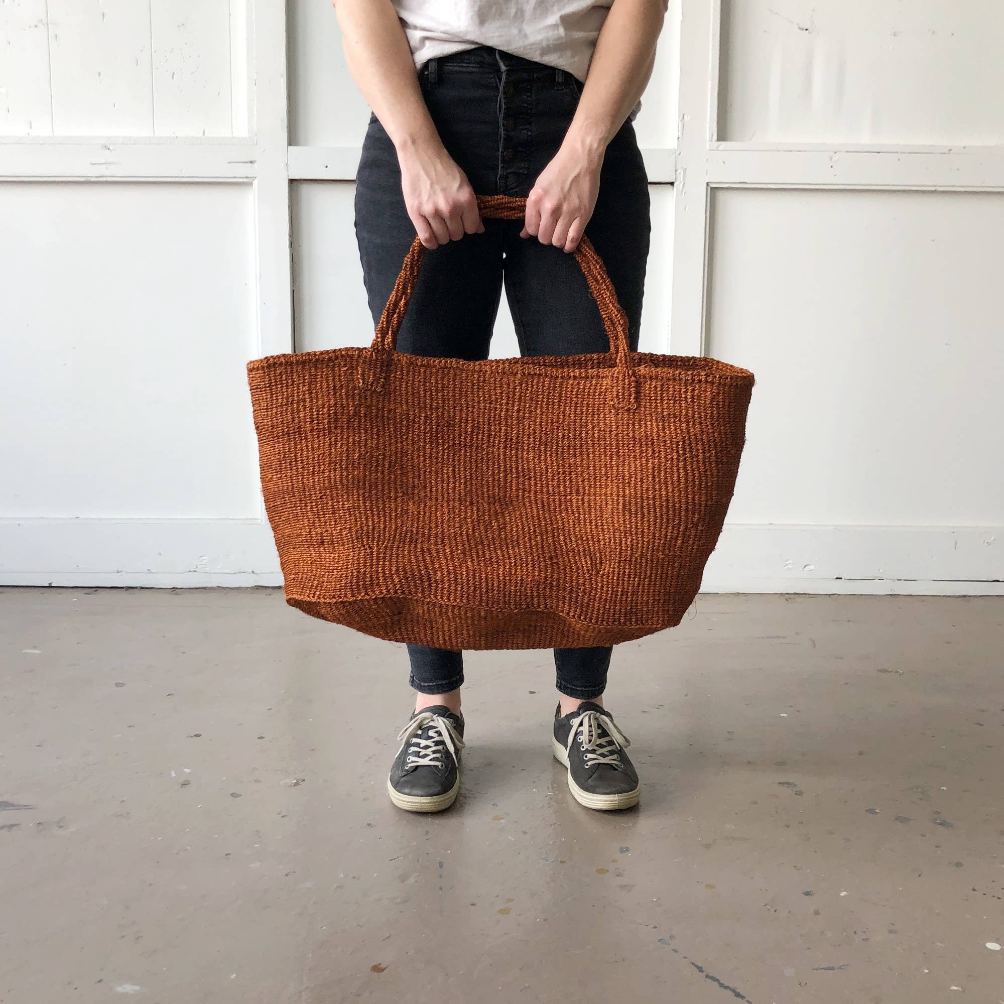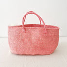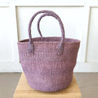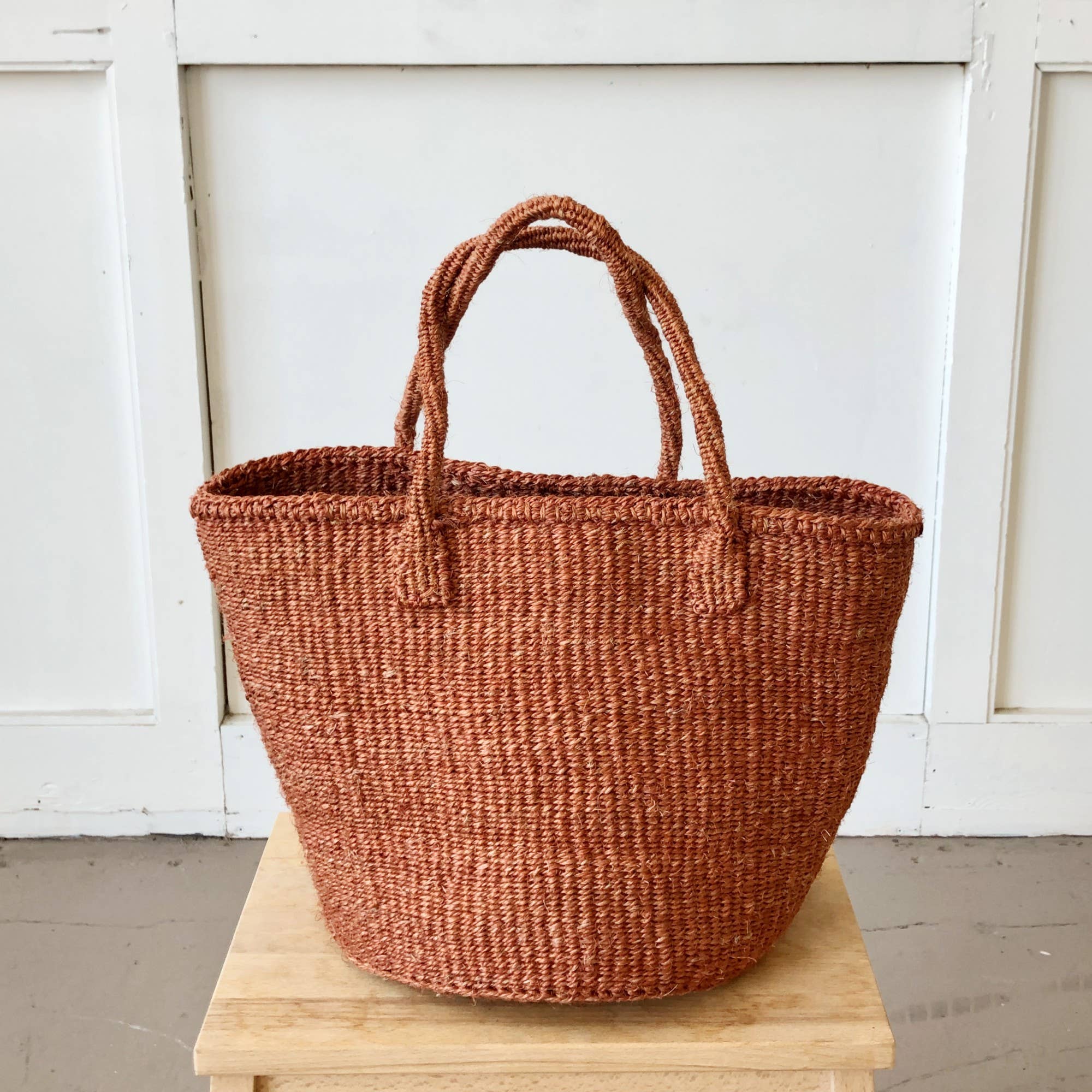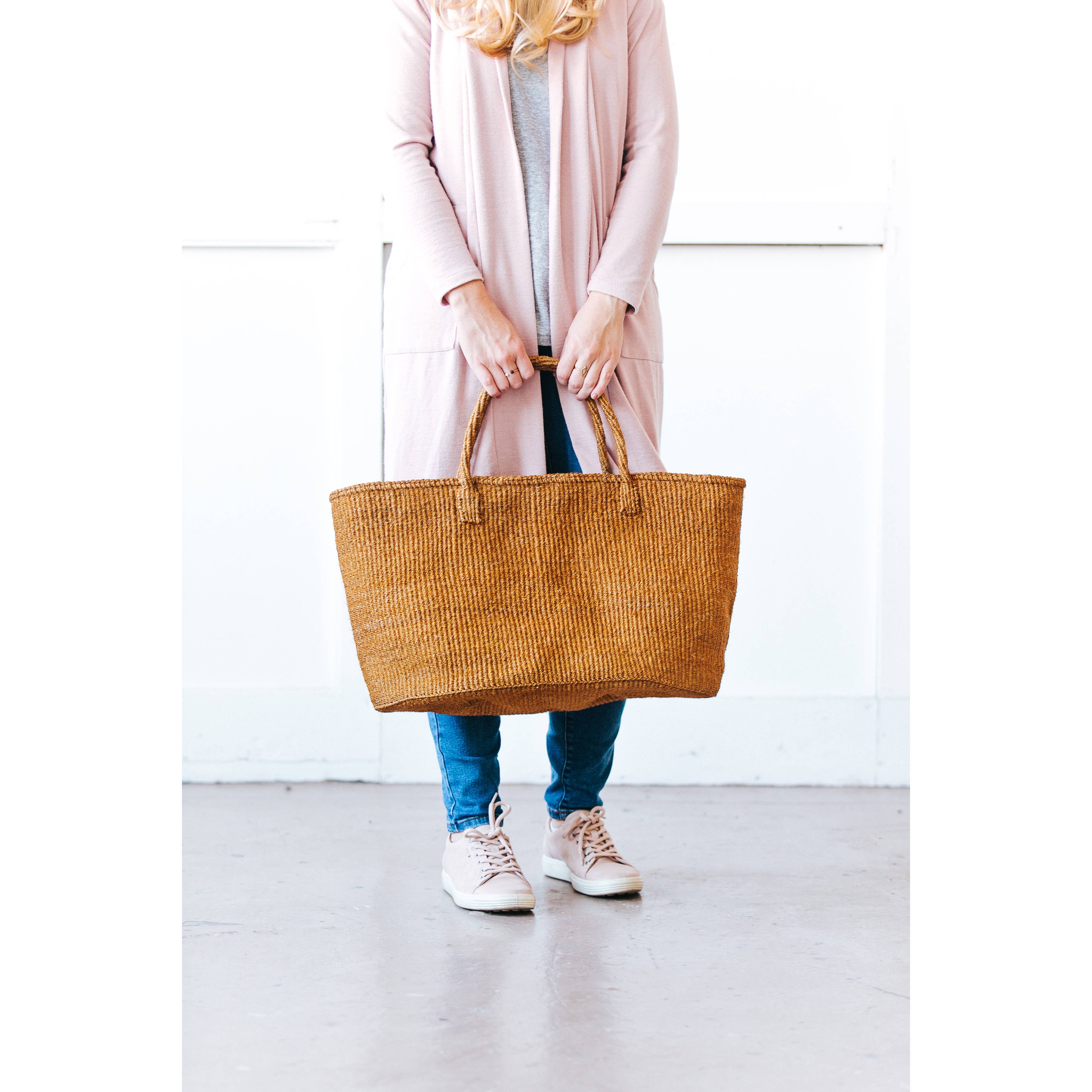 This sisal, woven tote is handmade by a weaving cooperative in southeastern Kenya. The women hand-dye the sisal fibers and weave them into these beautiful works of art. This basket is great as a purse or day tote.