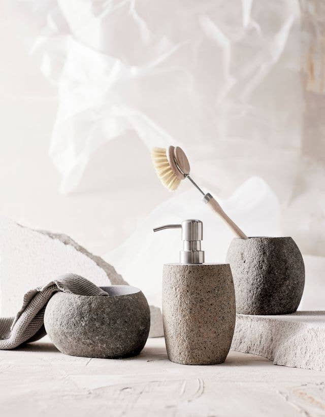 Bowl in riverstone from MUUBS. This stone bowl is handmade in a nature material which means that it can vary in size, shape and color, but this is also what makes it unique. Use the bowl for e.g. soap or for jewelry in the bathroom. It can also be used as a small snack bowl or for serving dip and pesto. The bowl is designed with a raw outer and polished inner