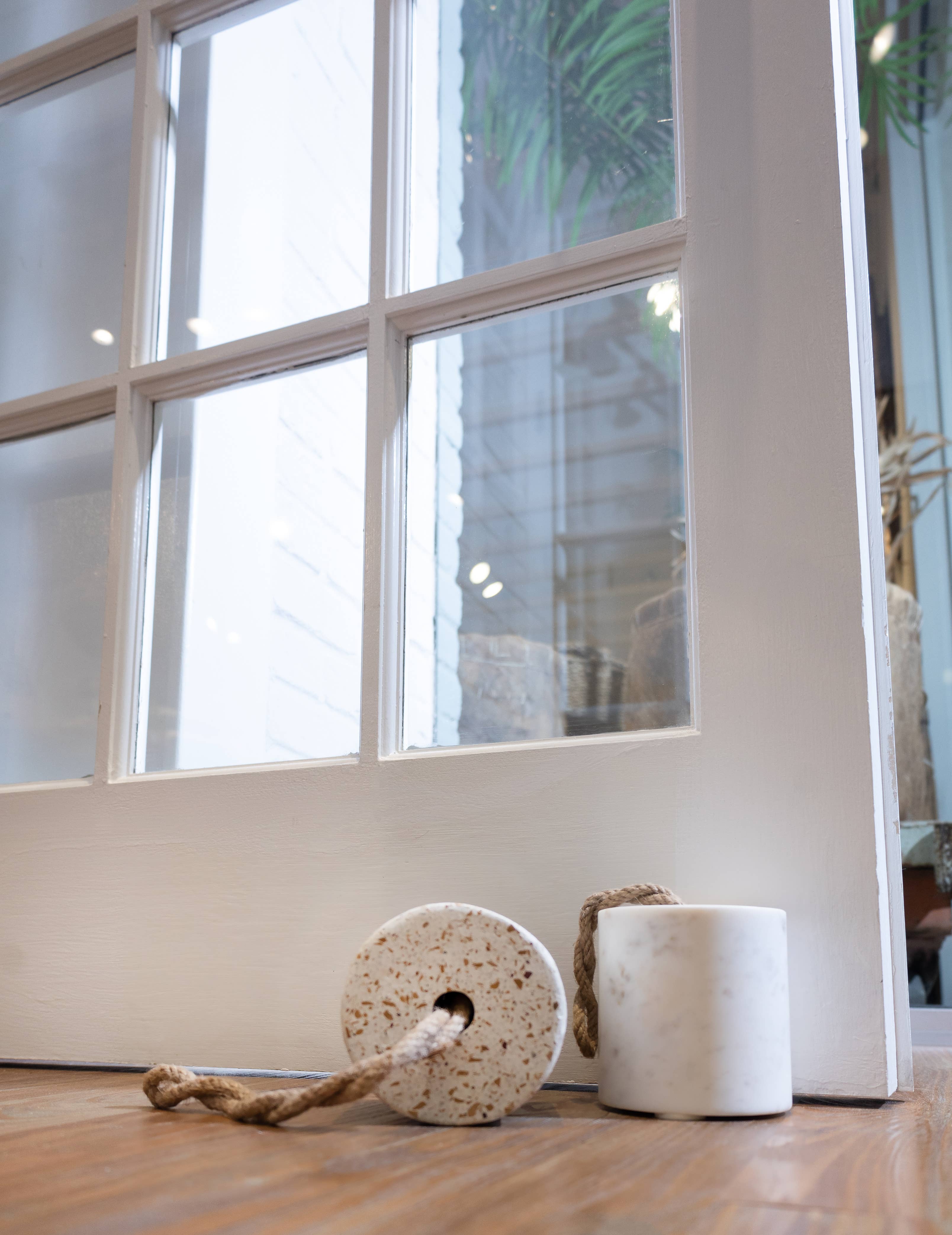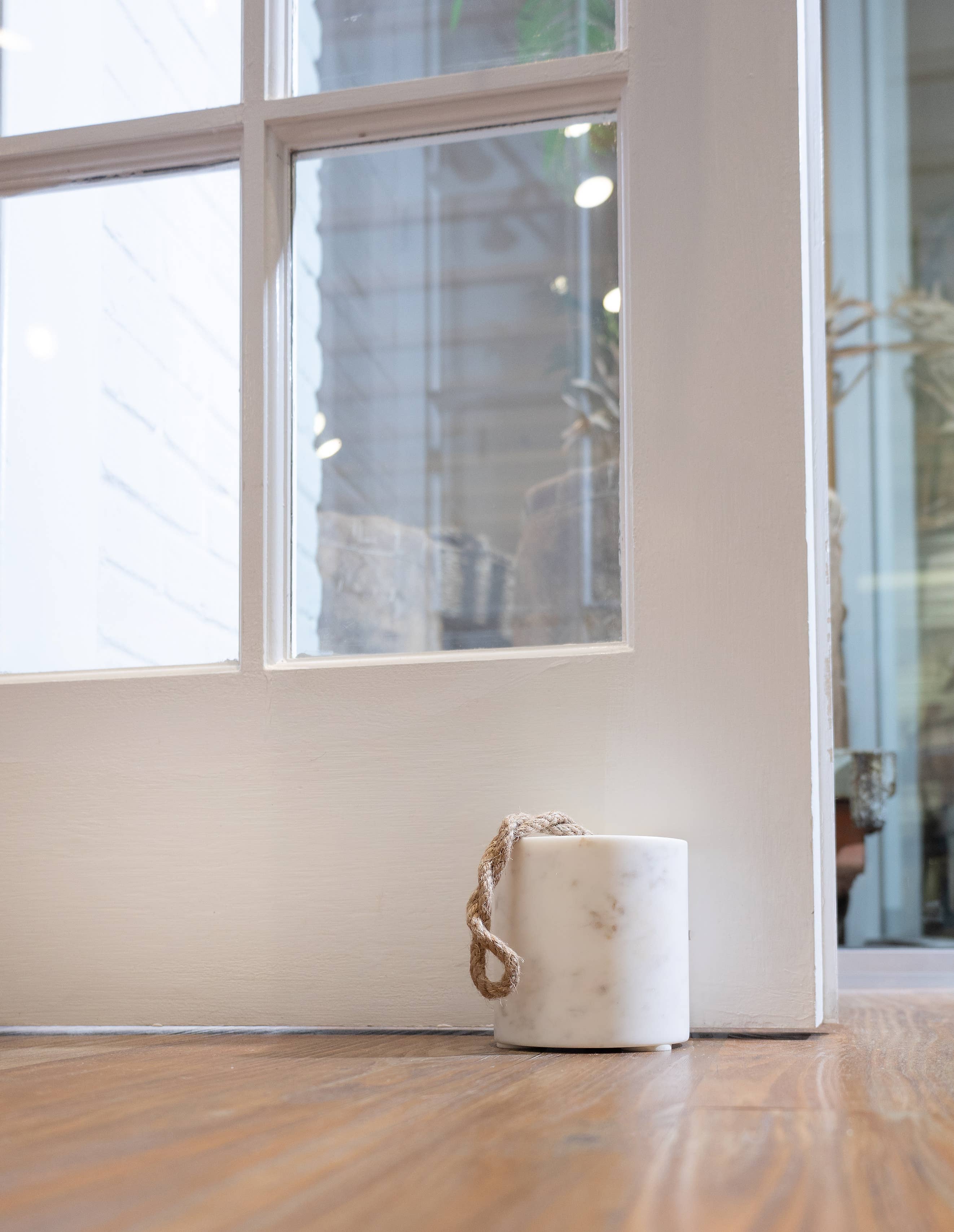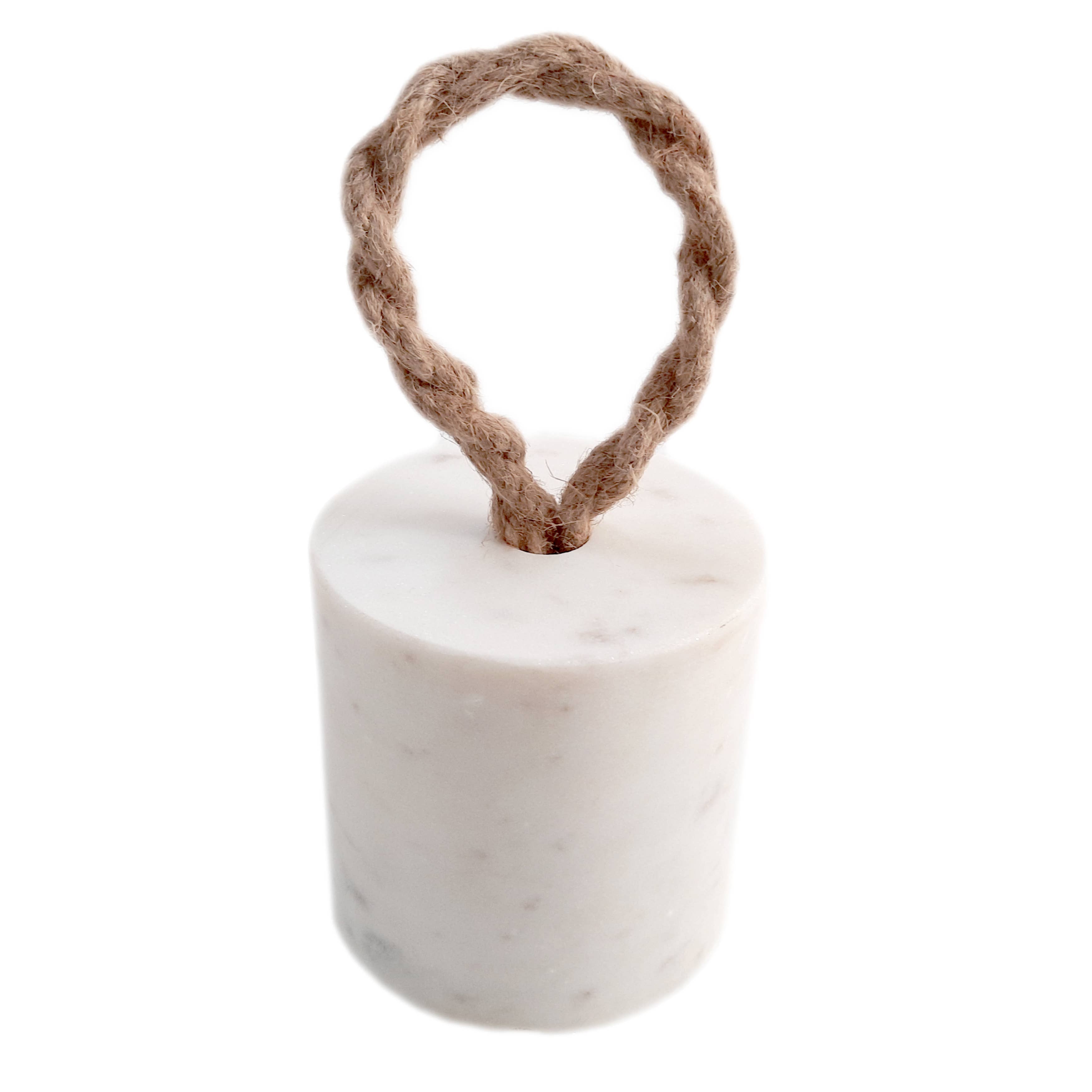 The White Marble Door Stopper with Jute combines elegance and functionality in a minimalist design. Crafted from luxurious white marble, each piece is unique with natural veining patterns that add a touch of sophistication to any room. Its solid and heavy construction ensures effective door stopping power while maintaining a sleek and polished appearance. The addition of jute, a natural fiber, provides a stylish handle that complements the marble's aesthetic and allows for easy repositioning as needed. Ideal for both residential and commercial settings, this door stopper prevents doors from swinging closed, enhancing safety and convenience. Whether used in a modern apartment, traditional home, or upscale office space, it serves as a practical yet elegant accent piece that elevates your interior decor.