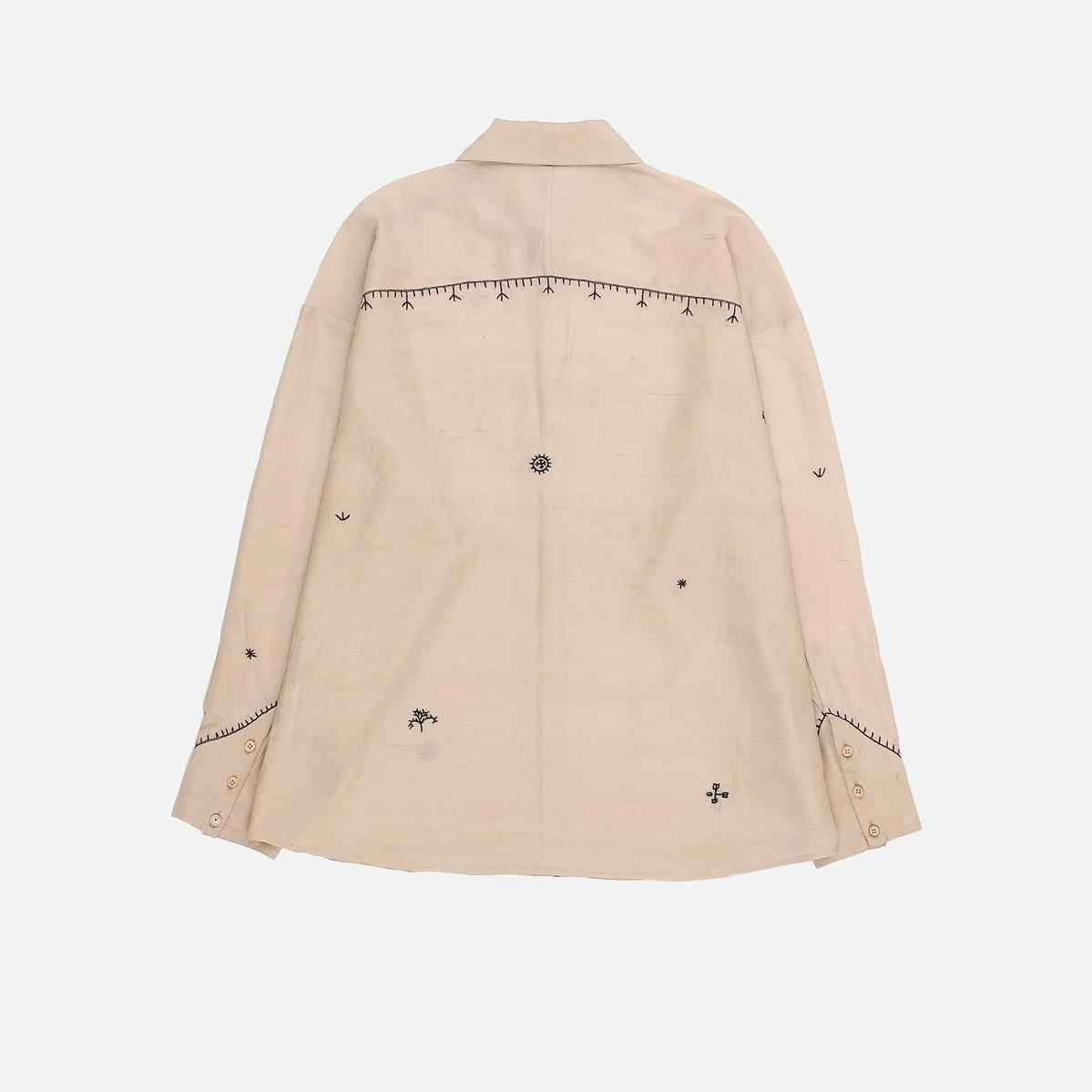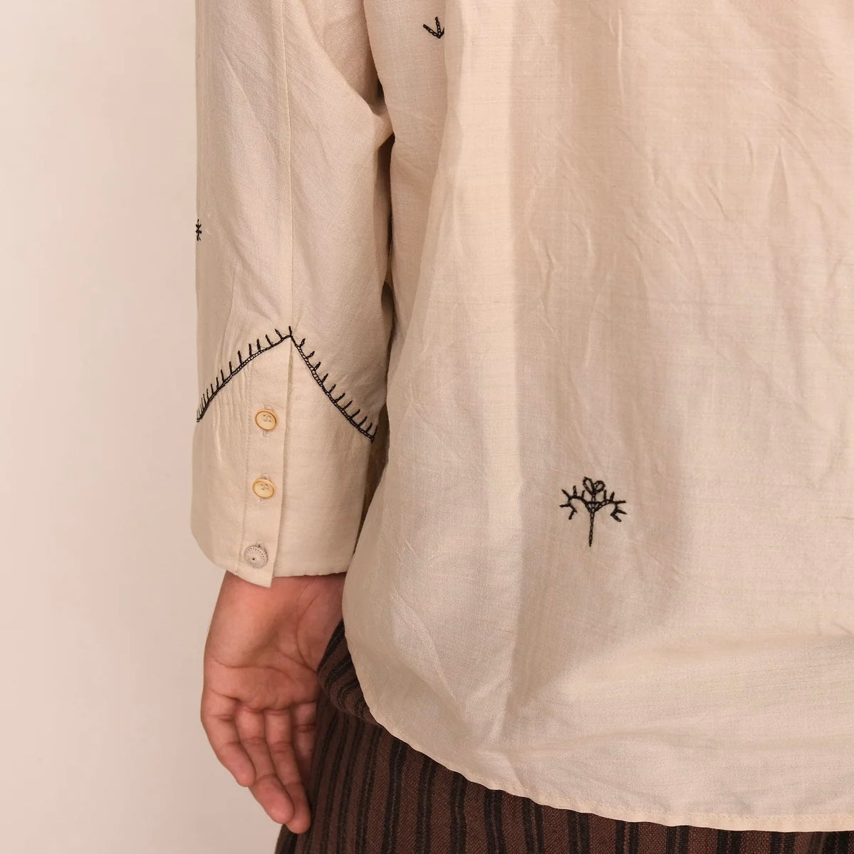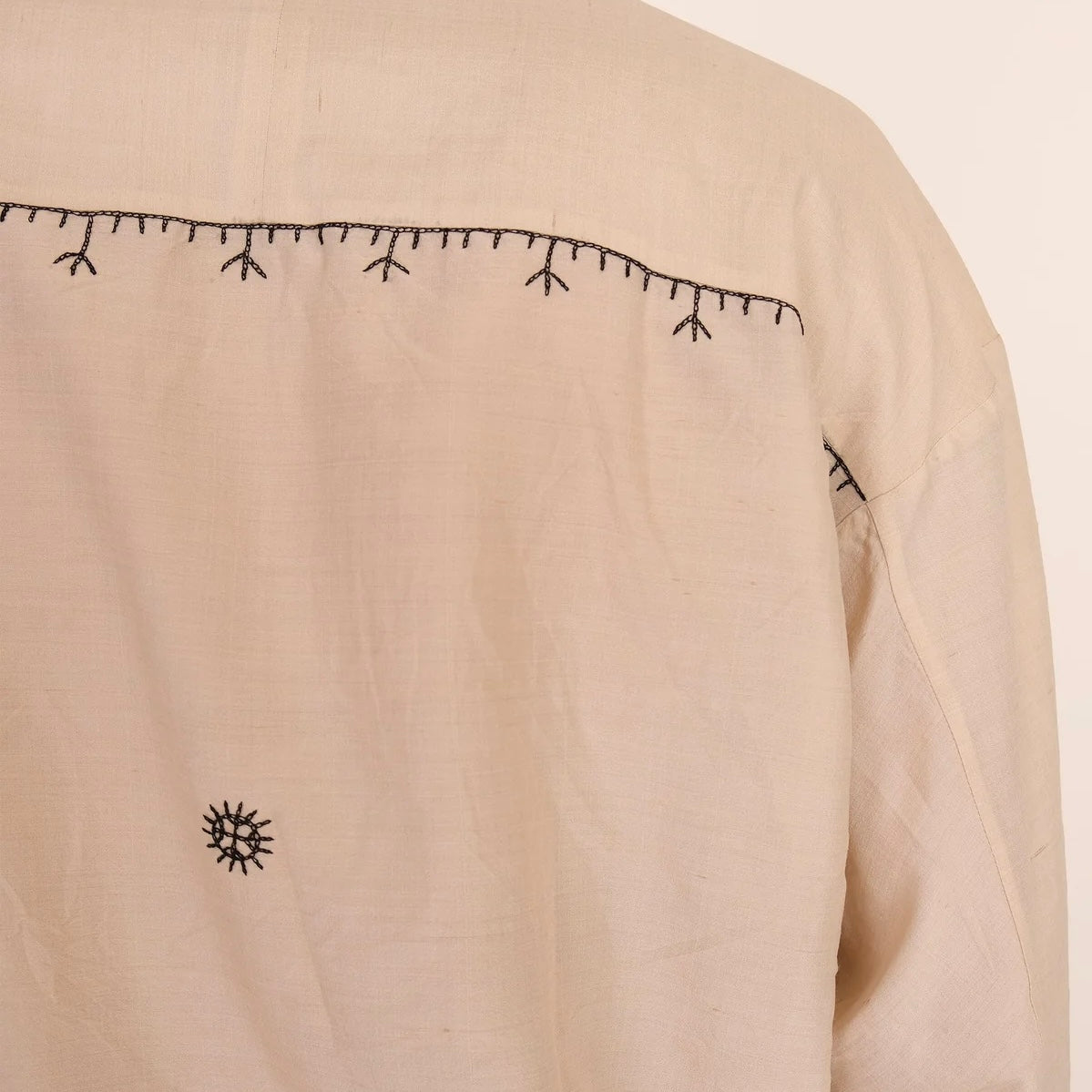 Unisex Crow Ecru Silk & Wool Embroidered Shirt