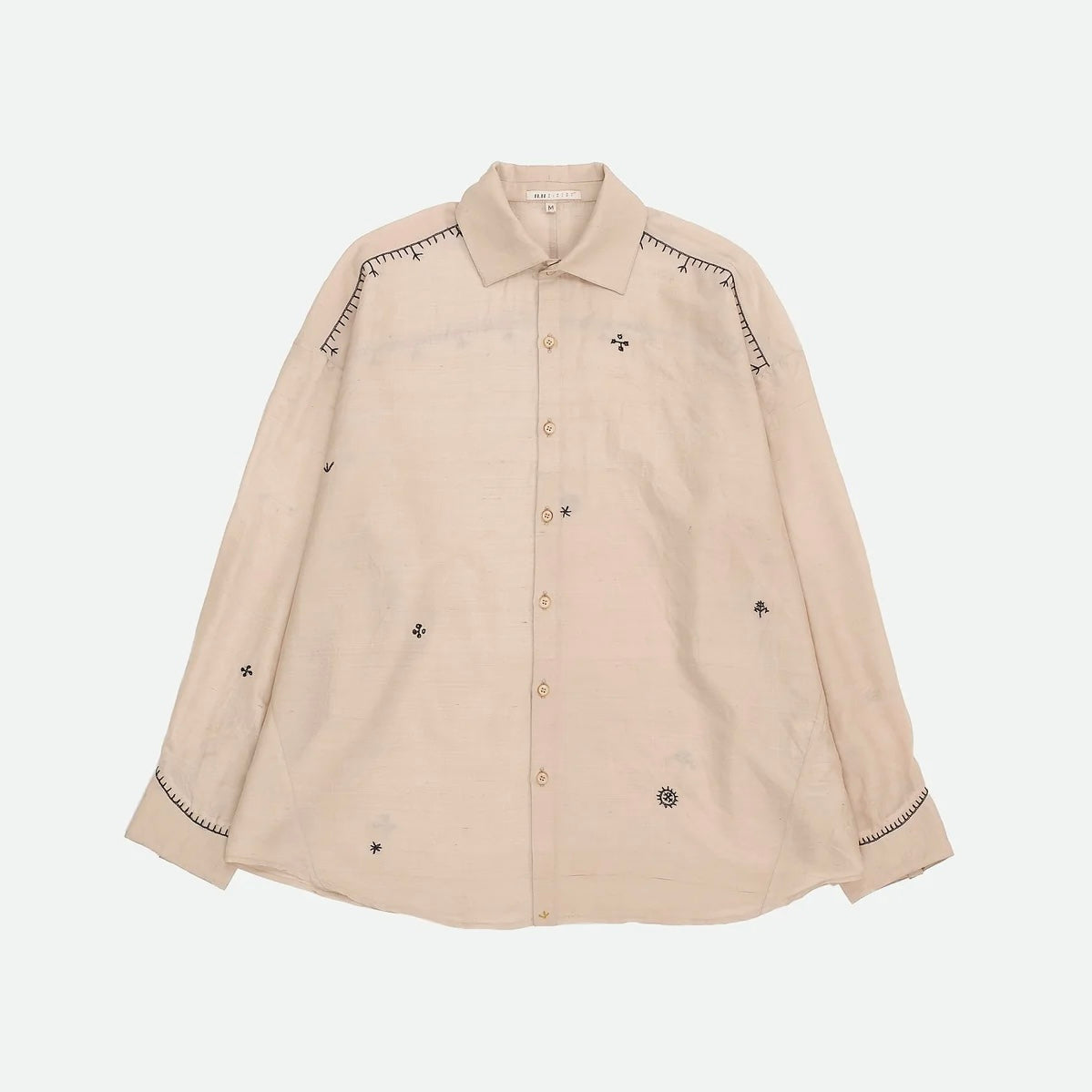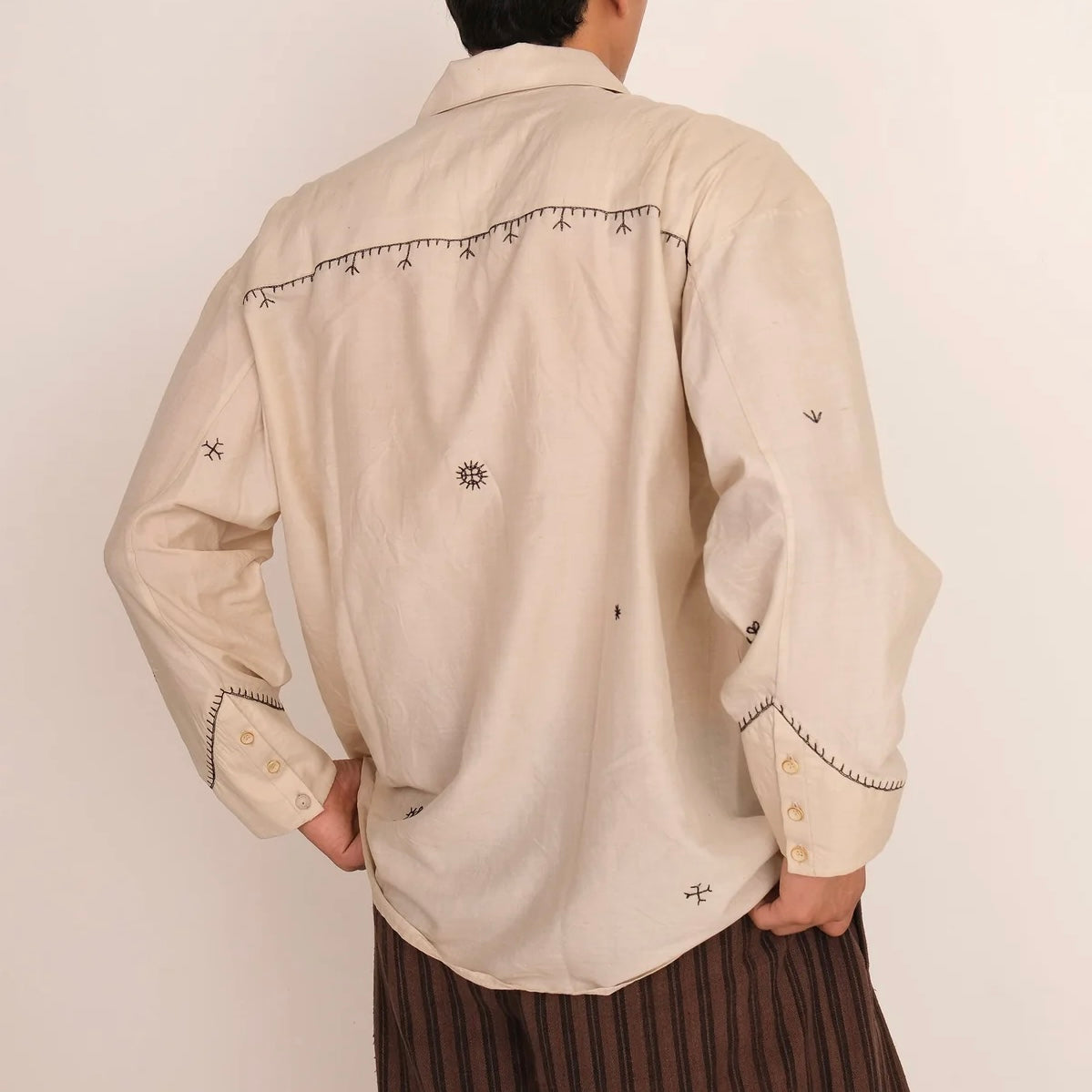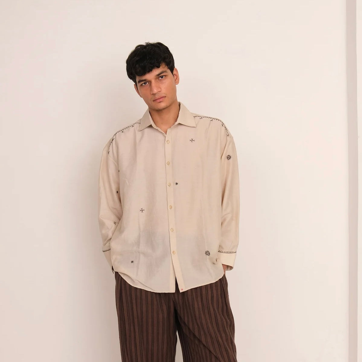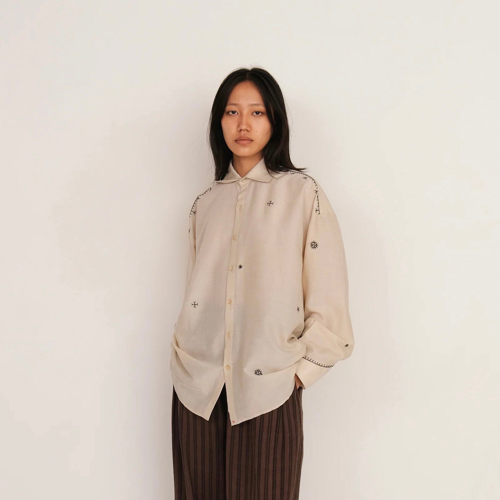 Unisex Crow Ecru Silk & Wool Embroidered Shirt