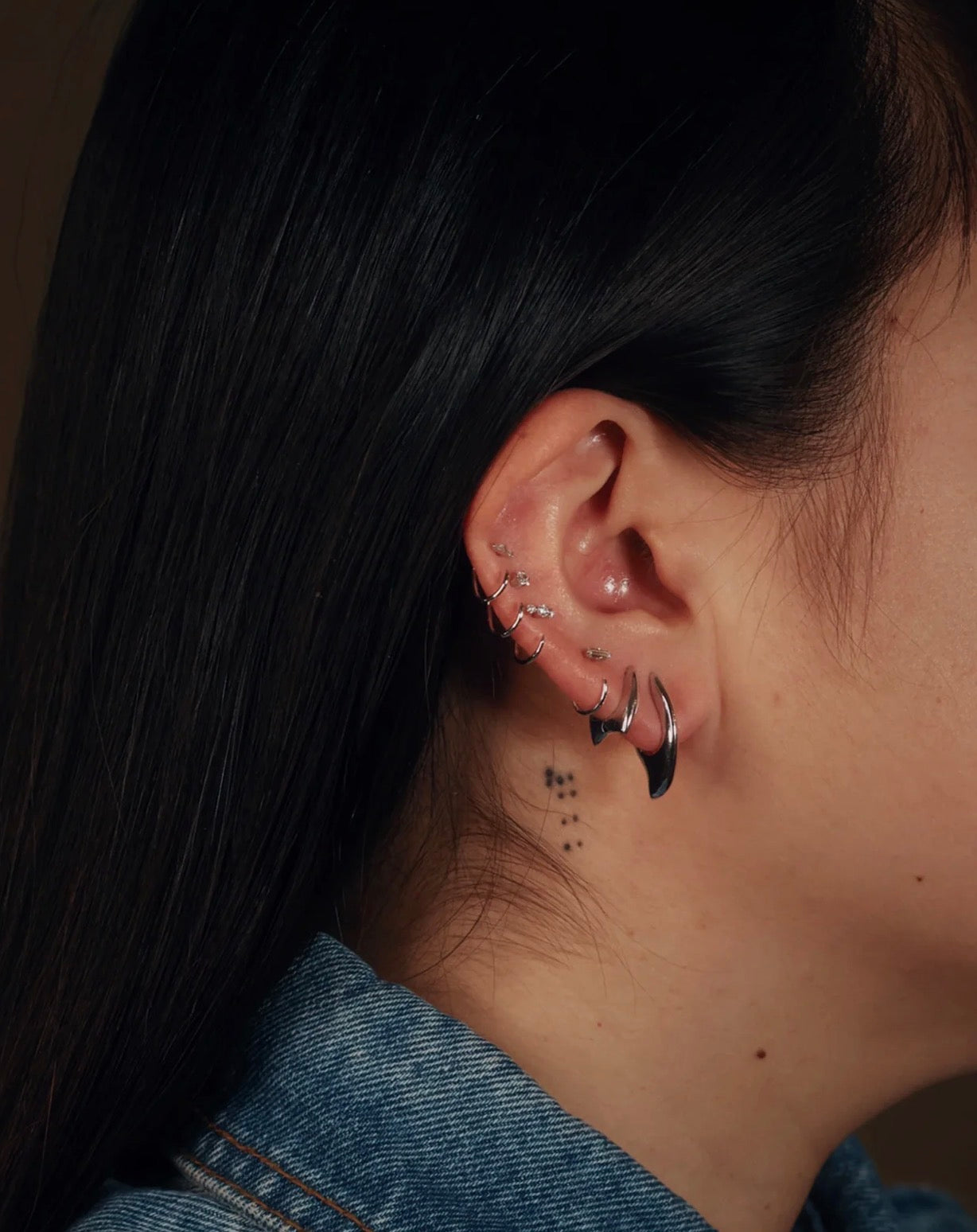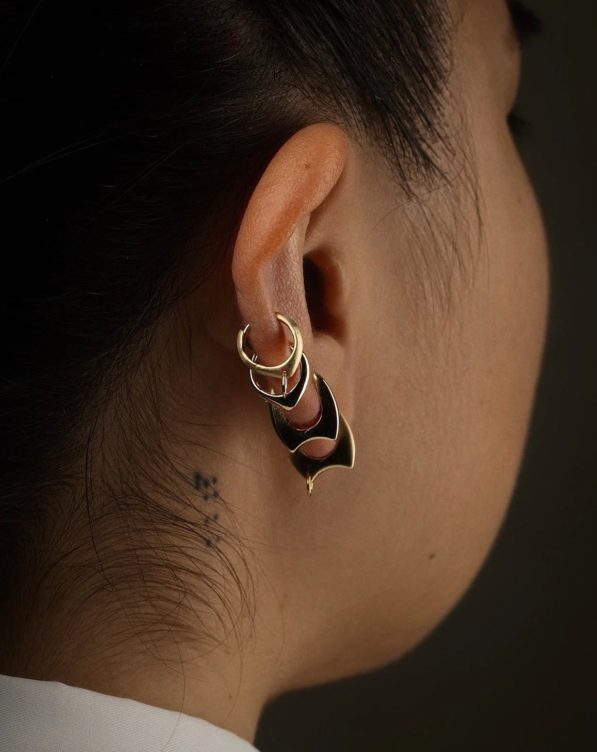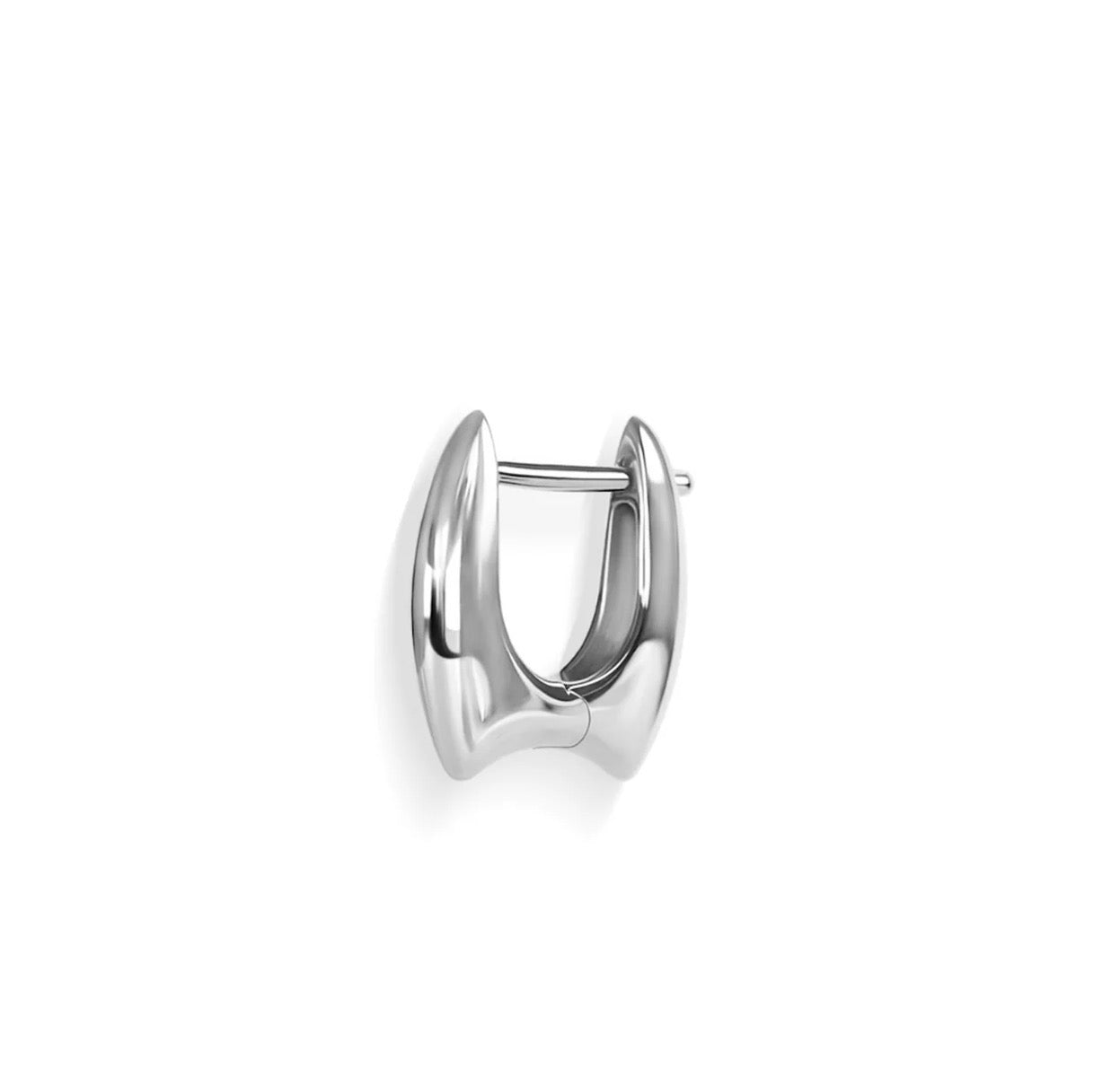The Debaser Hoop, Fluid is polished to a mirror-like shine, giving it a futuristic, sci-fi feel. When stacked, each shape flows into the next like liquid metal.