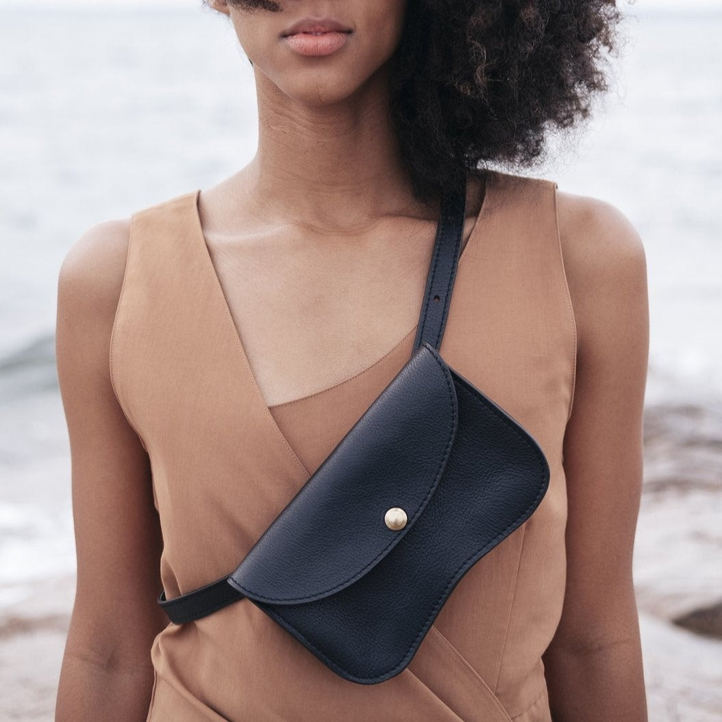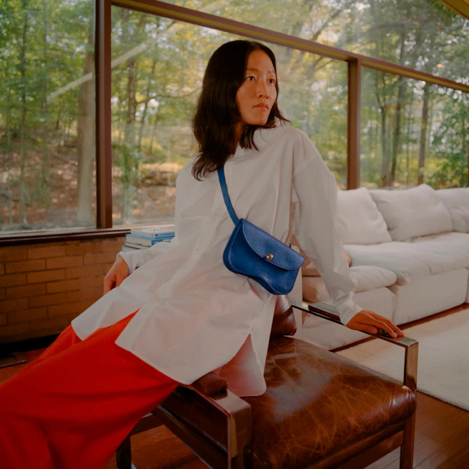 Our bag is as fresh and versatile as its namesake, and can be worn either on the waist or across the chest. The Faba features a brass pull release closure, and has an interior partition and credit card pocket with our signature curve to organize your essentials. It is lithe and light enough to accompany you everywhere.