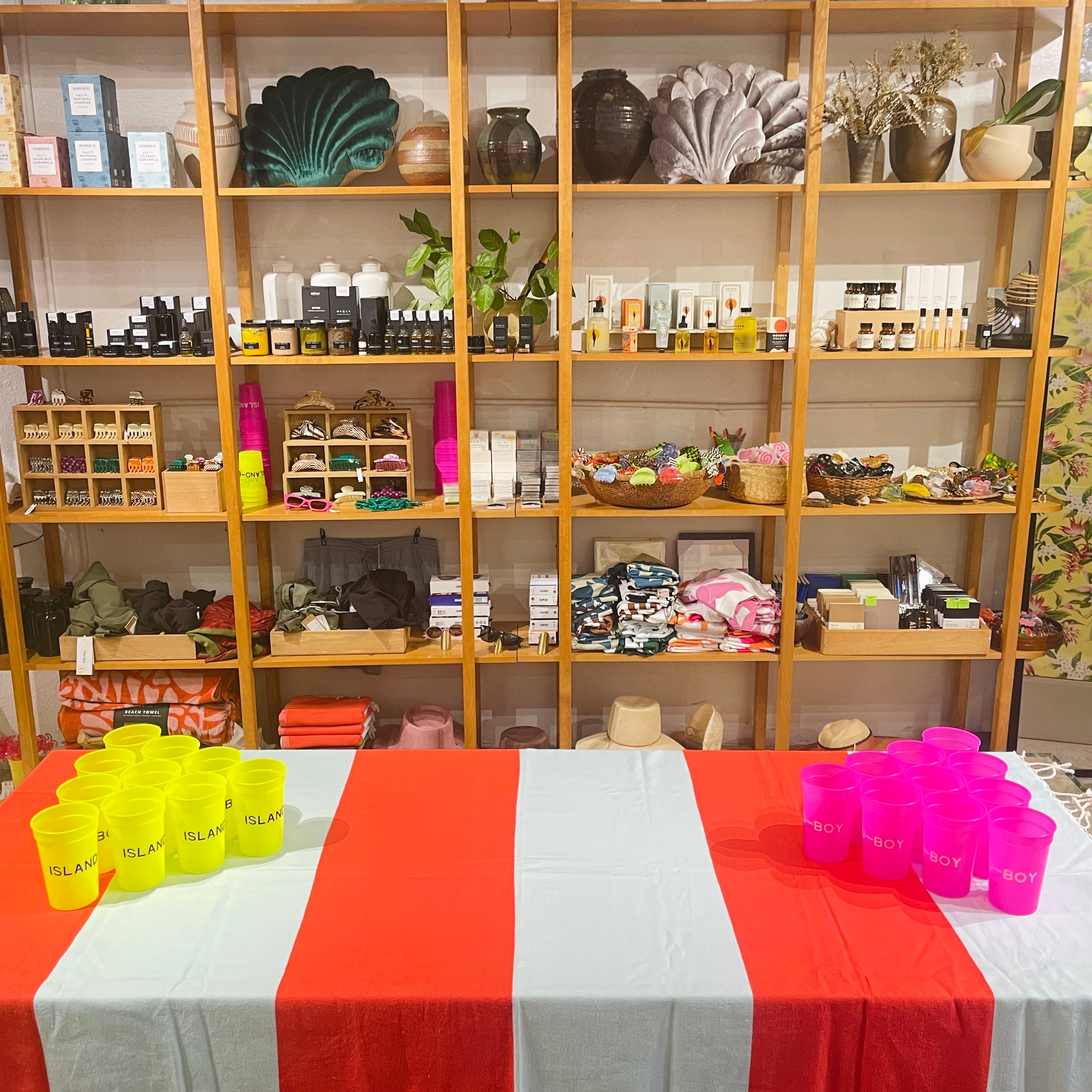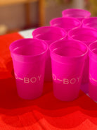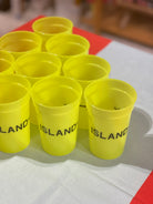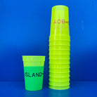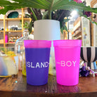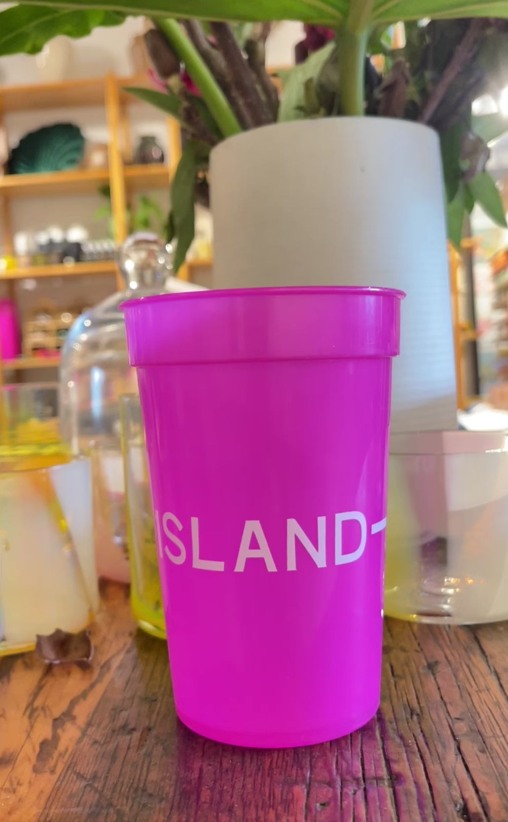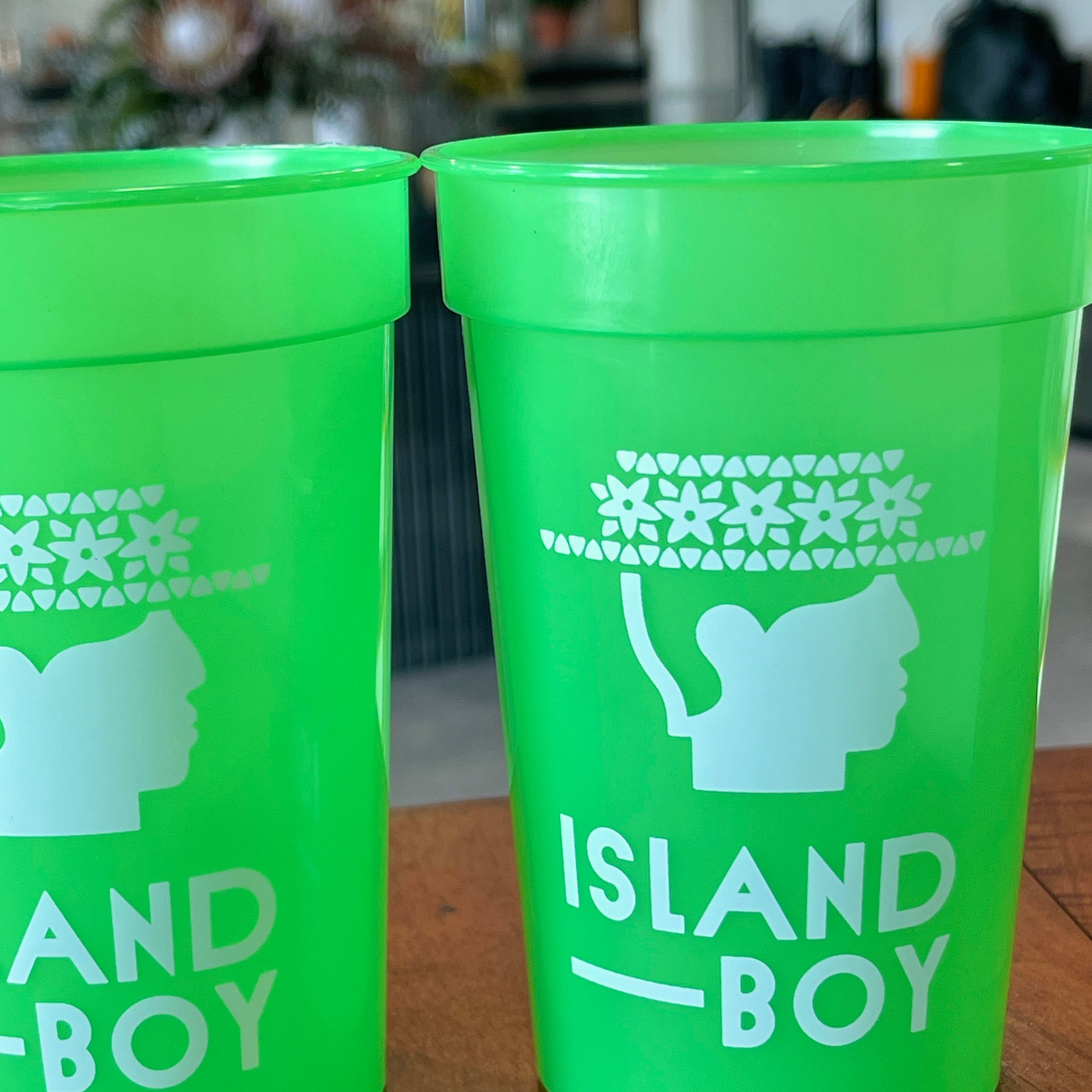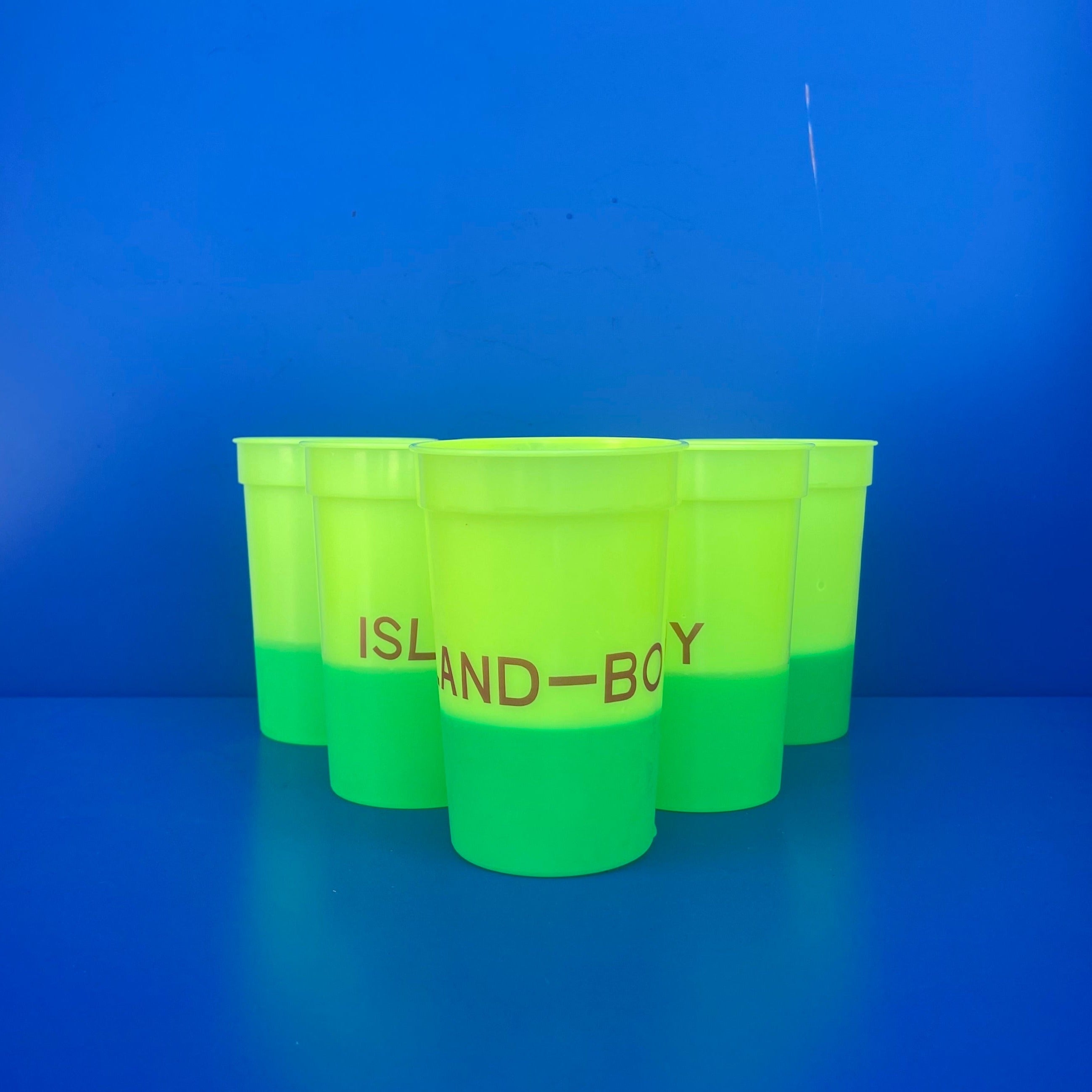 Plastic color changing cup with ISLAND-BOY logo. Changes color in cold temperature.