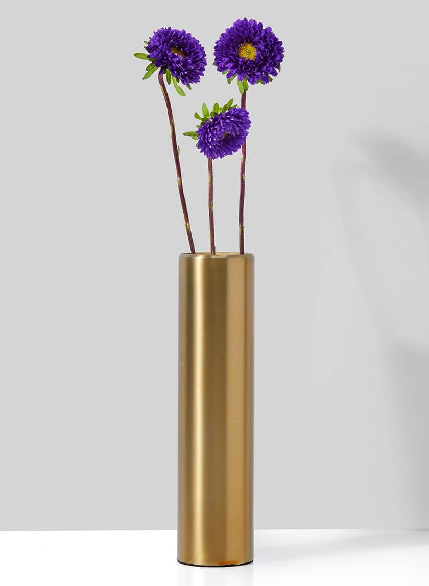 Gold Flower Vases in Bulk Add a touch of gilded glamor when you decorate with these gold steel flower vases. You can enhance the look of your cocktail and appetizer tables by placing these vases on a crisp white table cover along with other decorations. This modern 6 1/2-inch cylinder vase looks great when paired with crystals and clear glass. Add crystal tea lights for a hint of luxury and place the tables near crystal chandeliers, ice sculptures or mirrors for an eye-catching display. Gold Centerpieces for a Wedding Gold will match well with the venue you choose and your themed color scheme. Pair these sparkling gold vases with other metal accents like nickel and copper votives for color variation. The soft candlelight flickering against the shiny vases will look magical when the event lights dim for a couple's first dance. You can add our taller 8 1/2-inch vases to decorate a sophisticated winter event. The varying heights of the vases will create a gorgeous display.