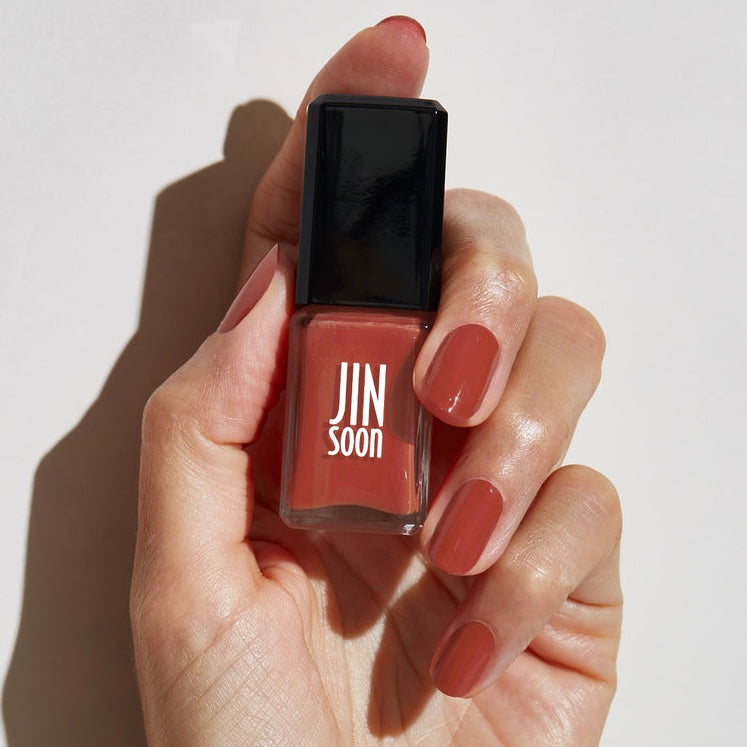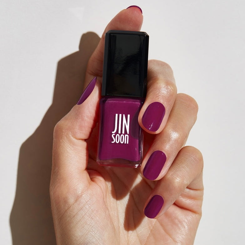 JINsoon is 21-free and formulated without harsh chemicals such as Formaldehyde, Toluene, animal derivative, Benzene, DBP, Phthalates, Cyclic Silicones, Formaldehyde Resin, Camphor, Xylene, Ethyl Tosylamide, Triphenyl Phosphate, Parabens, Hydroquinone, Bismuth Oxychloride, Synthetic fragrances, Tert-Butyl Hydroperoxide, 4-Methoxyphenol, Methyl ethyl ketone, Chromium Oxide Greens and Lead.