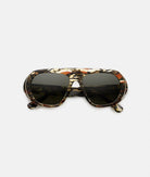 Italian tiger pattern eco-acetate frame. Dark grey bio nylon lens offers 100% UVA+UVB protection. Our case is crafted from the world's first highly sustainable and environmentally friendly cactus leather. 100% recycled cleaning cloth.
