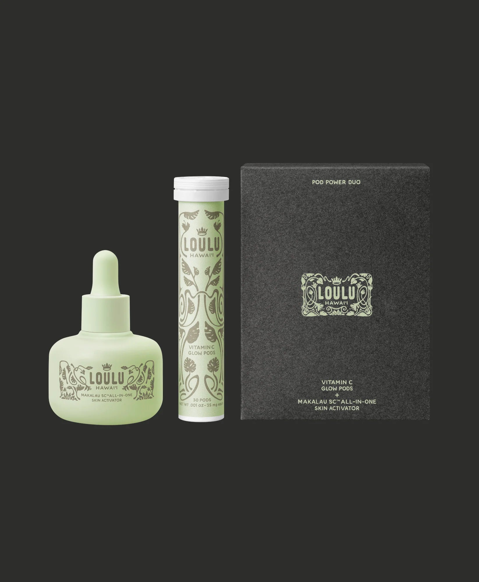 Vitamin C like you've never seen before. Pure. Potent. Mixed on the spot. Unlock next-level radiance with the Pod Power Duo featuring the Vitamin C Glow Pods, a first-of-its-kind electrospun Vitamin C, optimized by the multi-functional Makalau SC™ All-in-One Activator. Designed with maximum potency in mind, these powerful formulas combine to combat the damaging effects of oxidative stress and to deliver brighter, healthier, more luminous skin.