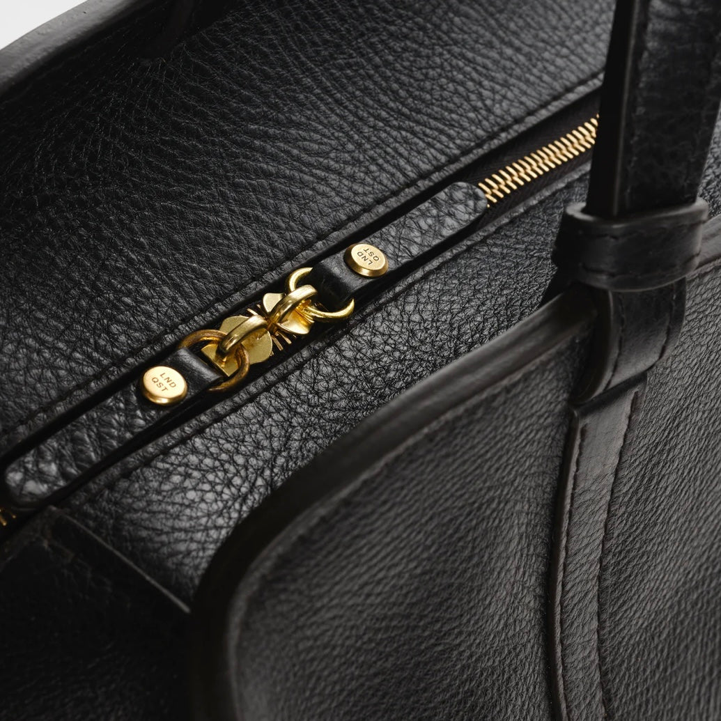 A detachable shoulder strap allows for versatile styles of wear; Rhodes can be carried by hand, worn over the shoulder or across the body.