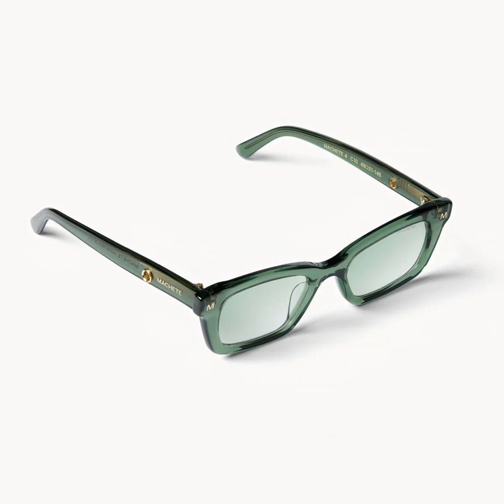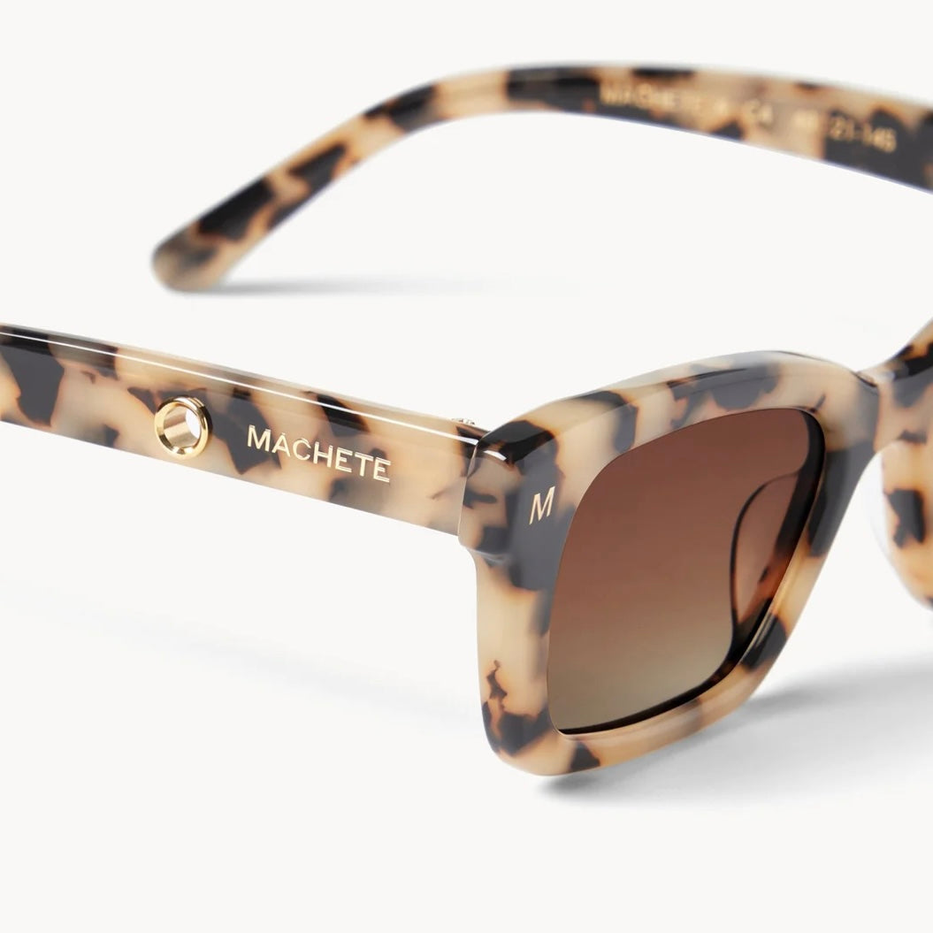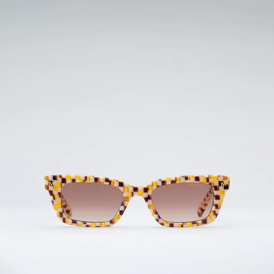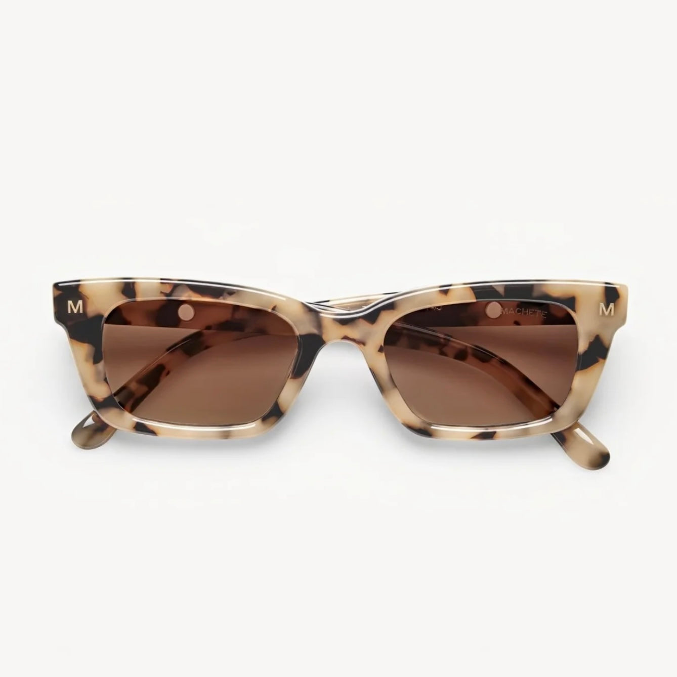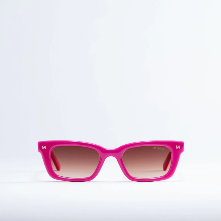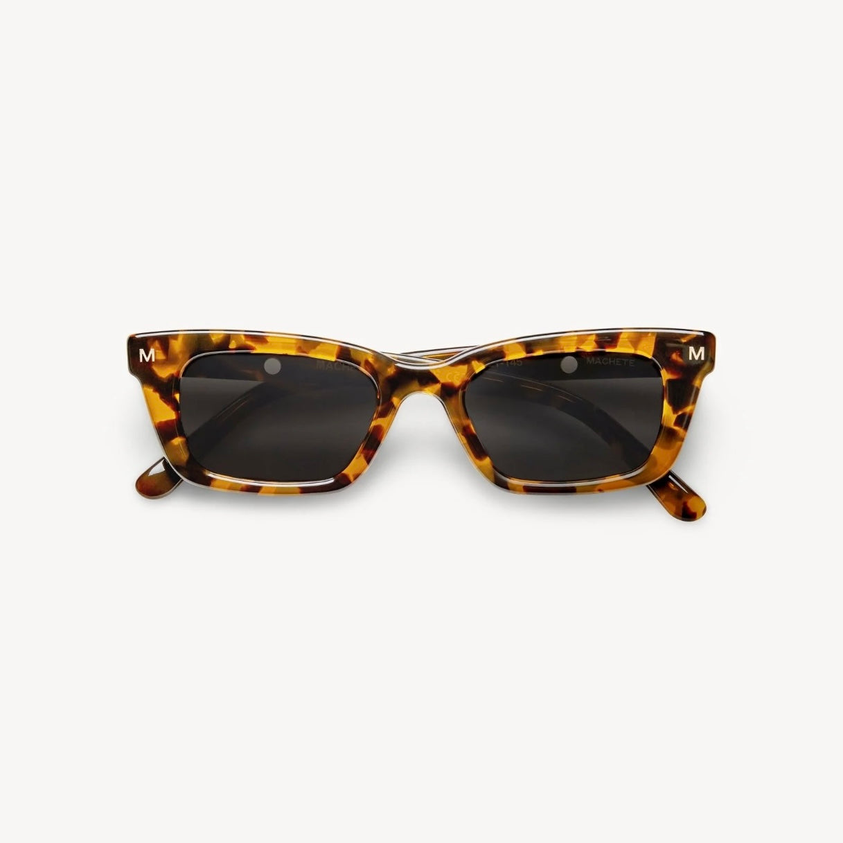 This ‘90s inspired rectangular frame in Machete’s signature show-stopping acetate brings the chic style of this iconic decade to the modern era. Handcrafted from the most environmentally friendly and highest-quality acetate on the market today to ensure your frames will not only last but be kind to the planet as well. A gold Machete logo, hardware as well as a ring for your eyeglass chain at the temples.