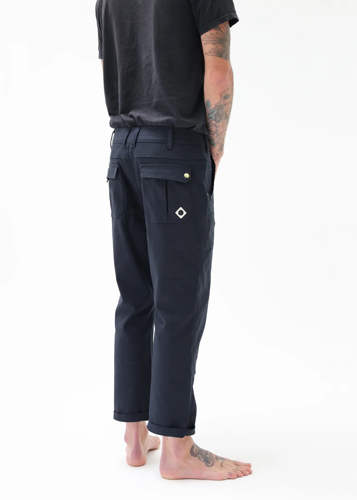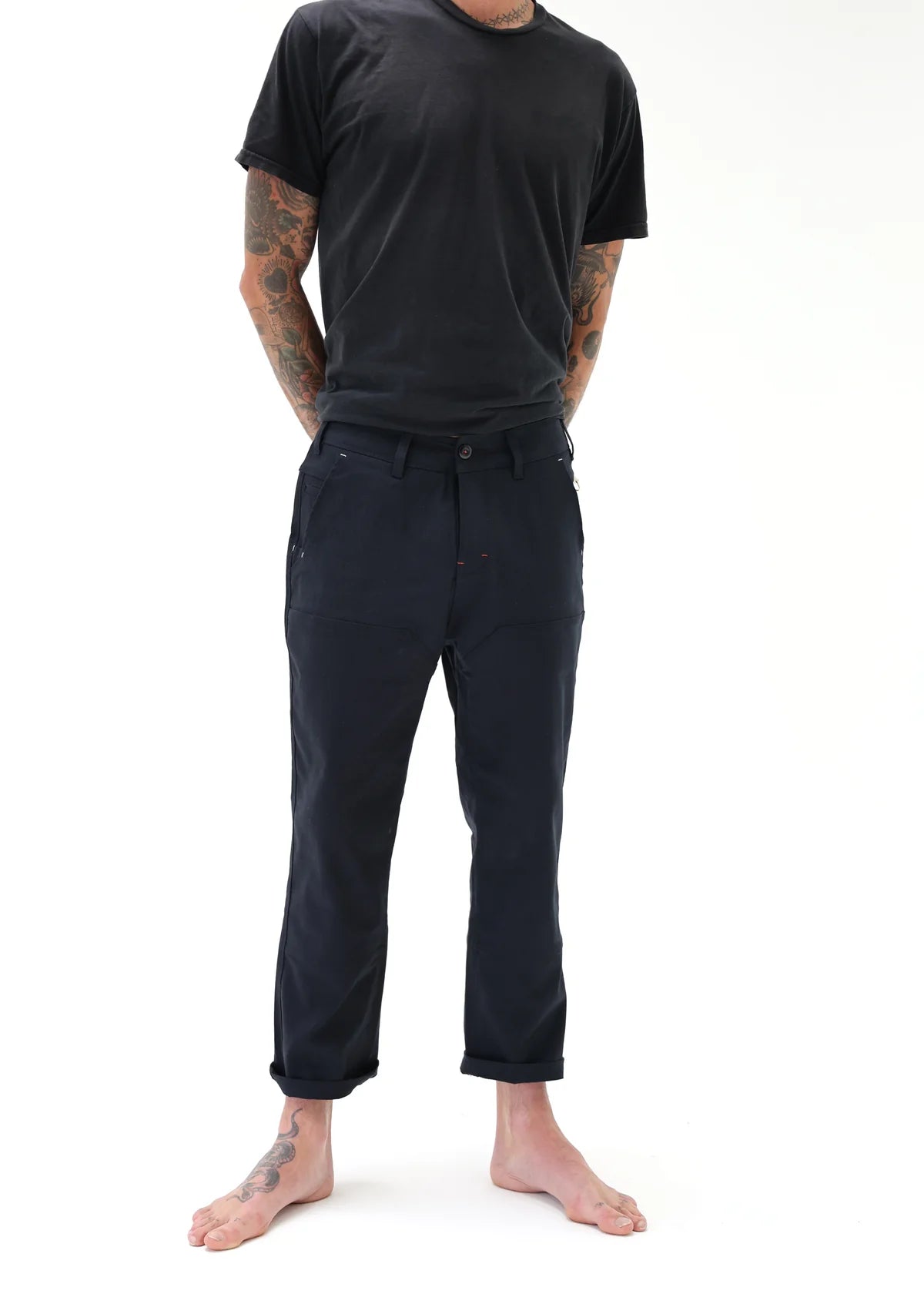 Inspired from a workwear silhouette but with modern updates for form and function. Made with the same proprietary stretch canvas fabric as the Utility Short01, these pants are designed for movement and durability. Relaxed fit with a slightly cropped and tapered leg. Made to be worn hard.